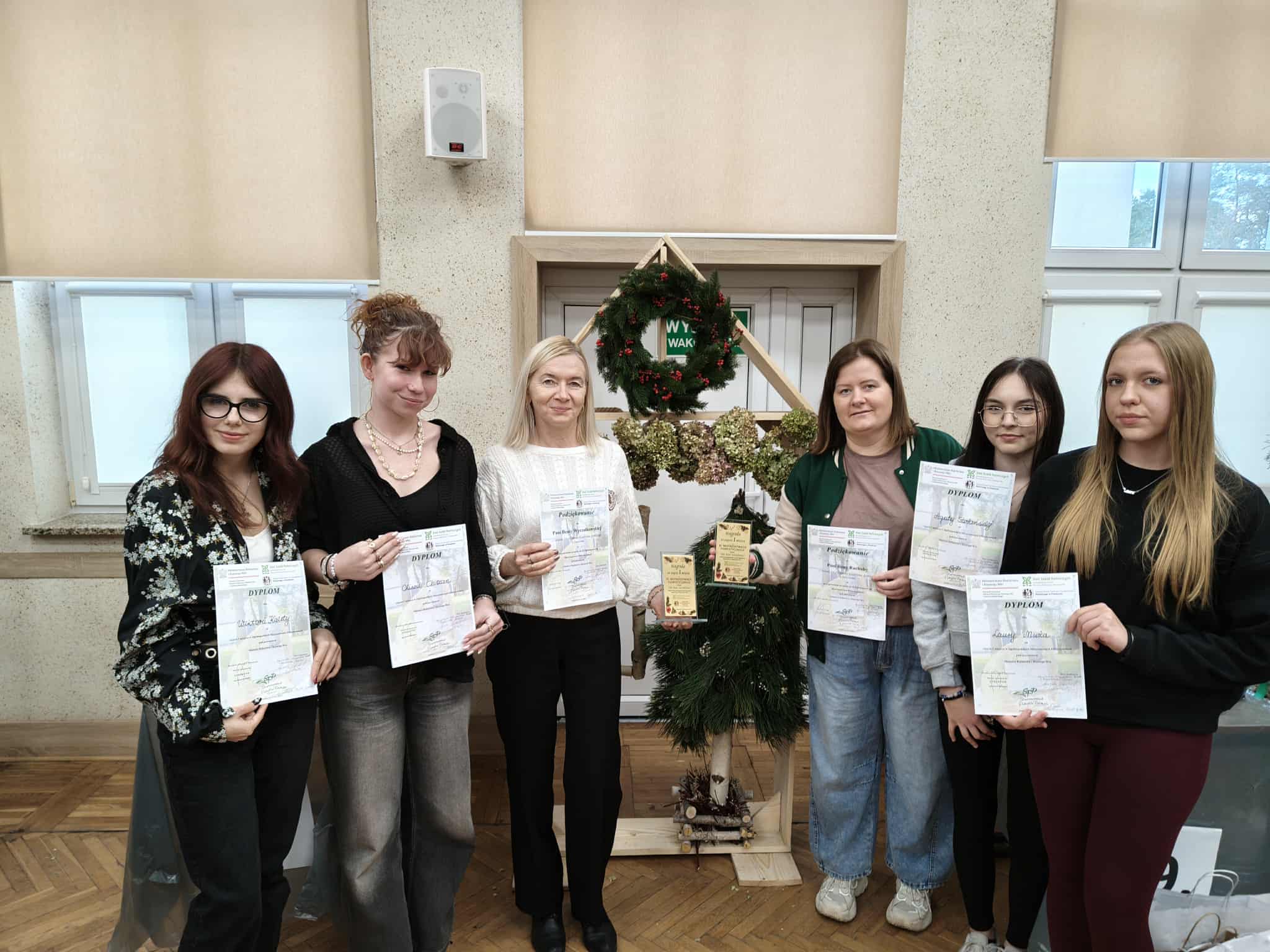 21.11.2025 r uczennice klasy 3 Technikum w zawodzie technik architektury krajobrazu Zespołu Szkół Centrum Kształcenia Rolniczego w Lututowie, Oliwia Chrzan oraz Wiktoria Kaleta pracując zespołowo z ZSCKR w Dobrocinie wykonały najładniejszą kompozycje świąteczną w Konkursie Florystycznym ,,Eko Boże Narodzenie”.