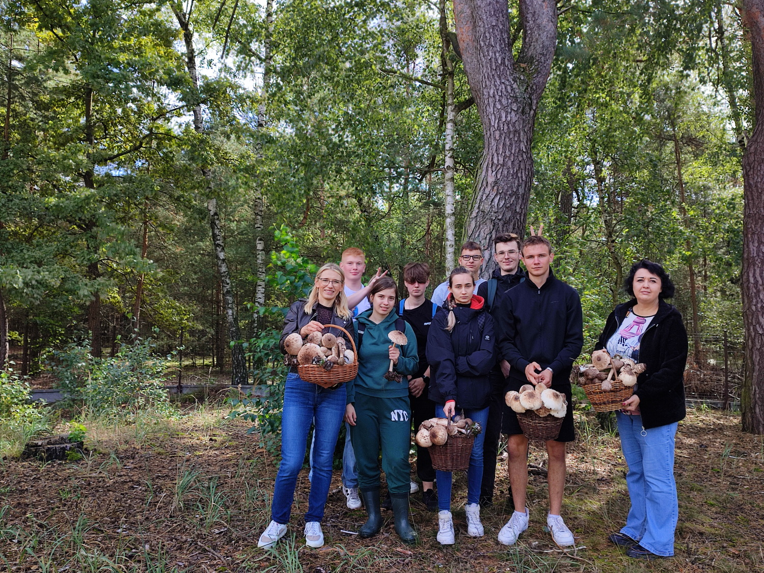 Celem wyprawy do lasu było również rozwijanie umiejętności rozpoznawania grzybów jadalnych od ich trujących „sobowtórów”. Udało się nam zebrać czubajkę kanię – jednego z najsmaczniejszych grzybów rosnących w polskich lasach, którego łatwo jest pomylić z najbardziej trującym grzybem świata – muchomorem sromotnikowym. Czubajka kania ma m.in. charakterystyczny ruchomy pierścień na trzonie.