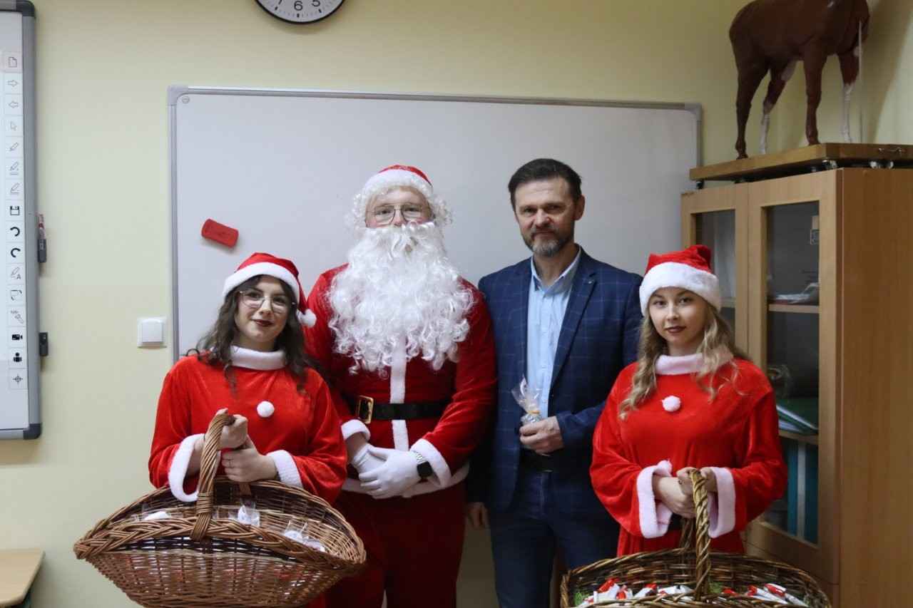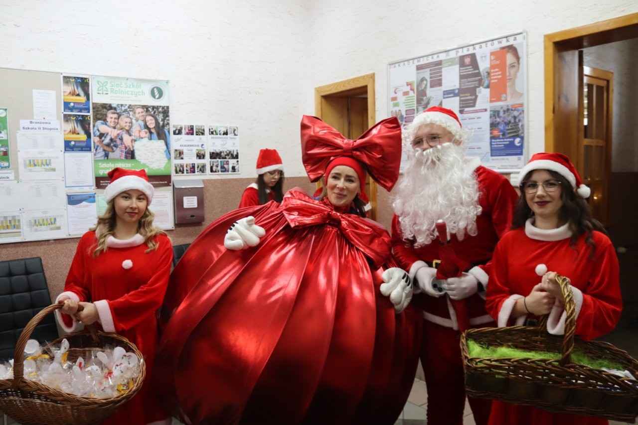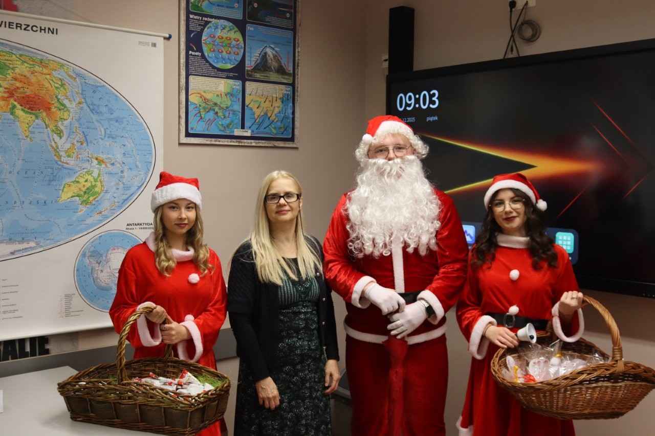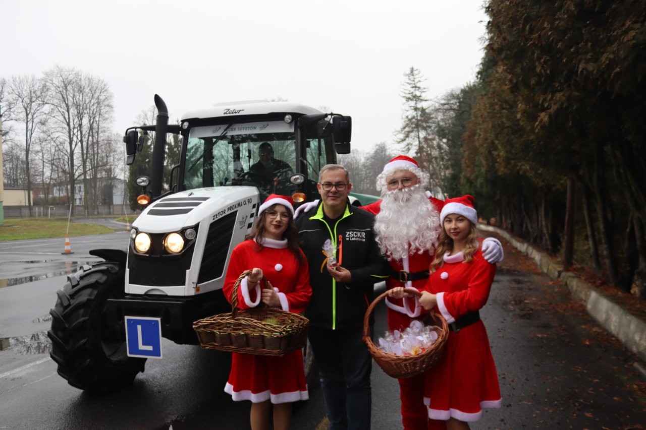 W miniony piątek 5 grudnia 2025r. w Zespole Szkół Centrum Kształcenia Rolniczego w Lututowie zapanowała prawdziwie świąteczna atmosfera. Święty Mikołaj, w towarzystwie dwóch uroczych śnieżynek, odwiedził szkolne korytarze, wywołując uśmiechy zarówno wśród uczniów, jak i nauczycieli oraz pracowników administracji i obsługi. Młodzież otrzymała słodkie upominki, natomiast grono pedagogiczne i pracownicy – symboliczne, pięknie zdobione śnieżne kule. W całej szkole roiło się od czerwonych mikołajkowych czapeczek, które dodatkowo podkreślały wyjątkowy klimat tego grudniowego dnia.