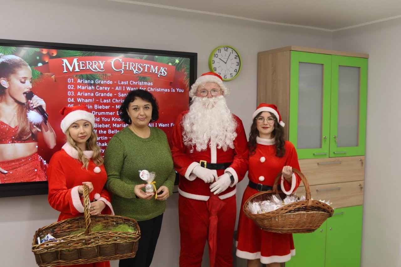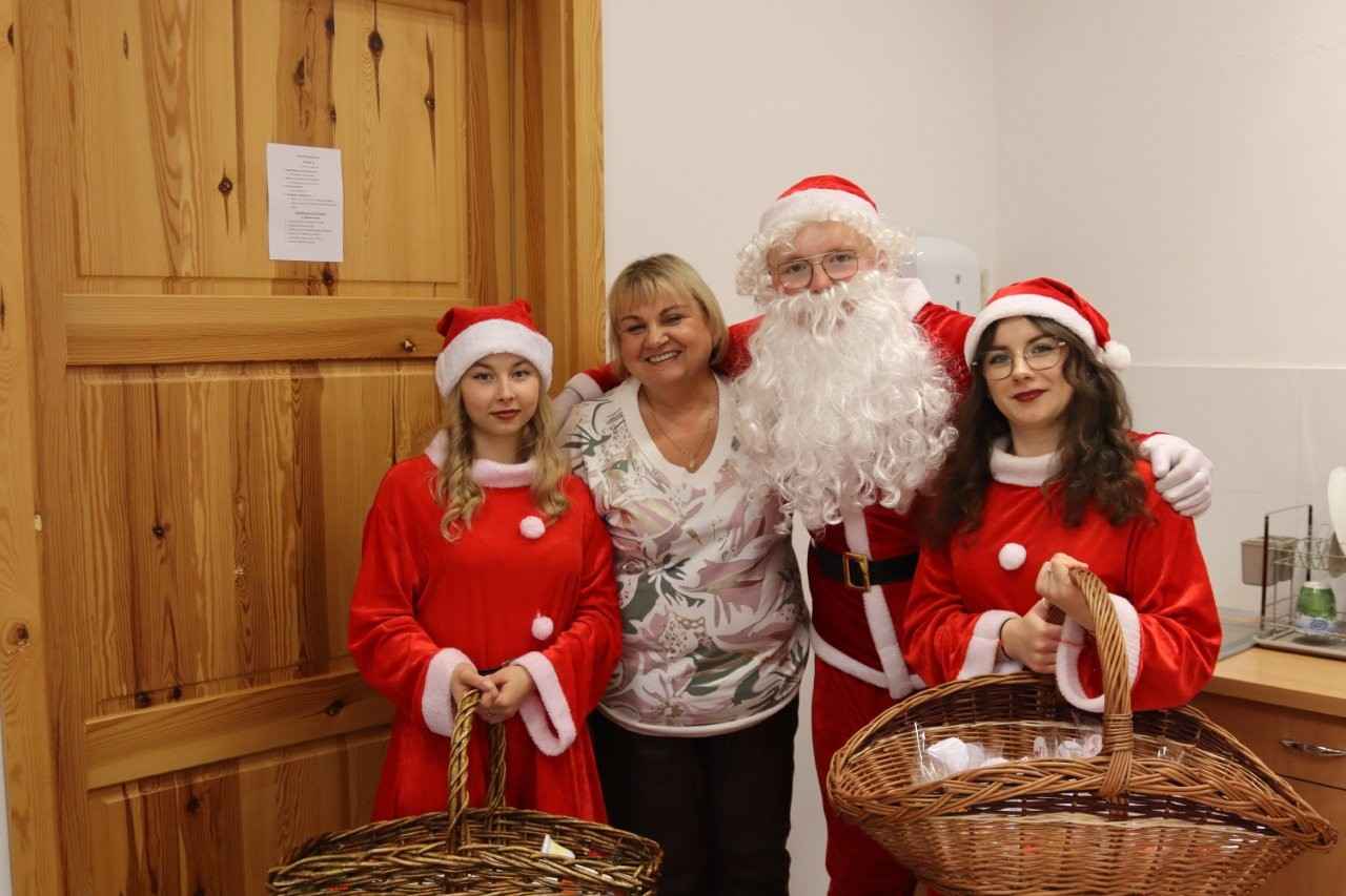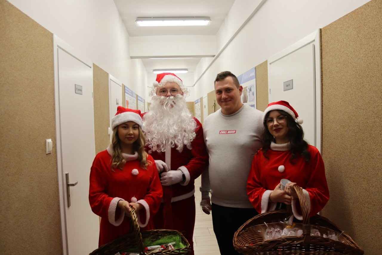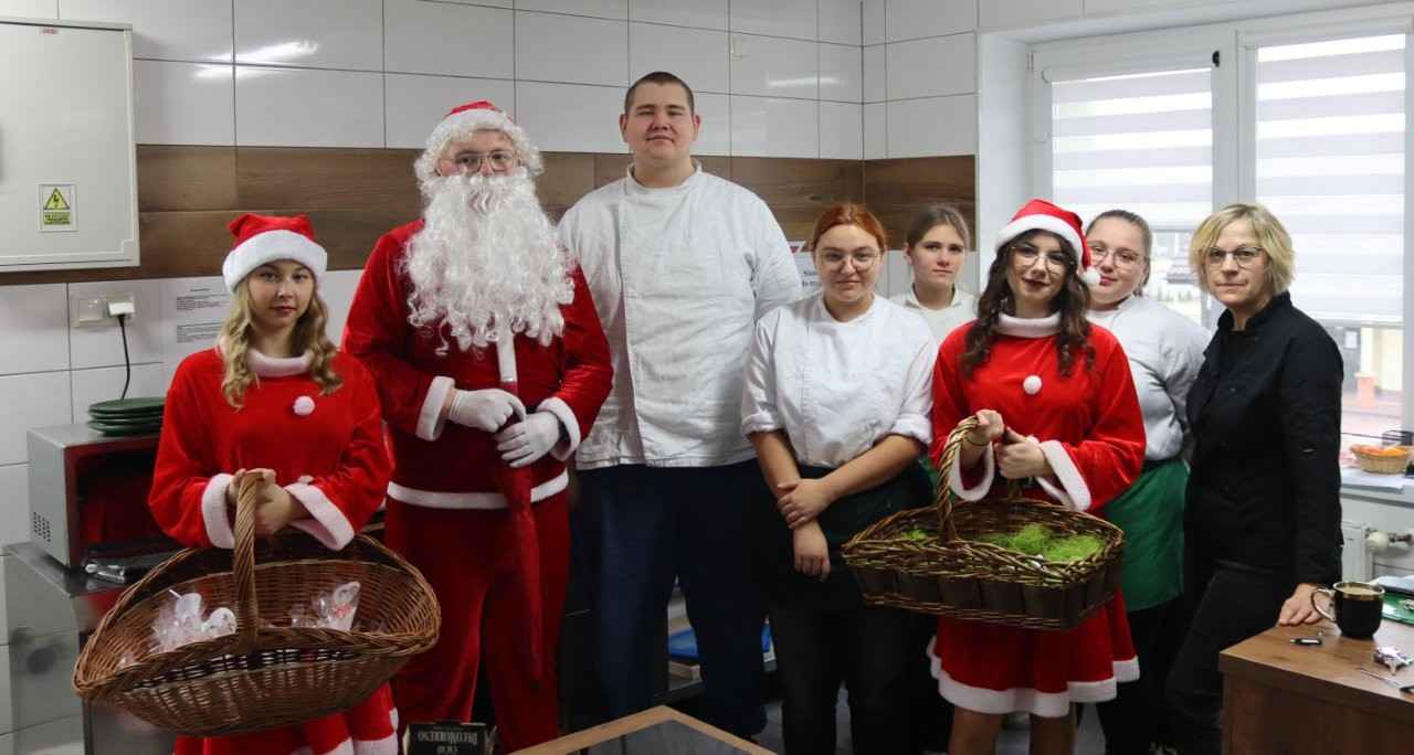 We wtorek, Mikołaj i jego urocze śnieżynki nie zapomnieli o najmłodszych. Odwiedzili bowiem przedszkolaków, którzy tego dnia uczestniczyli w niezwykle pachnących, słodkich warsztatach dekorowania pierniczków. Zajęcia odbywały się pod czujnym okiem młodzieży z technikum w zawodzie technik żywienia i usług gastronomicznych oraz nauczycielek przedmiotów gastronomicznych: Ewy Miś i Weroniki Franiak, które dbały o to, by każdy pierniczek wyszedł jak z najpiękniejszej świątecznej książki. Dzieci przyjęły Mikołaja z szeroko otwartymi oczami — niektóre z radością, inne z lekką nieśmiałością. Ale, gdy tylko w pobliżu pojawił się Grinch, wcale niestraszący, a raczej wyjątkowo zabawny, maluchy natychmiast rozpromieniały się i śmiały na całego.