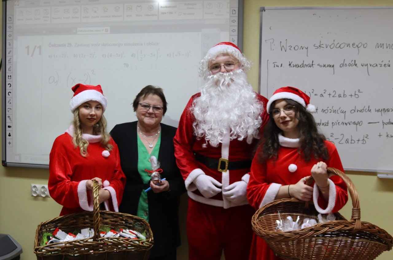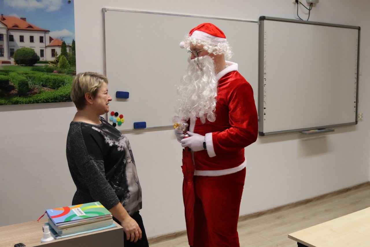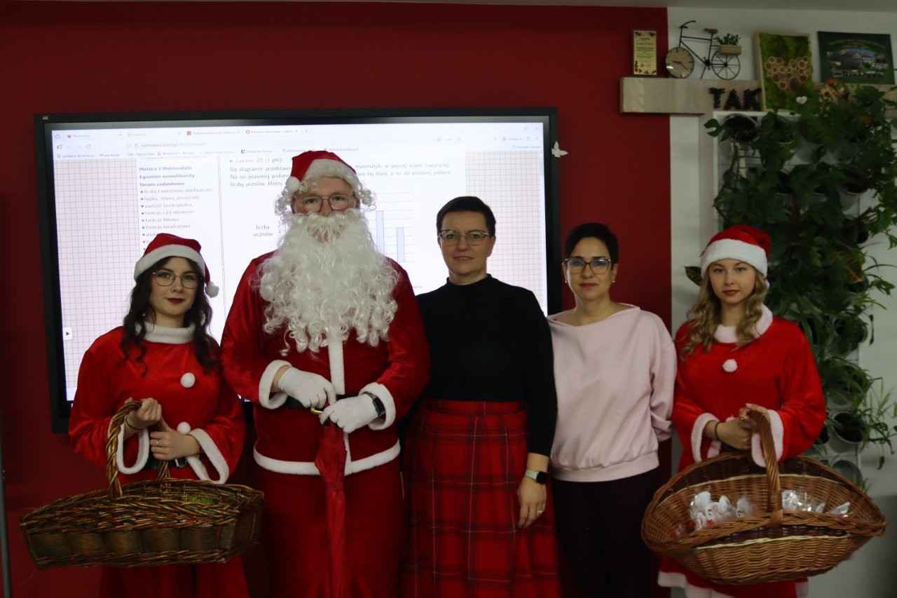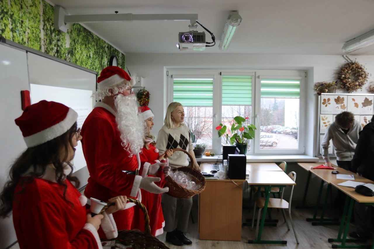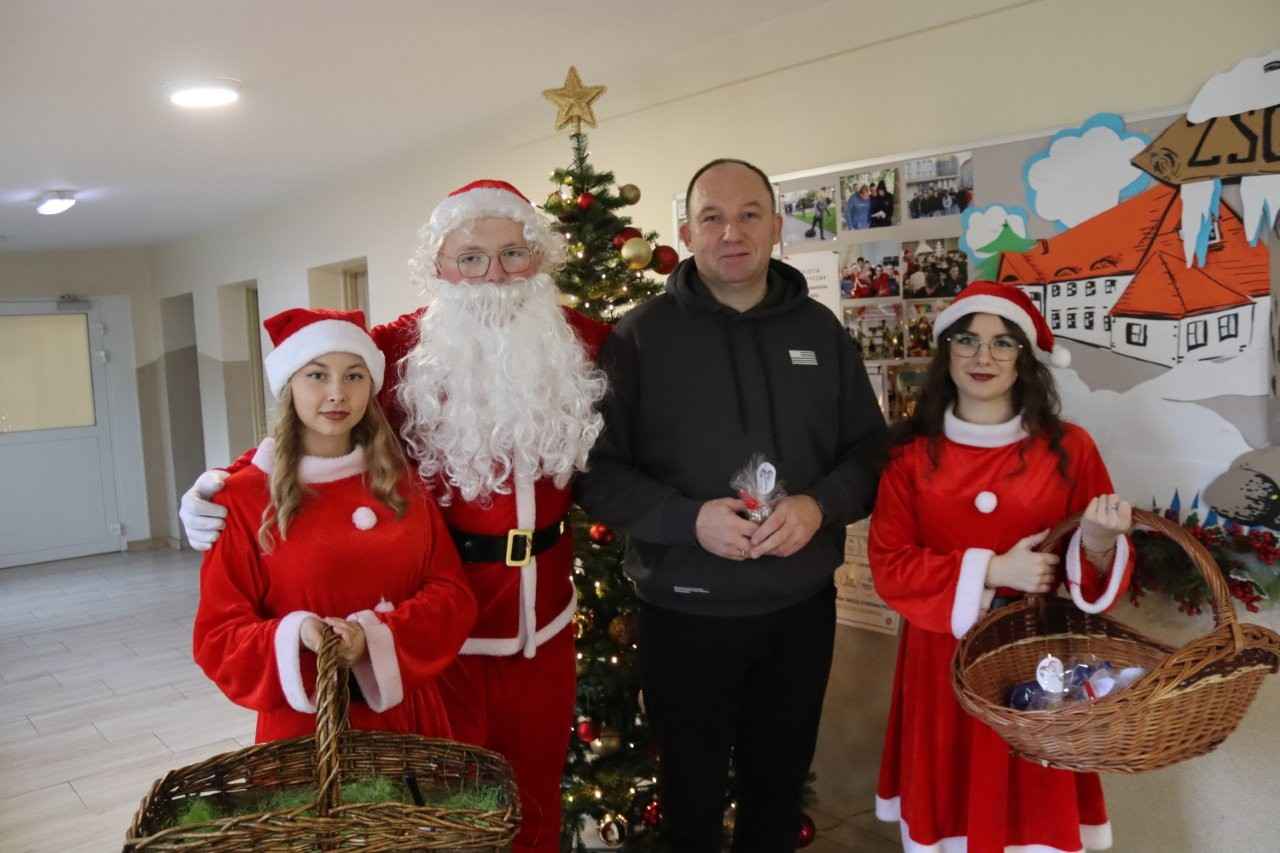 Choć dzień powoli dobiegał końca, świąteczne niespodzianki jeszcze się nie skończyły. Na terenie szkoły pojawił się bowiem… Mikołaj z RBS w Lututowie, który również postanowił obdarować społeczność szkolną ciepłymi życzeniami i dobrym humorem.