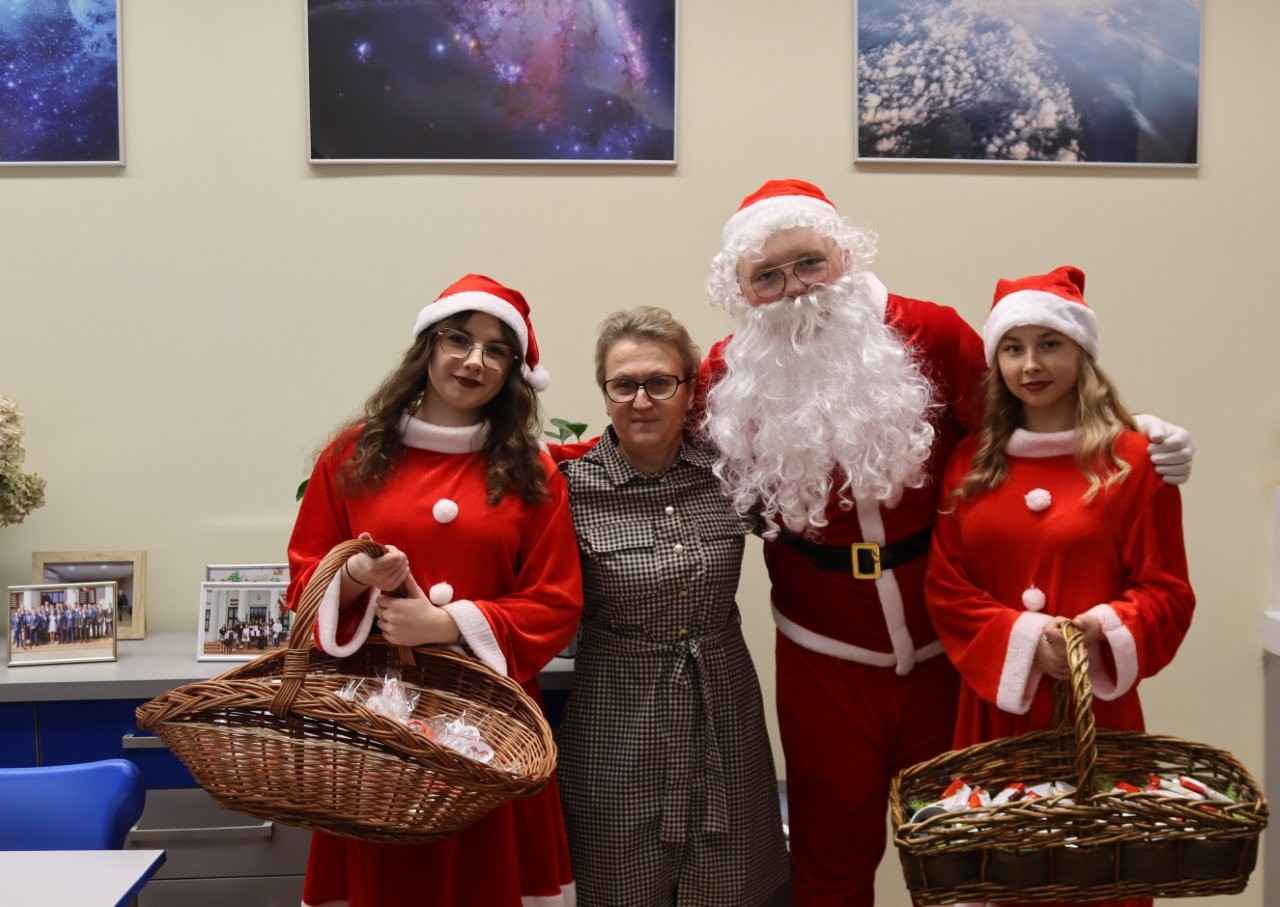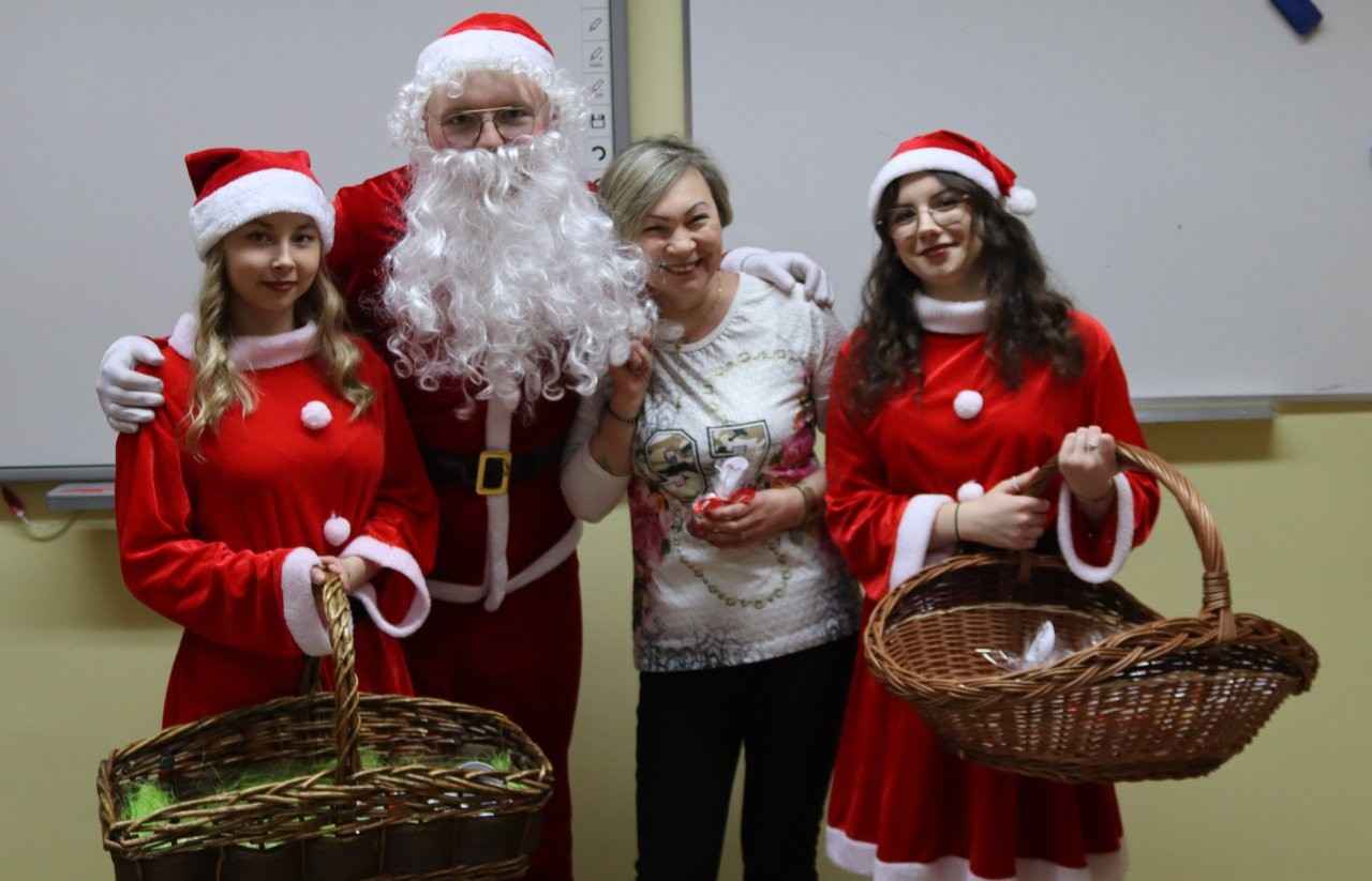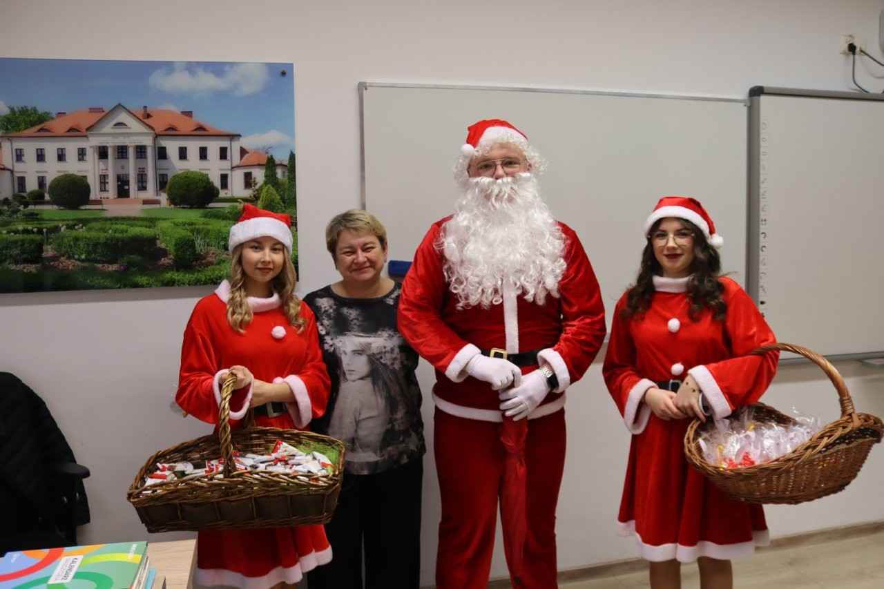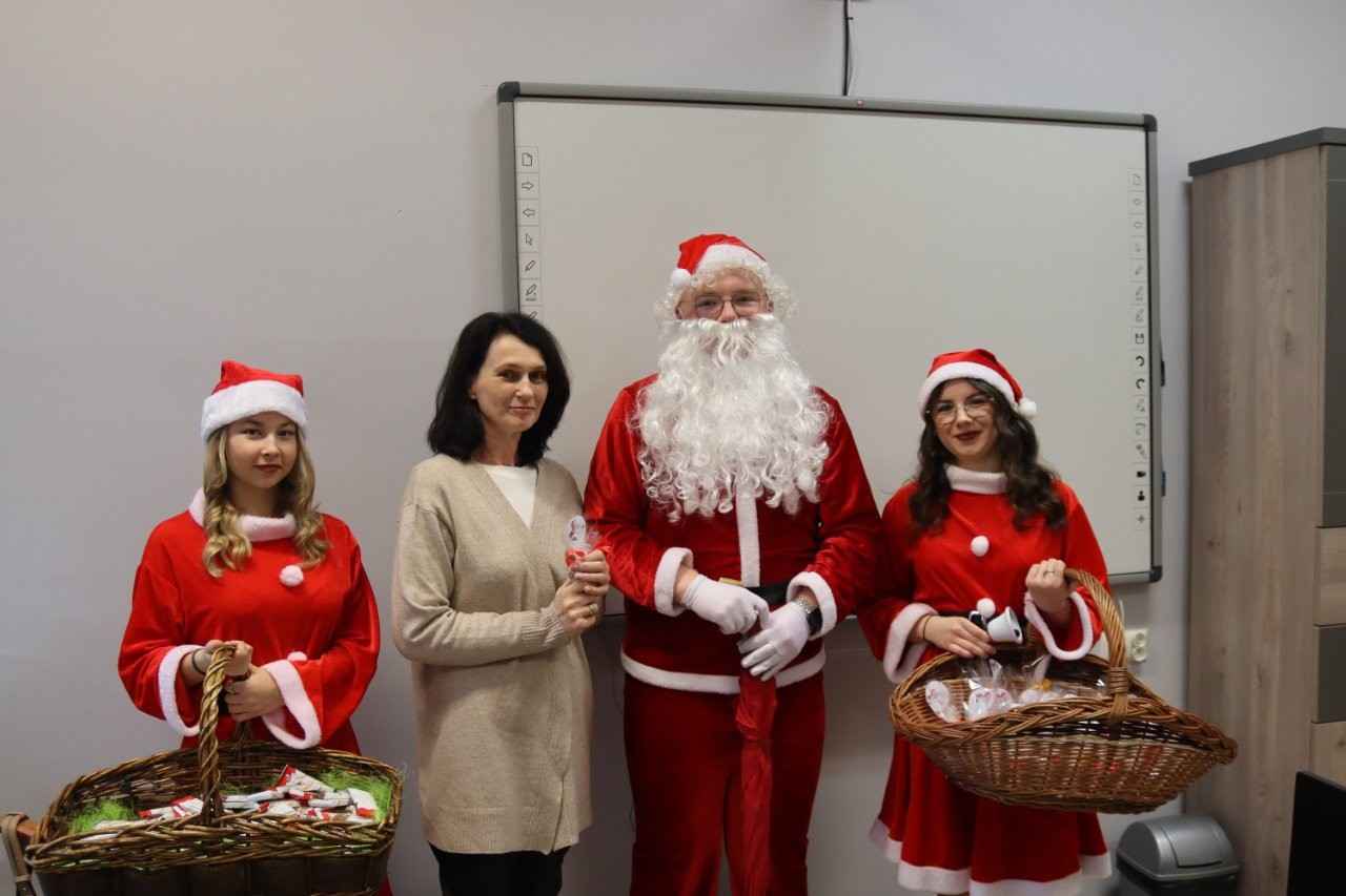 Choć dzień powoli dobiegał końca, świąteczne niespodzianki jeszcze się nie skończyły. Na terenie szkoły pojawił się bowiem… Mikołaj z RBS w Lututowie, który również postanowił obdarować społeczność szkolną ciepłymi życzeniami i dobrym humorem.