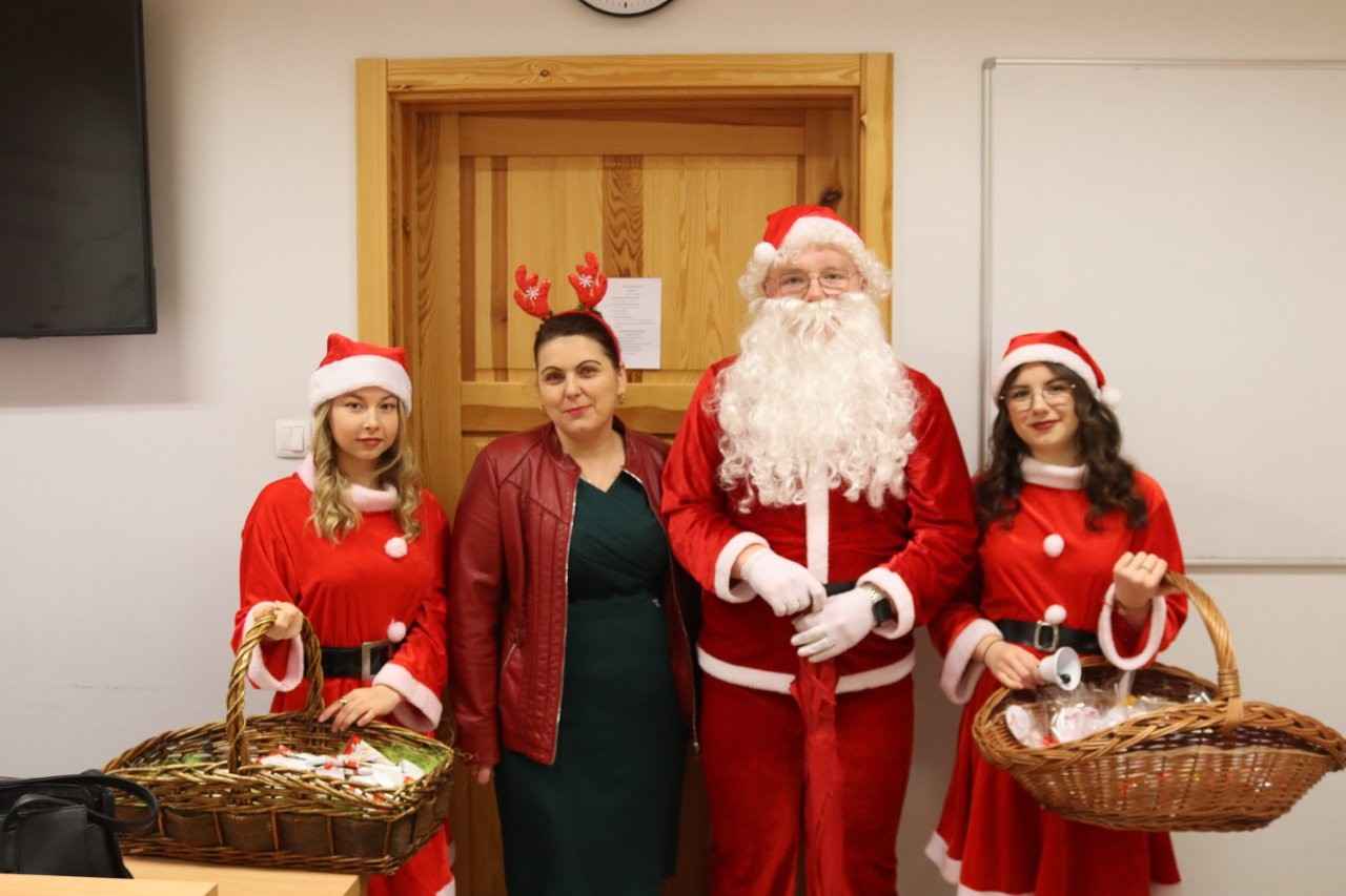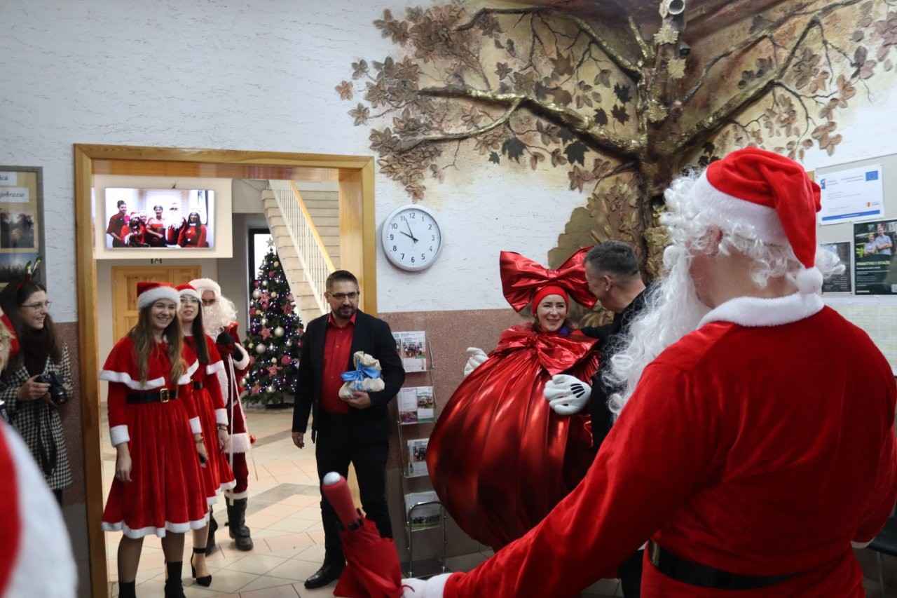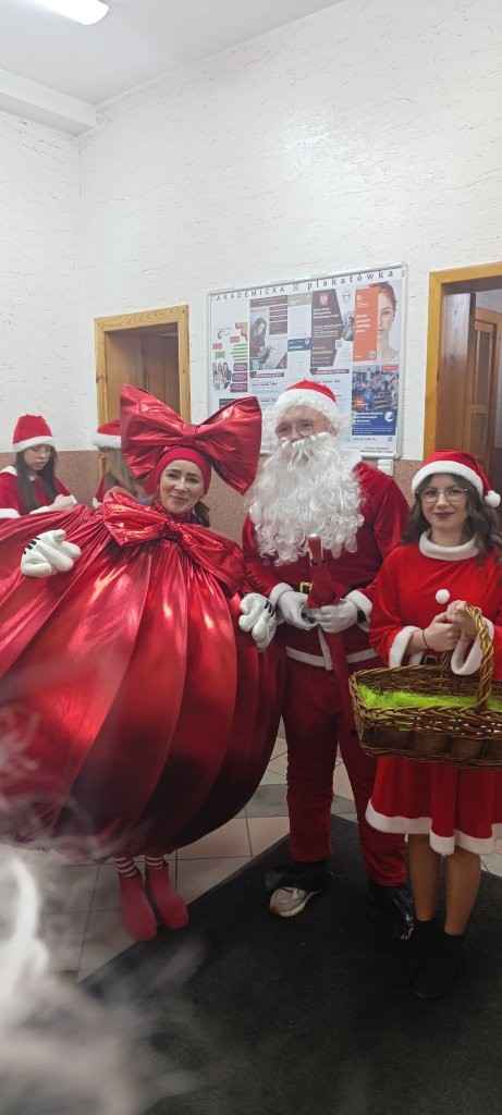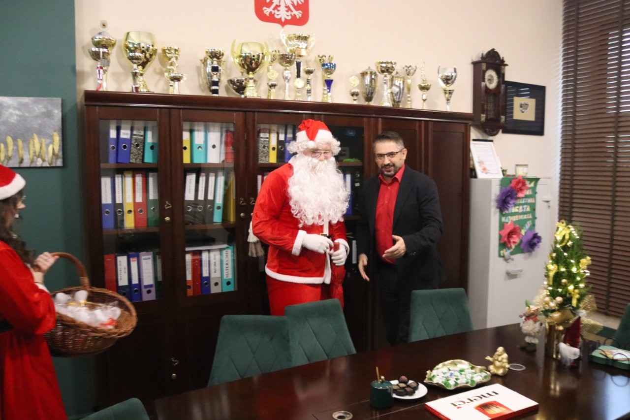Świąteczne atrakcje nie zakończyły się jednak wraz z weekendem. W poniedziałek szkolny Mikołaj ruszył z wizytą do Urzędu Miasta w Lututowie. Pracownicy nie ukrywali radości — w natłoku obowiązków pojawienie się gościa w czerwonym płaszczu i z workiem radości było, jak najlepszy prezent przedświąteczny. Atmosfera była tak dobra, że nawet urzędowe pieczątki zdawały się stemplować dokumenty w rytm „Jingle Bells”.