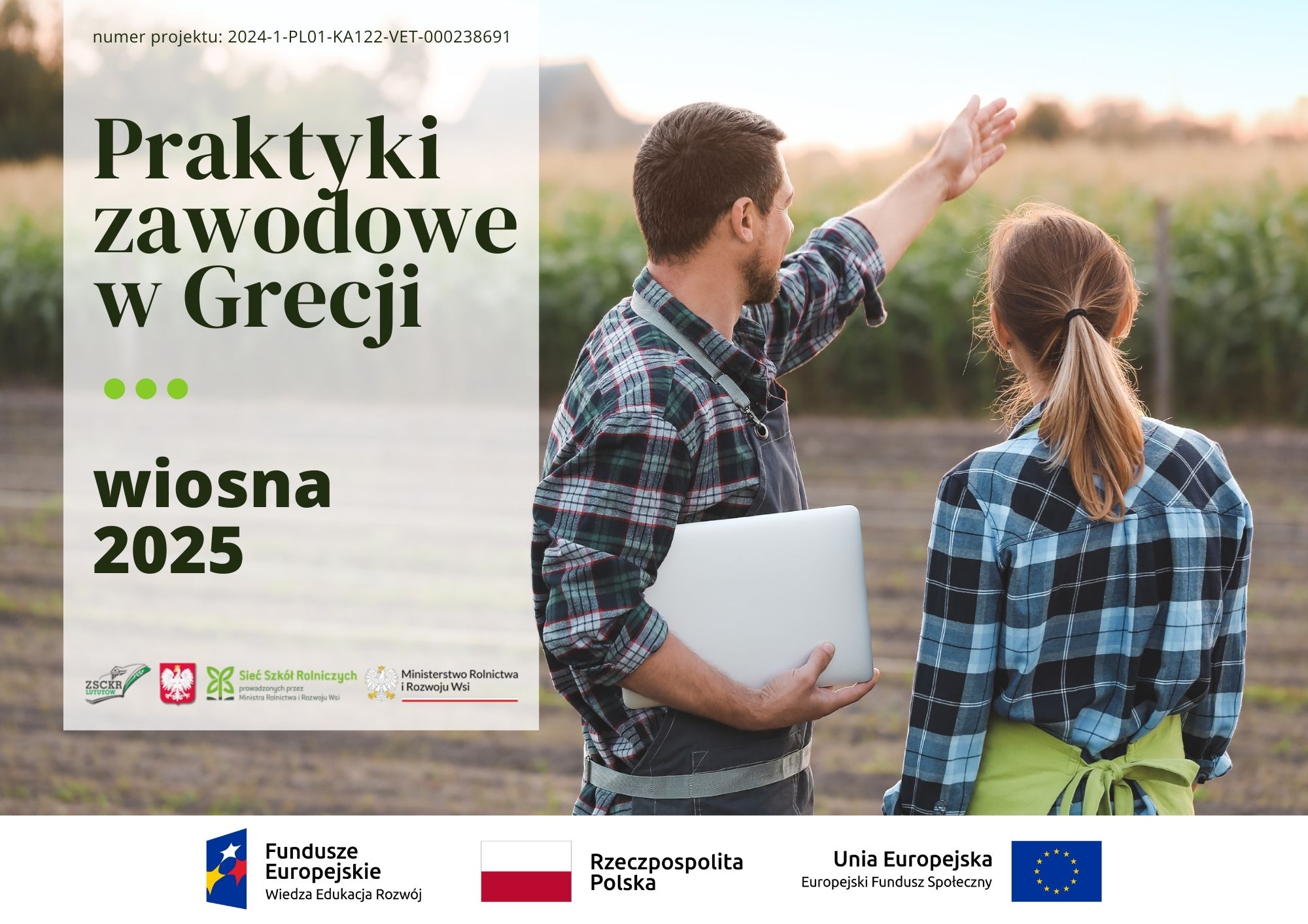 Zespół Szkół Centrum Kształcenia w Lututowie z przyjemnością informuje o uzyskaniu dofinansowania w wysokości 311 955,00 zł na realizację projektu „Profesjonalni Europejczycy”. Dzięki temu przedsięwzięciu uczniowie z kierunku rolniczego wiosną 2025 roku wyjadą na praktyki zawodowe do Grecji.