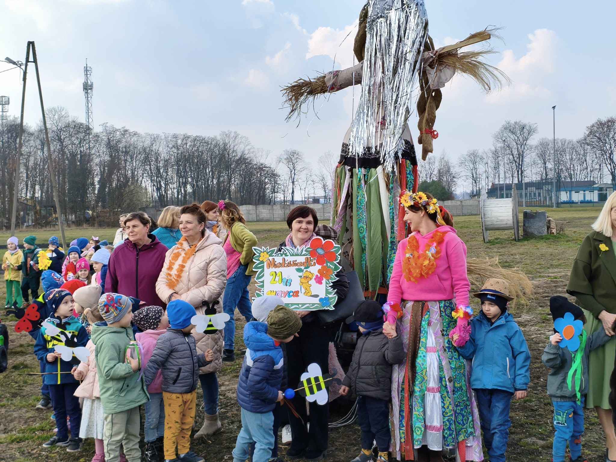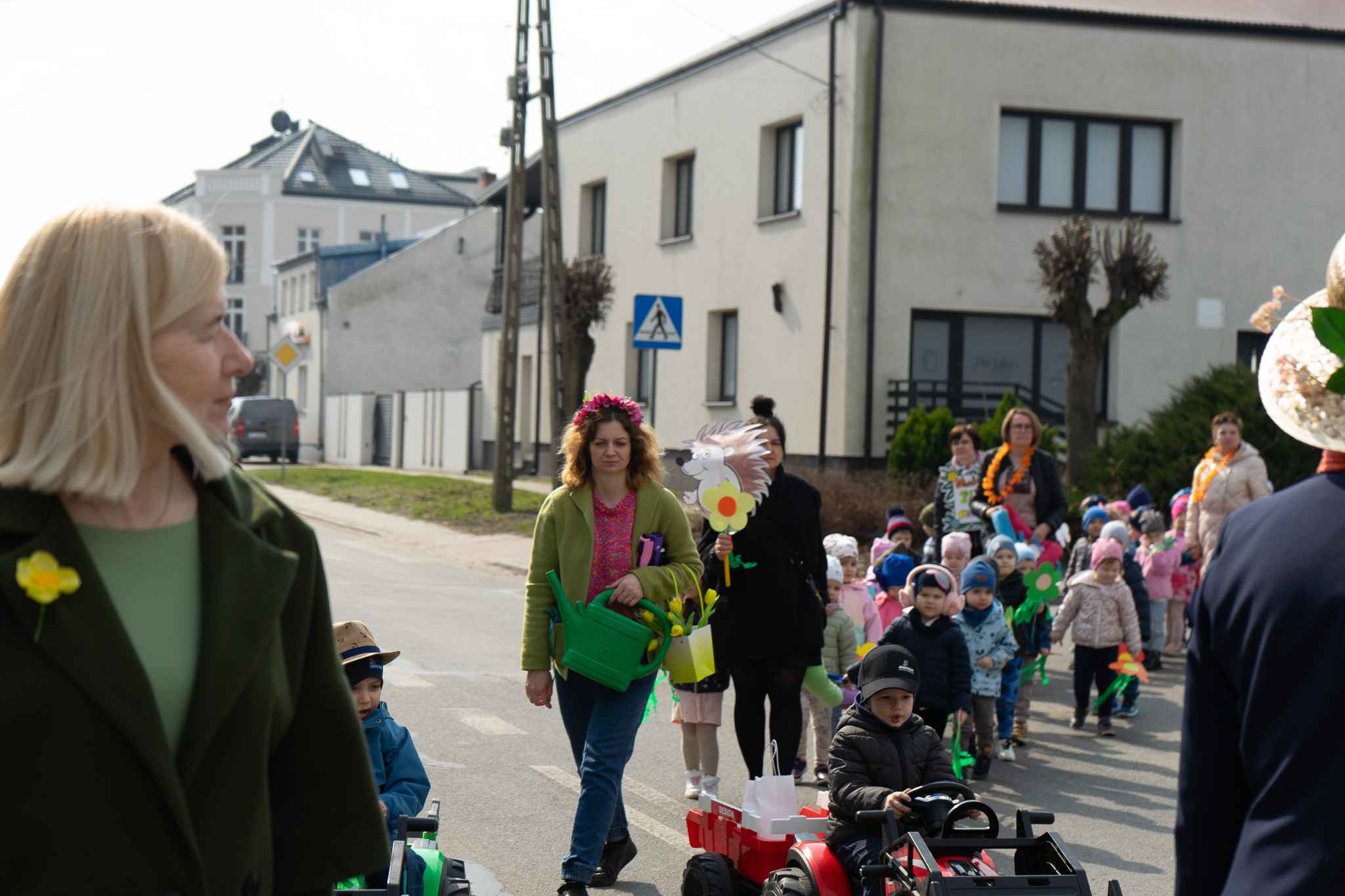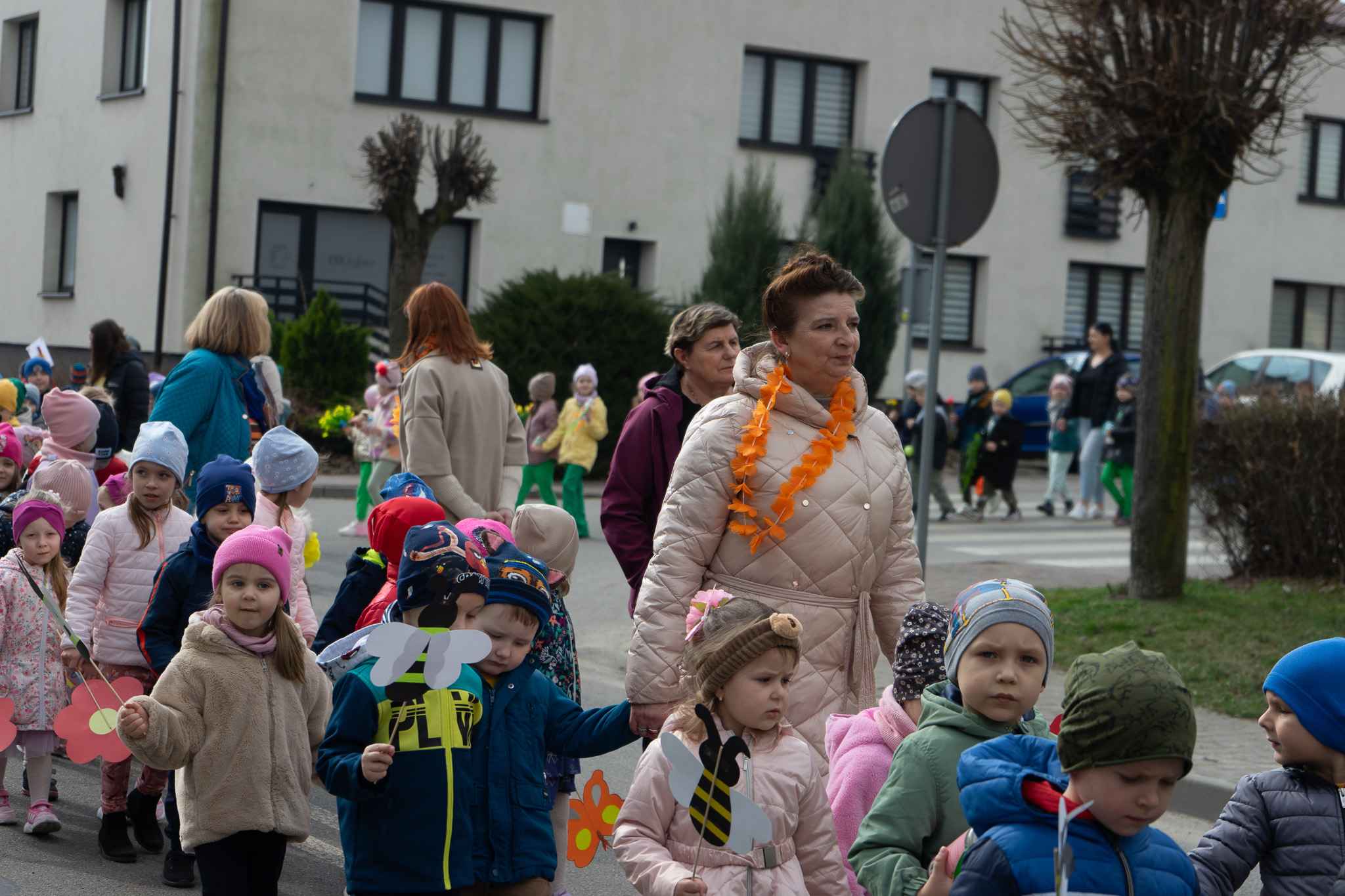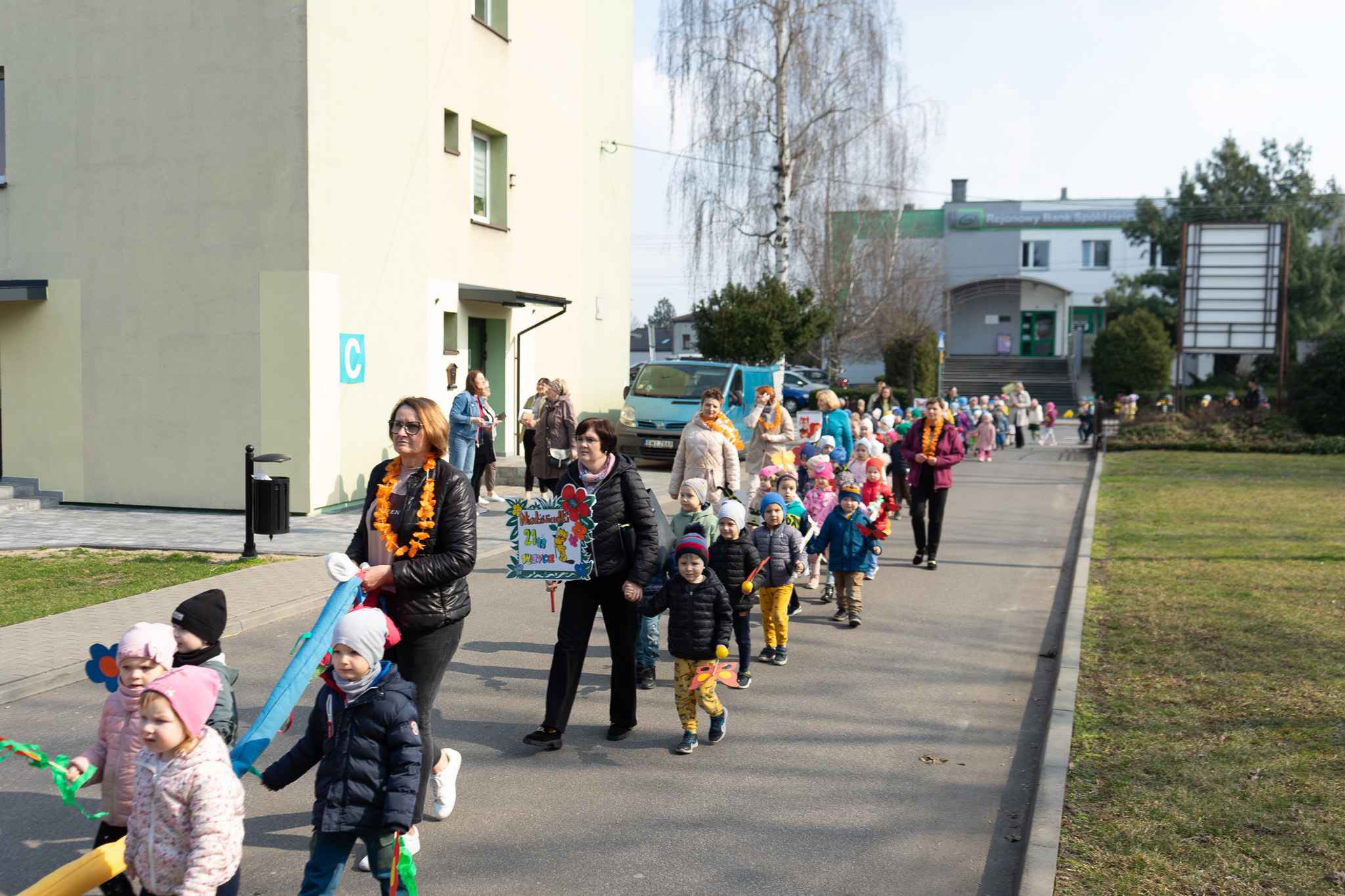 Szczególnego uroku wydarzeniu dodała obecność honorowych gości – przedszkolaków, którzy pojawili się w kolorowych, wiosennych strojach. Dzieci niosły w rękach barwne kwiaty oraz własnoręcznie wykonane grzechotki, wprowadzając radosną atmosferę. Na czele grupy pojawiła się pani dyrektor Malwina Grzybek, która przyjechała małym traktorkiem w asyście dwóch przedszkolaków – co więcej, mali uczestnicy również prowadzili swoje małe traktorki, wzbudzając podziw wśród uczestników wydarzenia. Poszczególne grupy dzieci prowadziły ich wychowawczynie. Towarzyszyła im także ich własna Marzanna, przygotowana specjalnie na tę okazję.