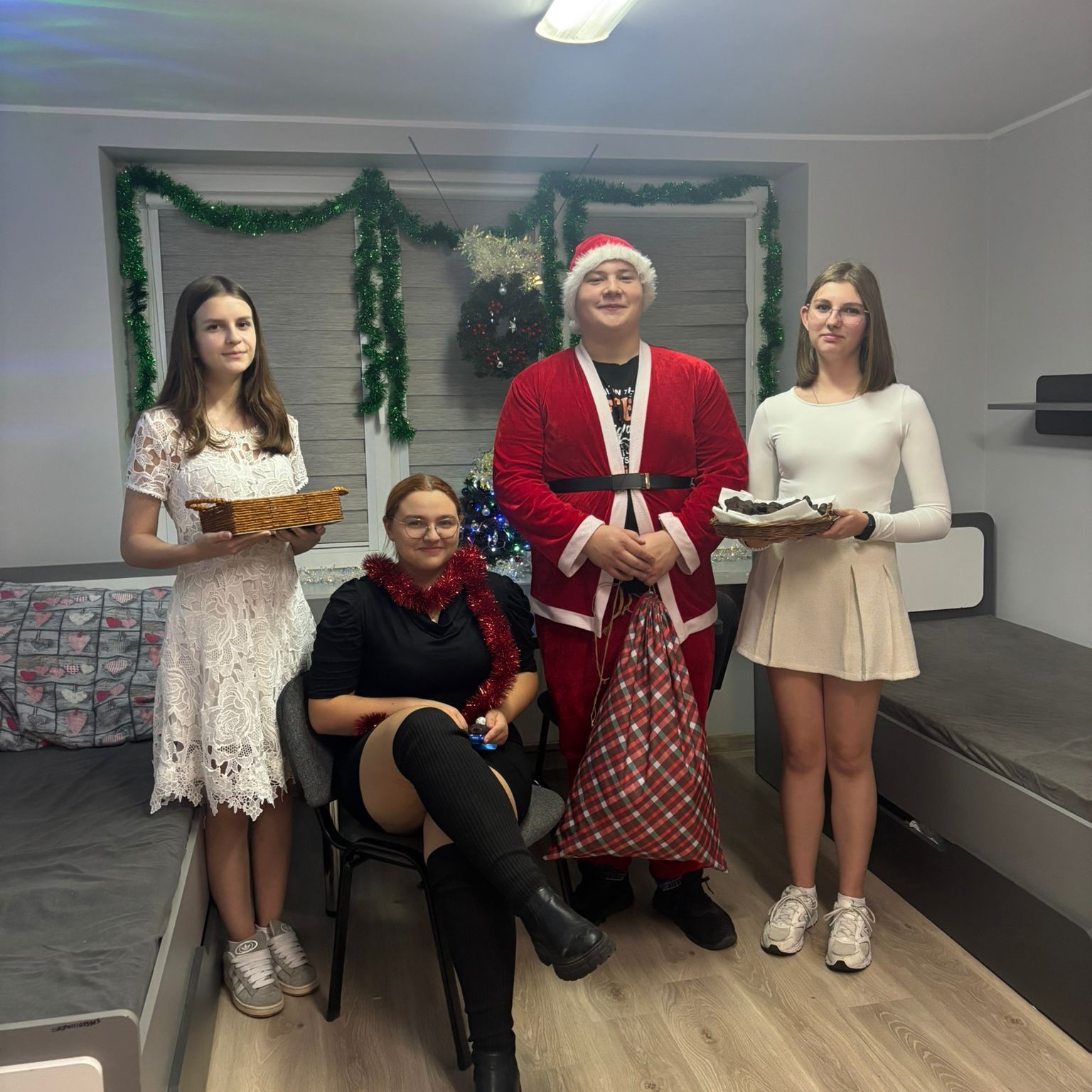 Tradycyjnie wydarzenie połączono z konkursem na najładniejszy świąteczny pokój. Uczniowie, jak zawsze, stanęli na wysokości zadania – w pokojach pojawiły się przepiękne choinki, kolorowe światełka, własnoręczne dekoracje, pachnące gałązki, a także mnóstwo ciepłego, świątecznego klimatu.