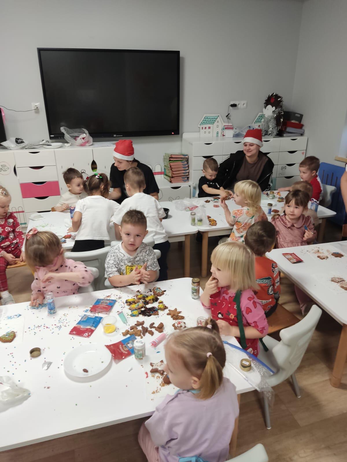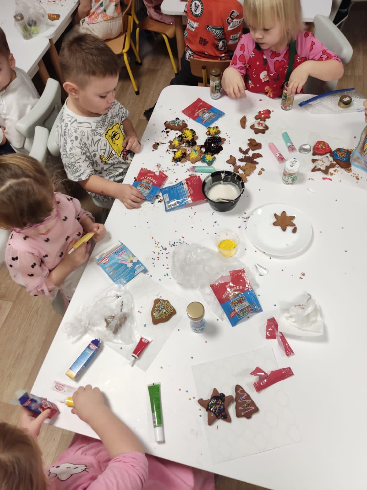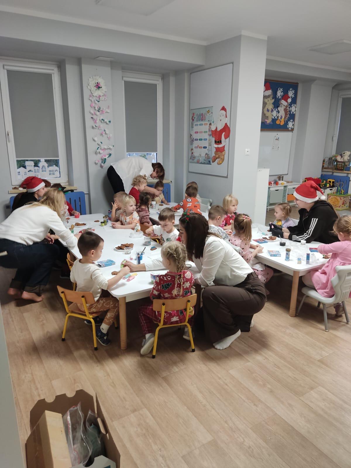 Już od pierwszych chwil dało się wyczuć wyjątkową atmosferę – przedszkolaki z entuzjazmem przywitały starszych kolegów, a uczniowie technikum szybko odnaleźli wspólny język z dziećmi. Na stołach czekały kolorowe lukry, posypki, czekoladowe perełki oraz oczywiście świeżo upieczone pierniki w kształcie serc, gwiazdek i choinek.