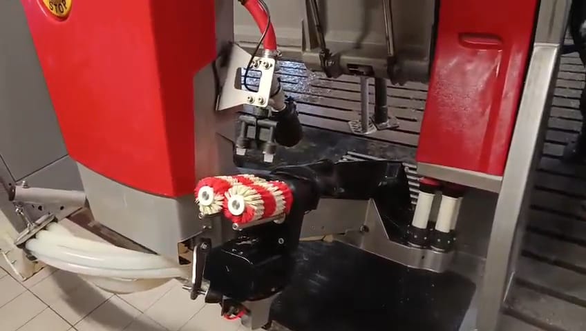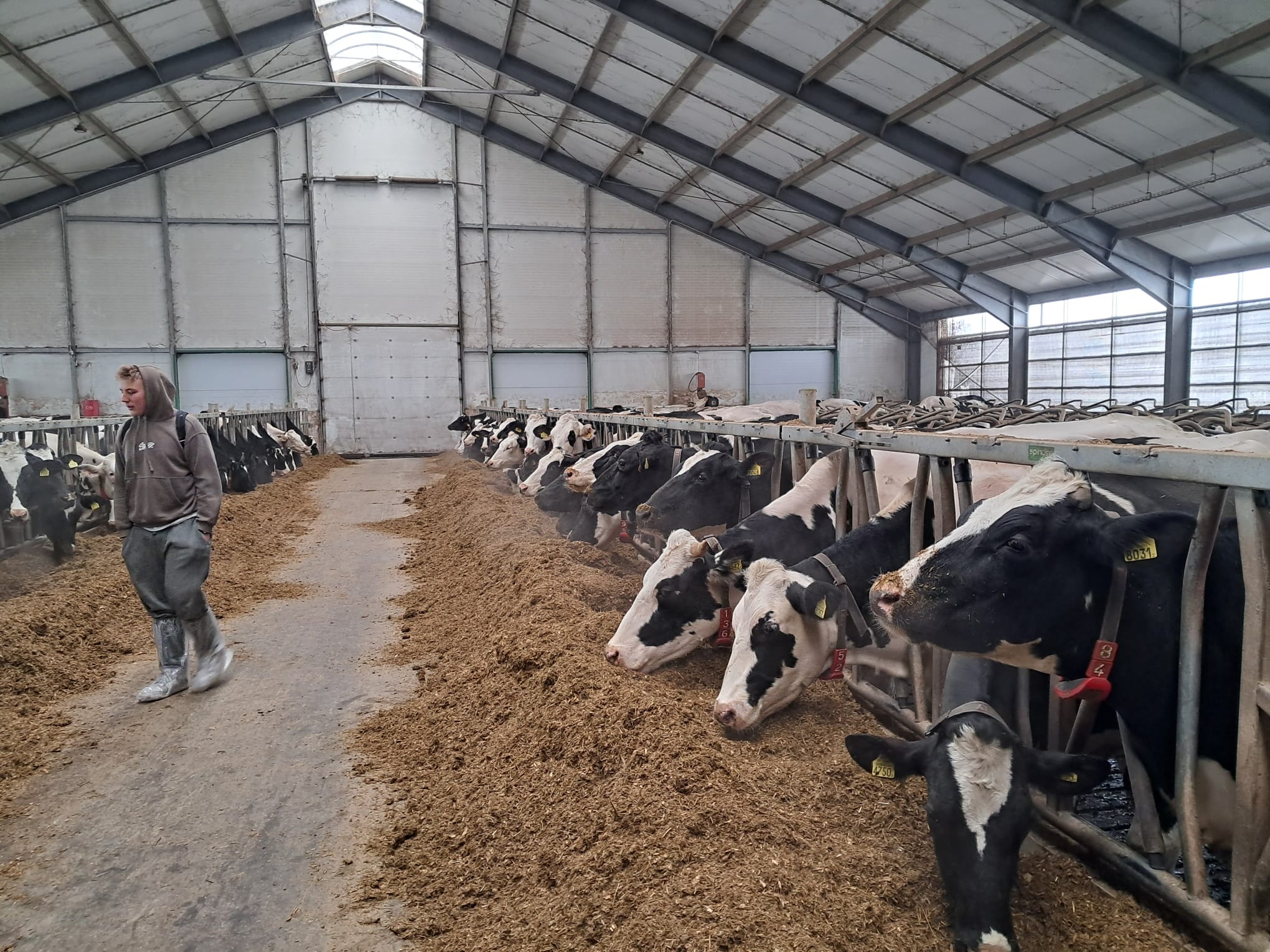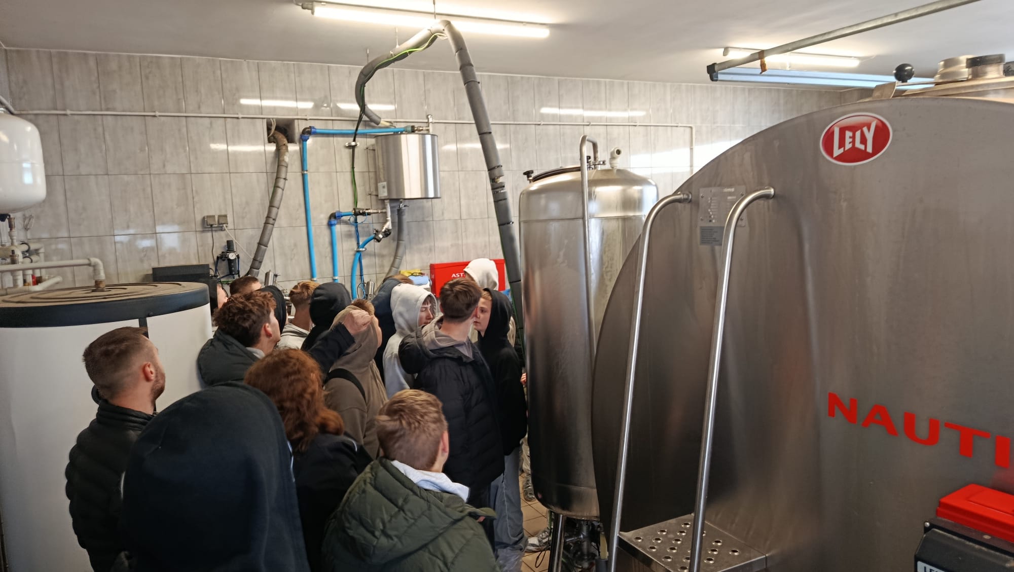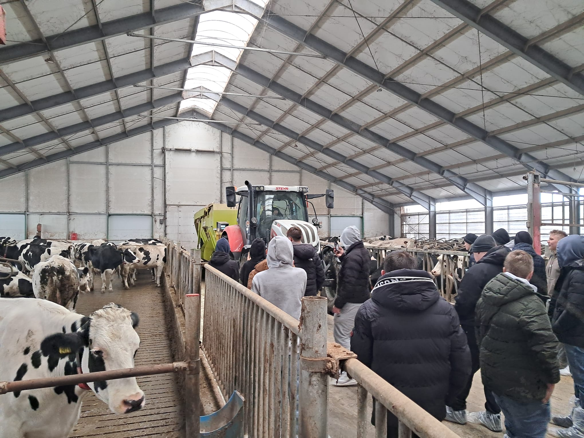 Gospodarstwo pana Pawła jest wyposażone w trzy roboty udojowe firmy Lely, które na co dzień zapewniają automatyczny i precyzyjny dój krów mlecznych. Oprócz tego młodzież mogła zobaczyć działanie robota do podgarniania paszy oraz robota czyszczącego podłogę rusztową – także tej samej marki. Dzięki temu uczniowie mieli okazję przekonać się, jak wygląda praca w nowoczesnej, zautomatyzowanej oborze oraz jakie korzyści niosą ze sobą innowacyjne rozwiązania w produkcji mleka.
