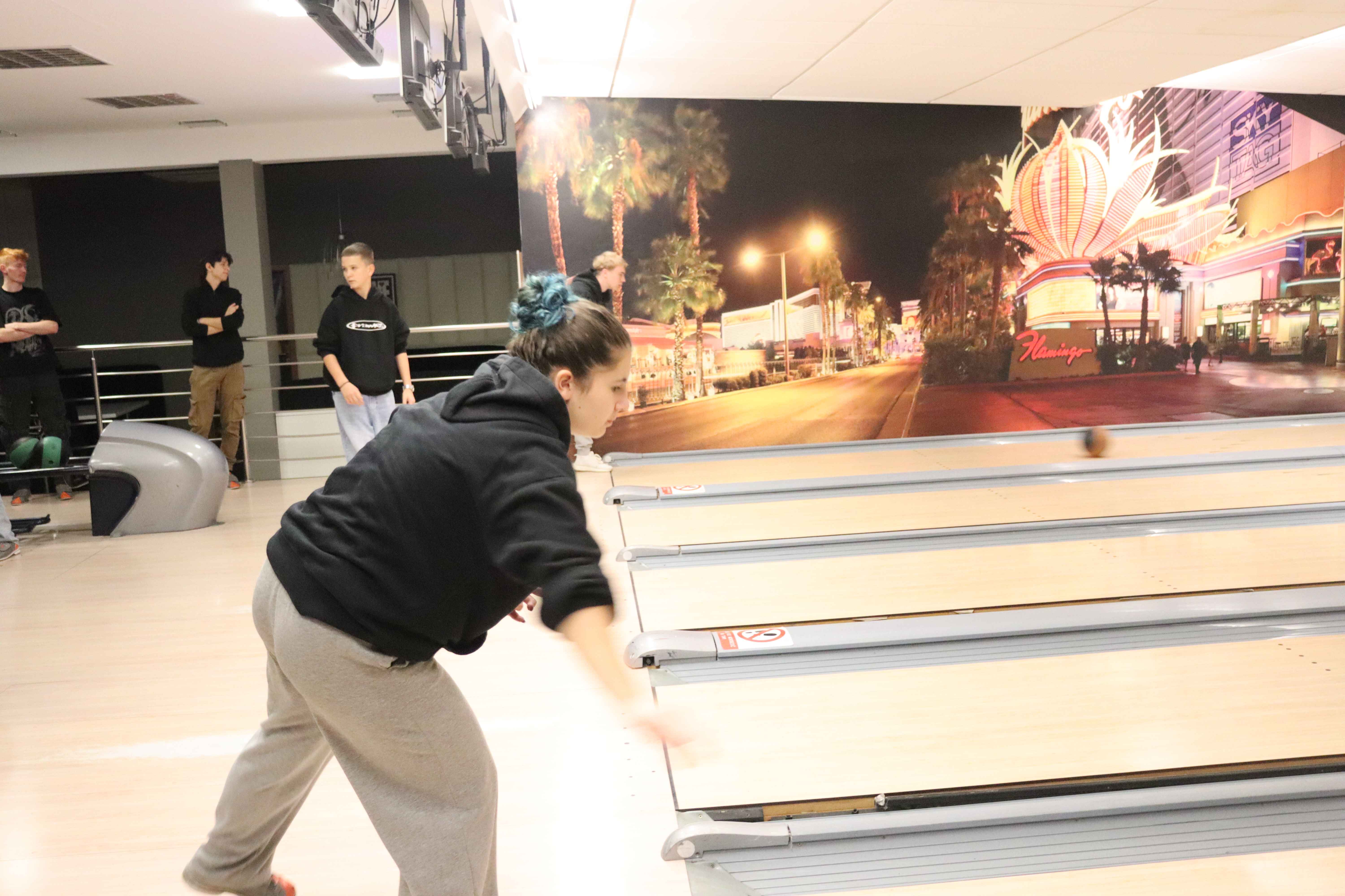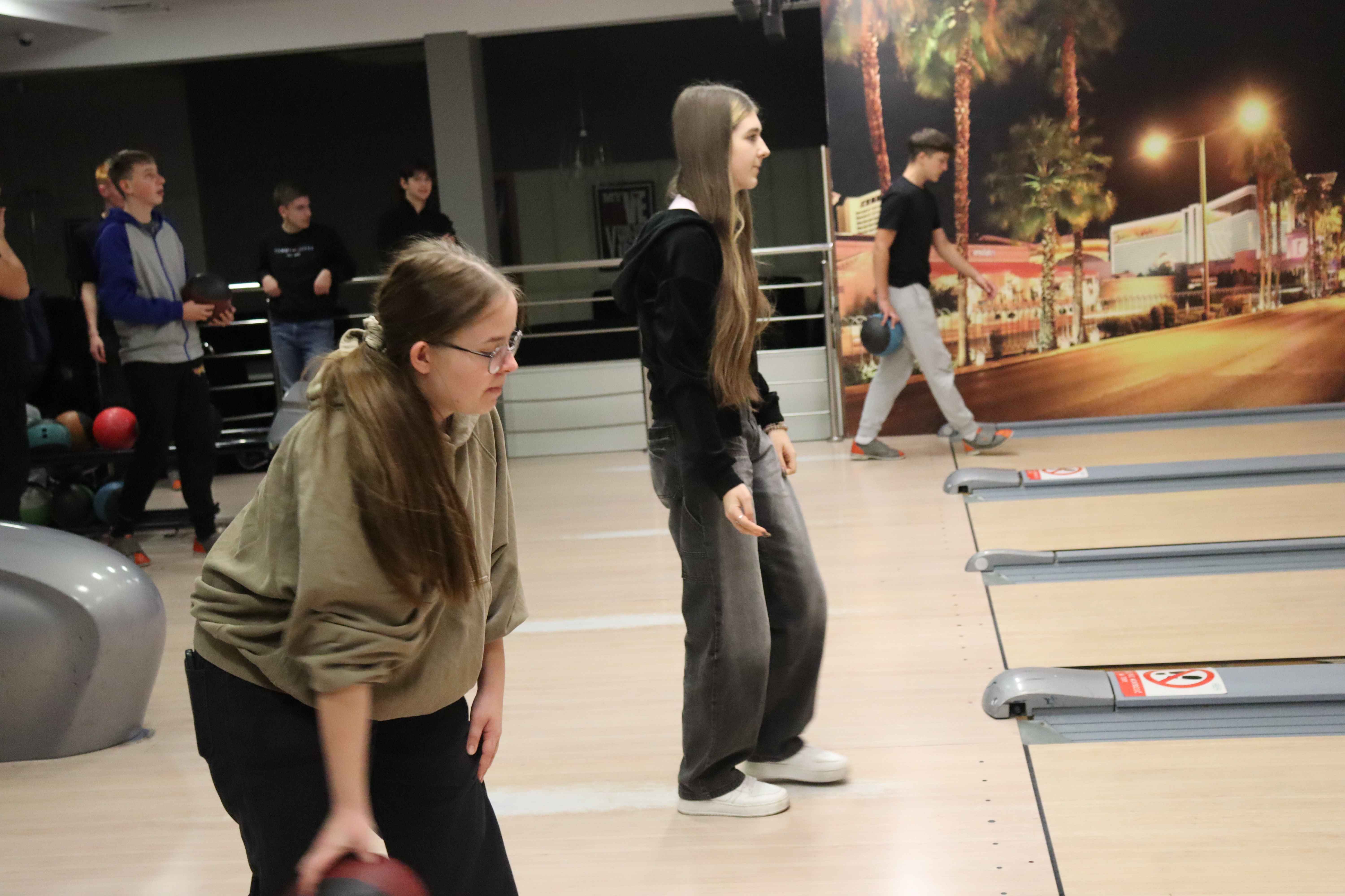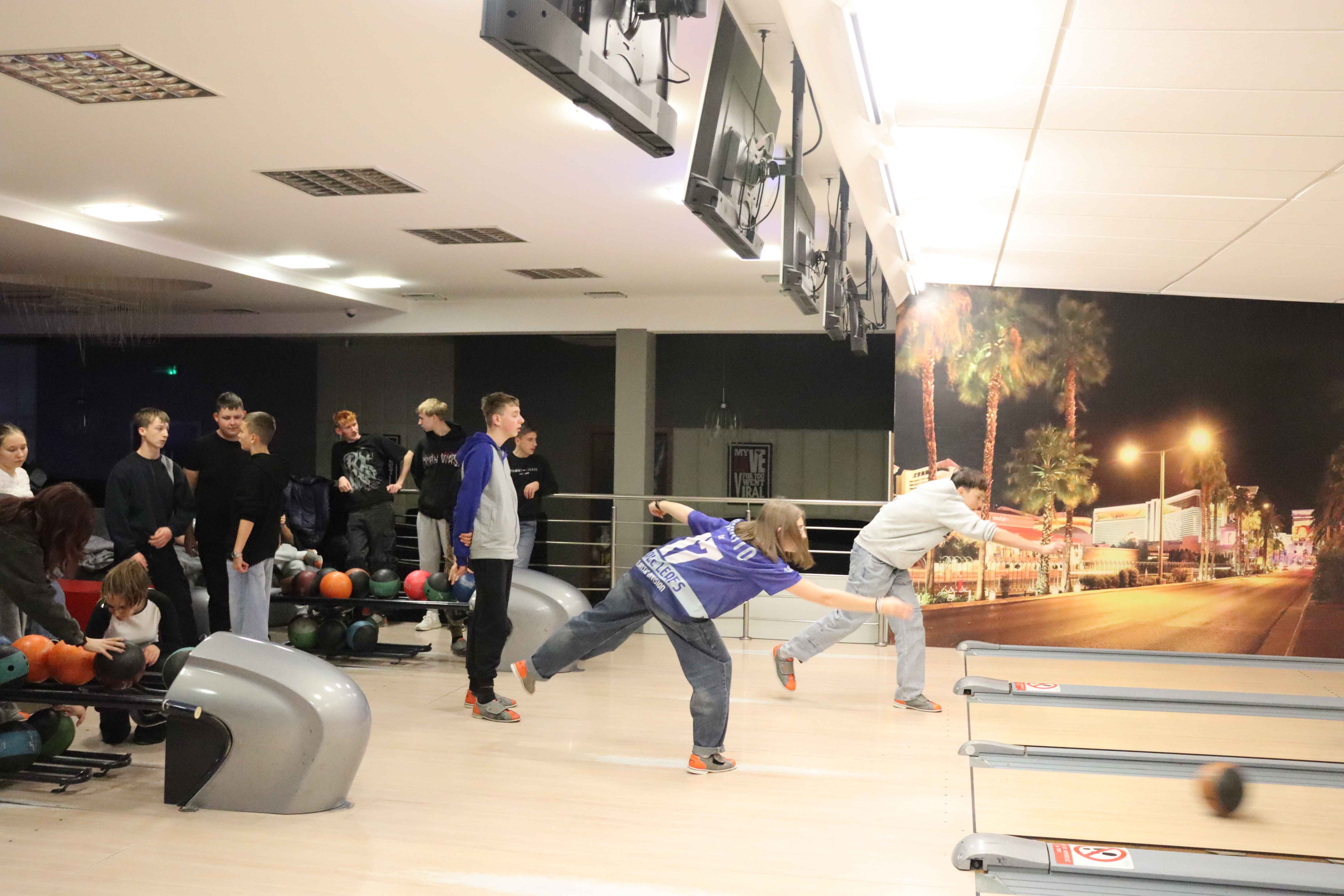 Pierwszym punktem programu była wizyta w Aquaparku, gdzie młodzież mogła aktywnie spędzić czas, rywalizując na torach kręglarskich i doskonaląc swoje umiejętności w grze. Nie zabrakło świetnej zabawy, zdrowej rywalizacji oraz okazji do wspólnej integracji.