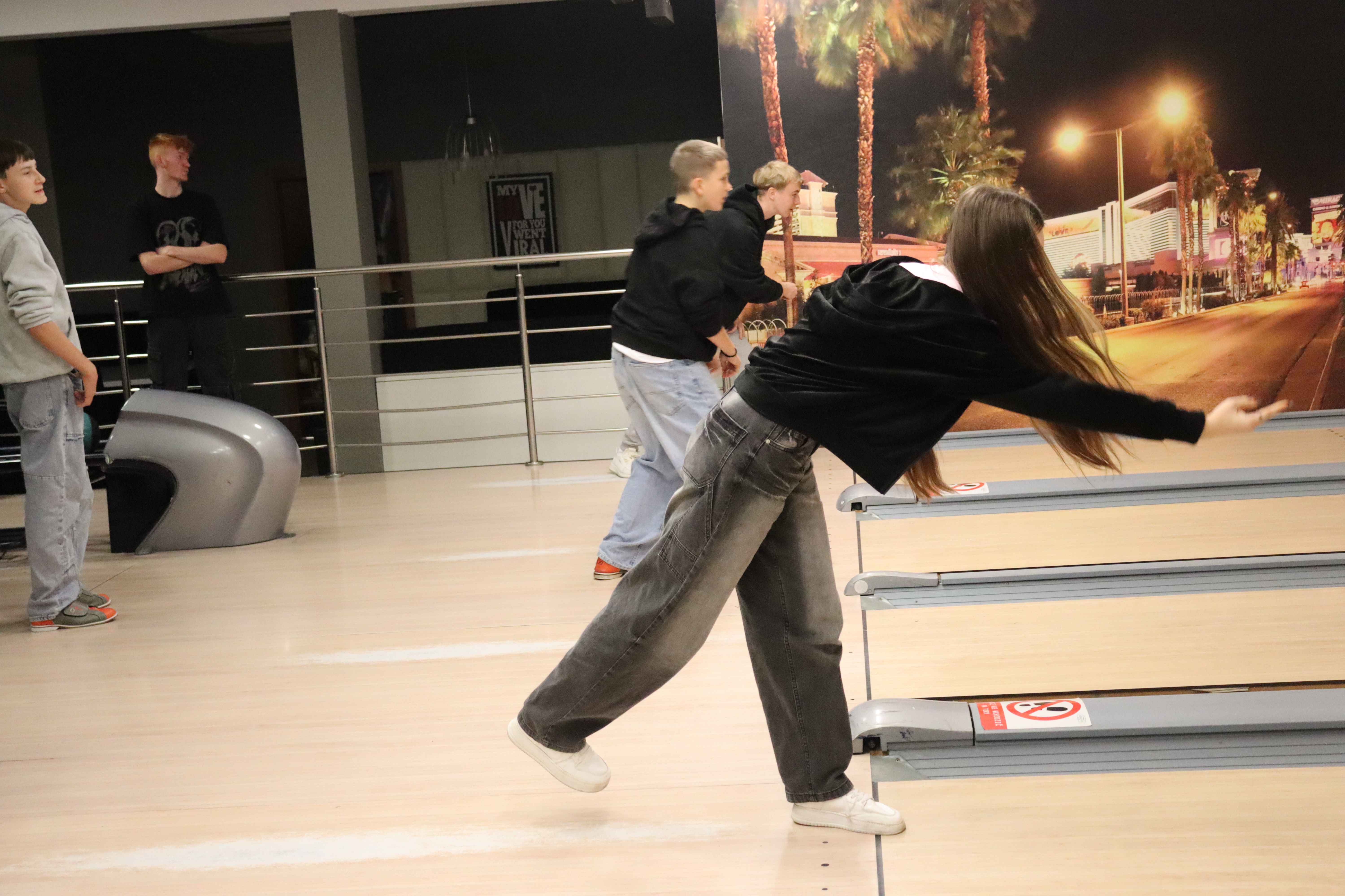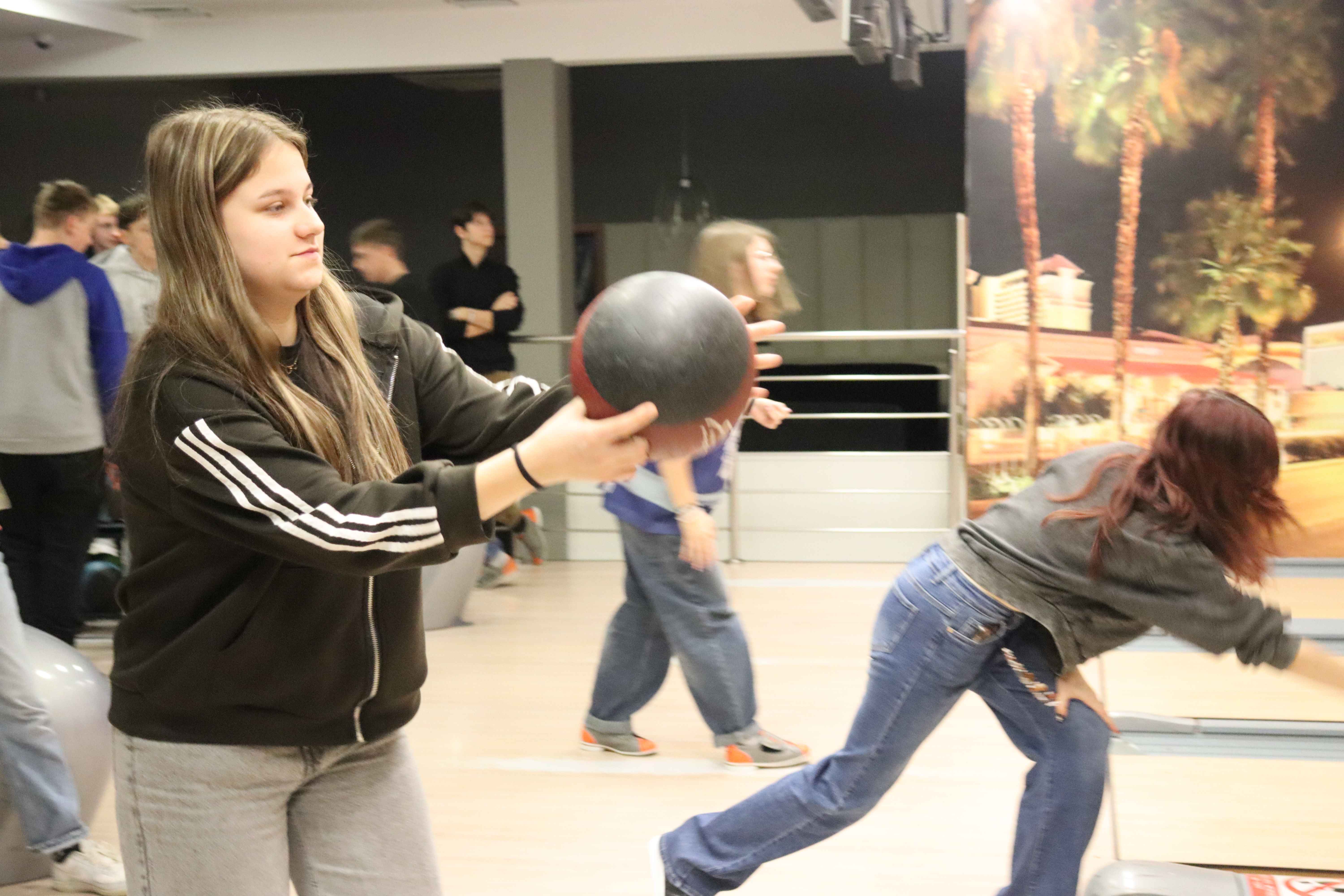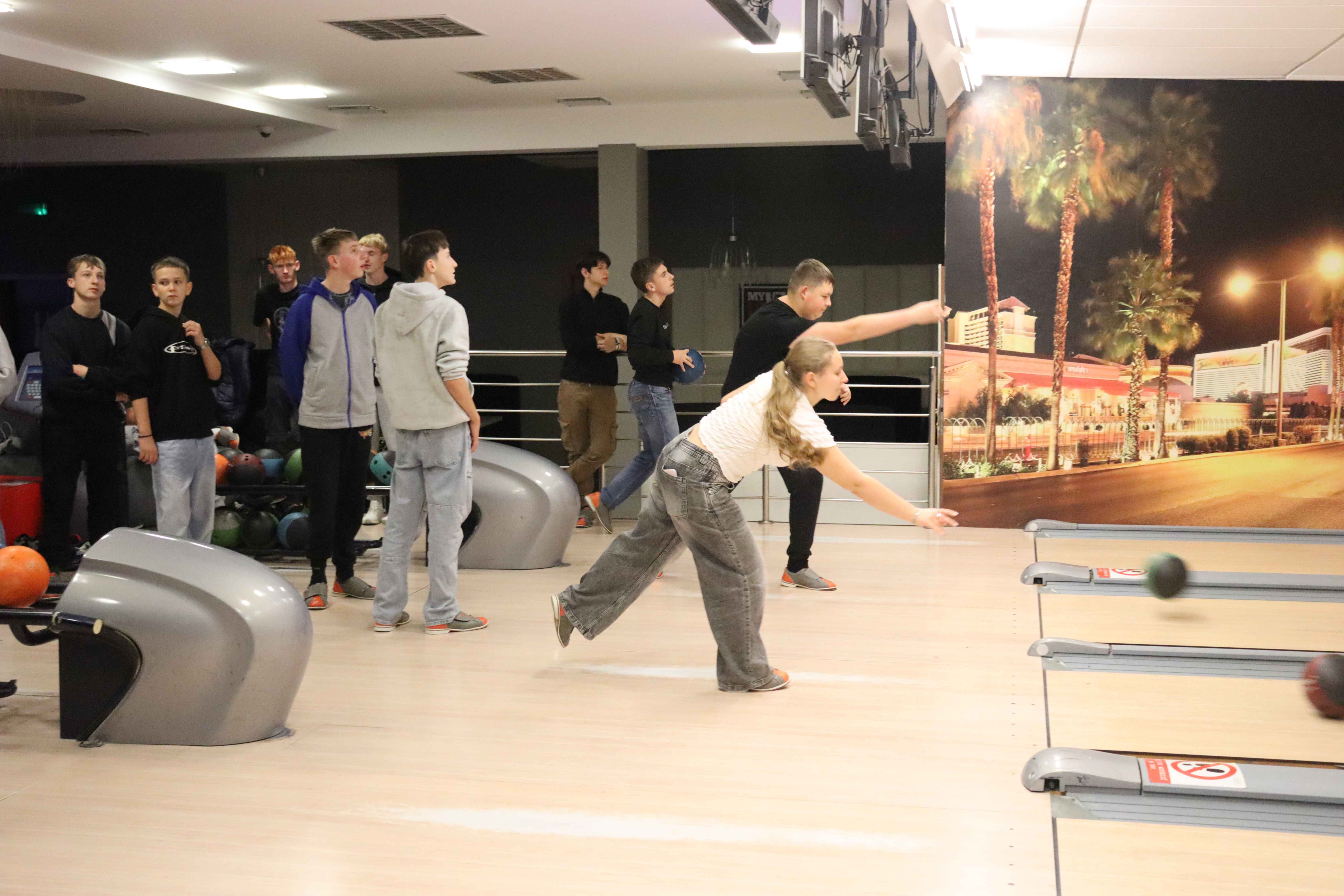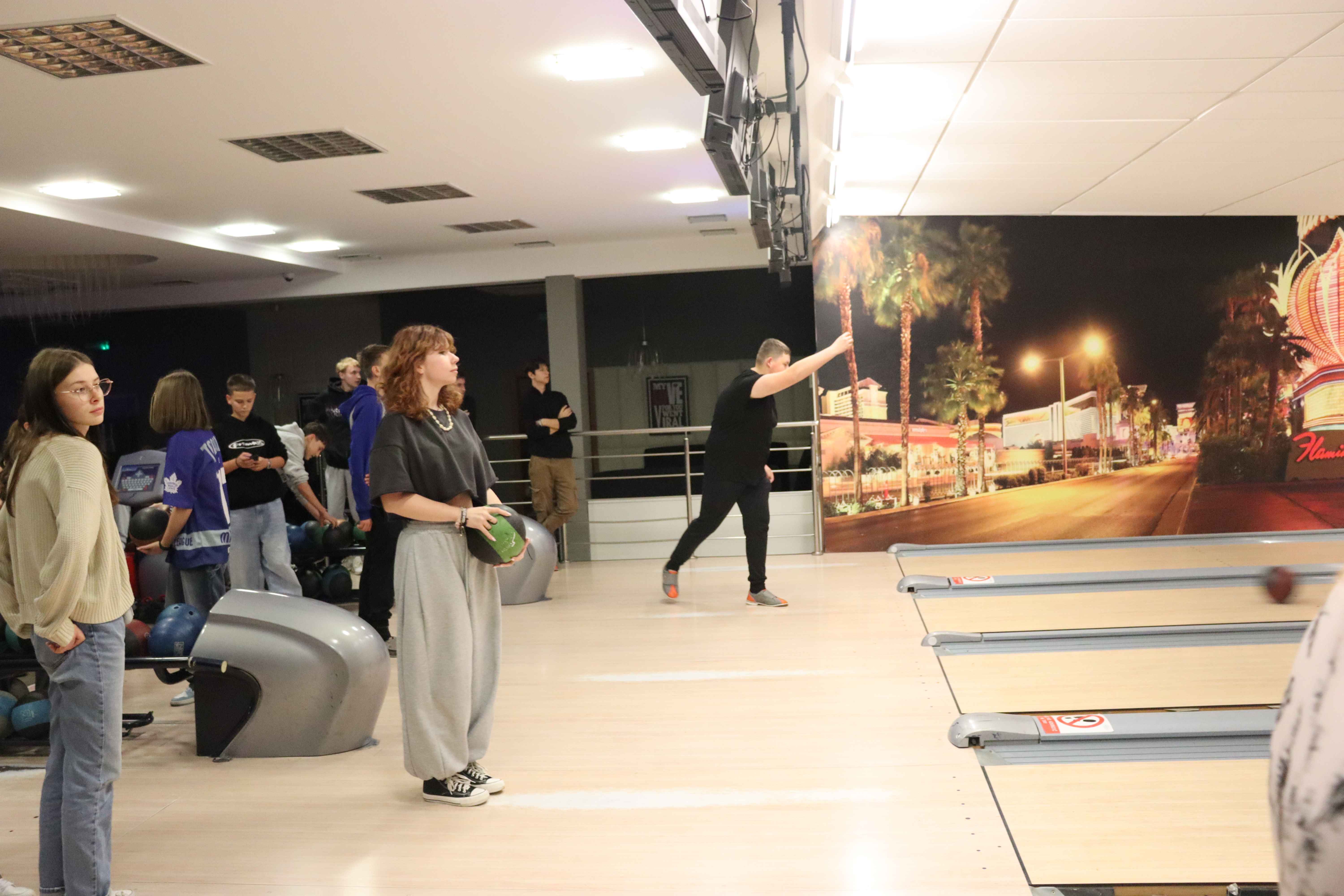 Pierwszym punktem programu była wizyta w Aquaparku, gdzie młodzież mogła aktywnie spędzić czas, rywalizując na torach kręglarskich i doskonaląc swoje umiejętności w grze. Nie zabrakło świetnej zabawy, zdrowej rywalizacji oraz okazji do wspólnej integracji.