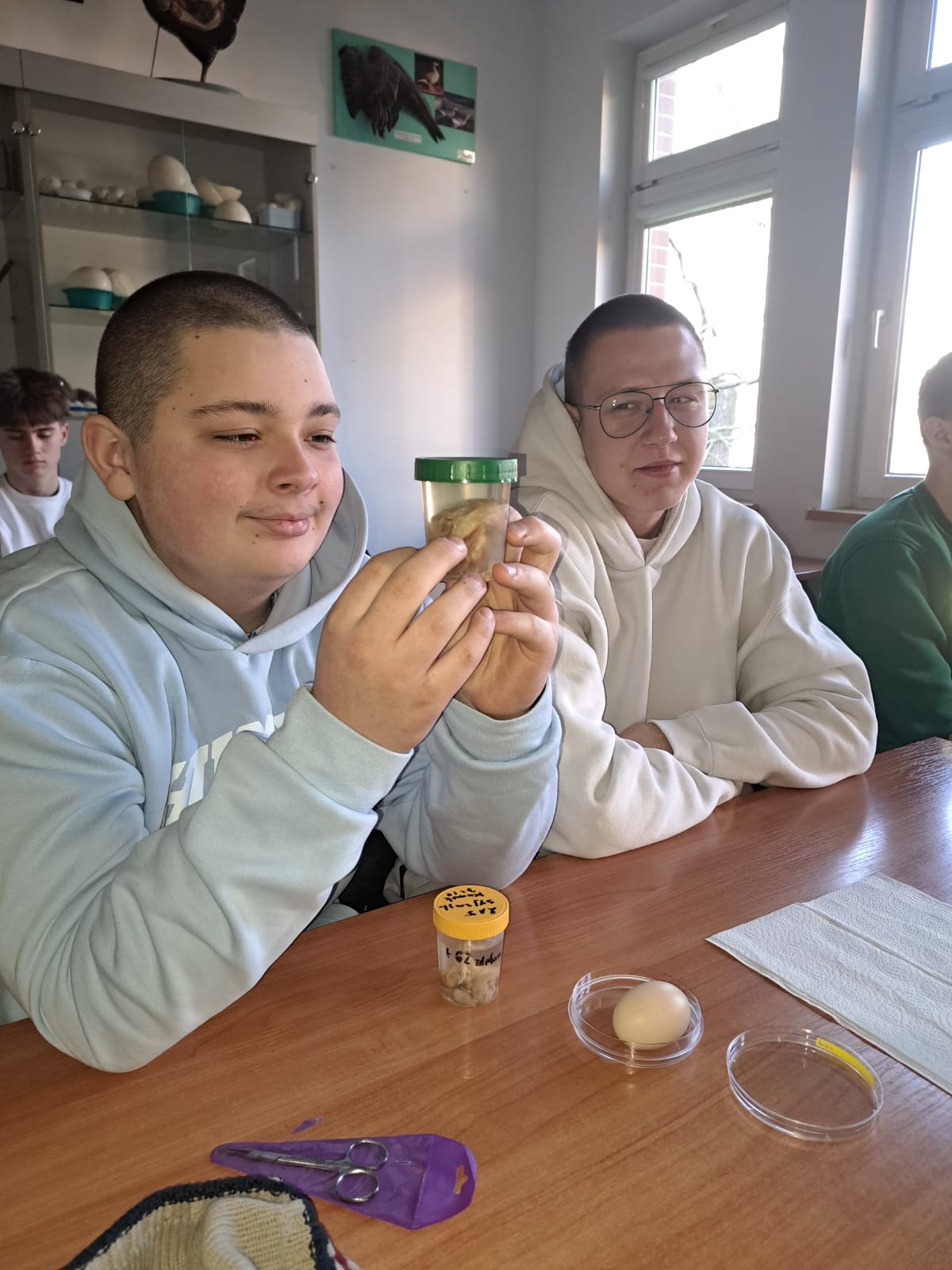 Podczas warsztatów „Od jaja do pisklęcia” młodzież miała możliwość zapoznania się z budową jaja, procesem inkubacji oraz kolejnymi etapami rozwoju zarodkowego drobiu. Uczniowie poznali zasady prawidłowego prowadzenia lęgu, warunki niezbędne do wylęgu piskląt oraz czynniki wpływające na jego efektywność. Zajęcia stanowiły cenne uzupełnienie wiadomości z zakresu produkcji zwierzęcej.