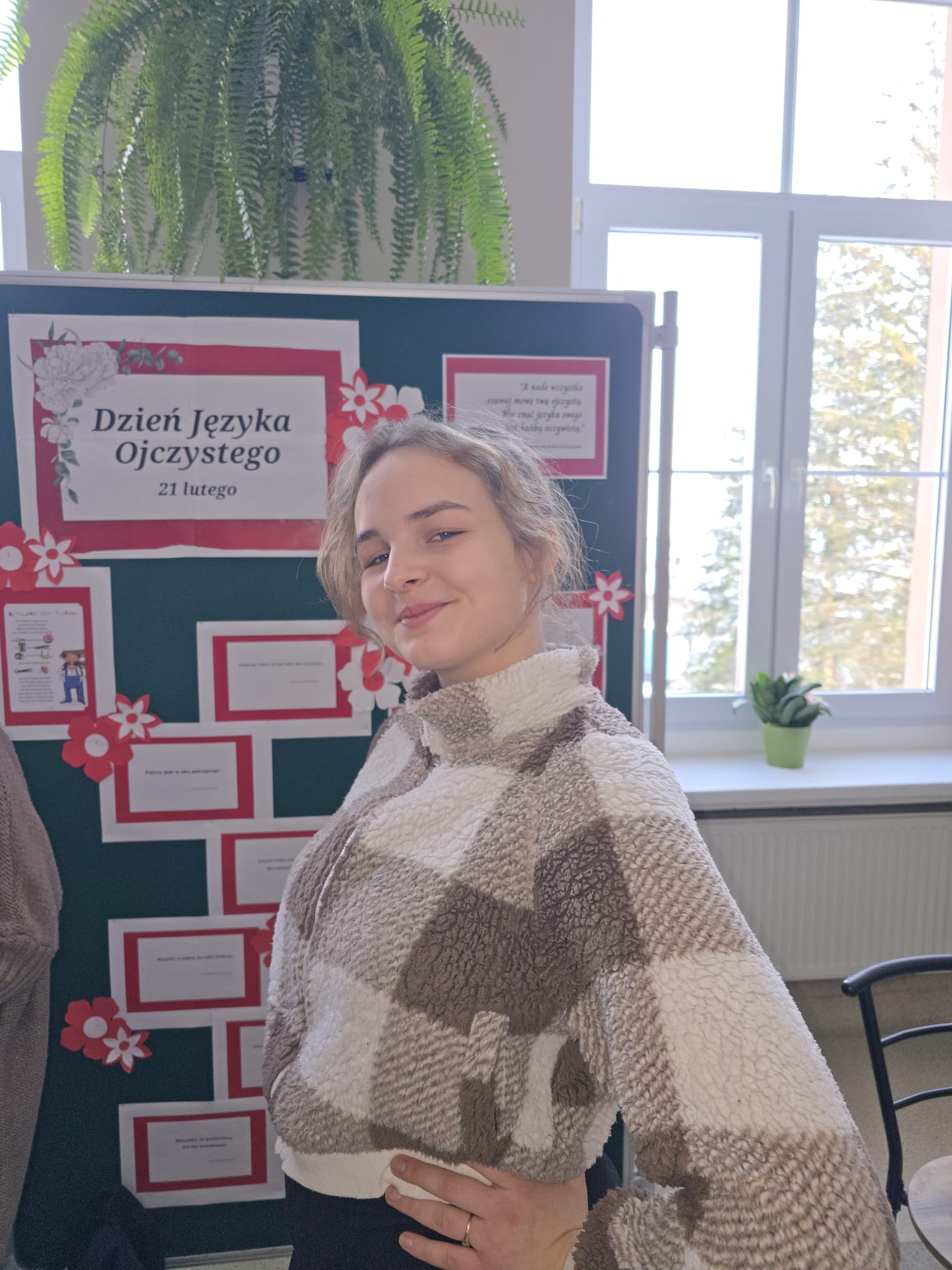 20 lutego 2026r. w ramach edukacji humanistycznej i patriotycznej uczniowie przygotowali szereg działań związanych z obchodami Międzynarodowego Dnia Języka Ojczystego. Oprócz możliwości oglądnięcia gazetki na temat znaczenia języka polskiego jako języka narodowego, cała społeczność szkolna mogła rozwiązać quiz on - line „Z tym największy jest ambaras, żeby dwoje chciało na raz - czyli miłość w literaturze i życiu". Chętni podjęli także wyzwanie związane z przyporządkowaniem zakończenia utworu do odpowiedniego tytułu. Powstał „Szkolny mini słownik słów i wyrażeń chętnie stosowanych i powszechnie pożądanych”, dzięki któremu łatwiej stosować jęzkowy savoir vivre. Nie zabrakło prezentacji przygotowanej przez tegorocznych maturzystów na temat "Język polski żyje - najnowsze zmiany w ortografii", bo przecież tegorocznym abiturientom poprawność językowa powinna być szczególnie bliska. (JM)