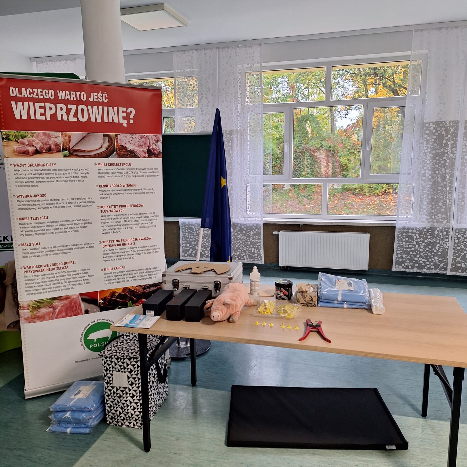 17 października 2025 r. w nasze szkole gościliśmy przedstawicieli firmy POLSUS - Polskiego Związku Hodowców i Producentów Trzody Chlewnej. Jest to organizacja zajmująca się współpracą z hodowcami w zakresie prowadzenia oceny wartości użytkowej i ksiąg hodowlanych dla świń. Blisko 60 uczniów z Technikum i Branżowej Szkoły I Stopnia uczestniczyło w warsztatach szkoleniowych dotyczących hodowli świń ras polskich, zagadnień związanych z dobrostanem zwierząt, zrównoważoną produkcją, ochroną środowiska oraz jakością cech krajowej wieprzowiny. Wszyscy uczestnicy wydarzenia wysłuchali ciekawych, bogatych w wiedzę wykładów oraz wzięli udział w części praktycznej, czyli mini warsztatach. Na koniec czekał na wszystkich ciepły, smaczny poczęstunek, czyli degustacja wyrobów z mięsa wieprzowego. Całość przygotowały Panie z naszej szkolnej kuchni. (Ko)