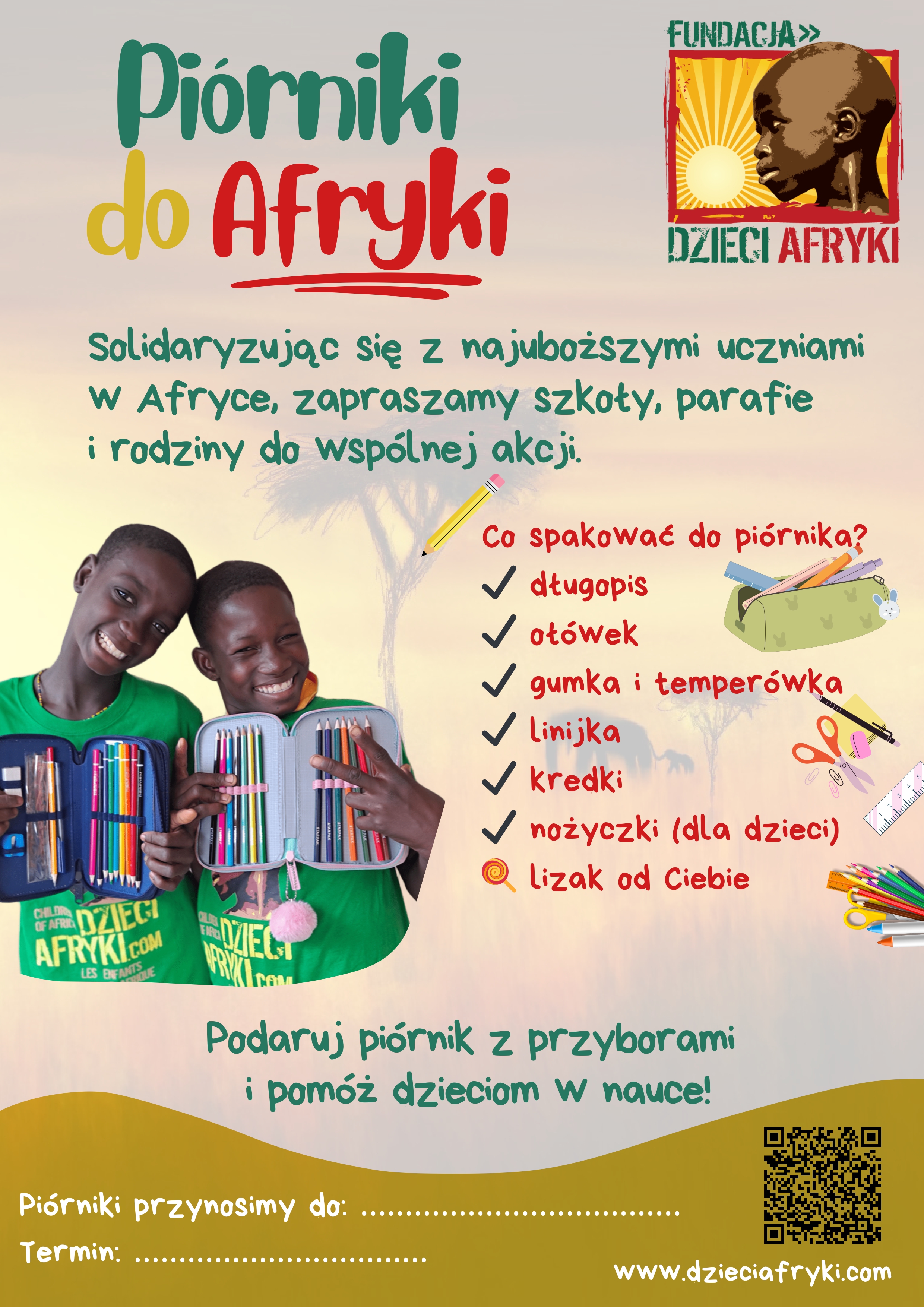 Akcja „Piórnik dla Afryki” to inicjatywa o charakterze charytatywnym, której celem jest wsparcie dzieci w krajach afrykańskich poprzez zapewnienie im podstawowych przyborów szkolnych.
