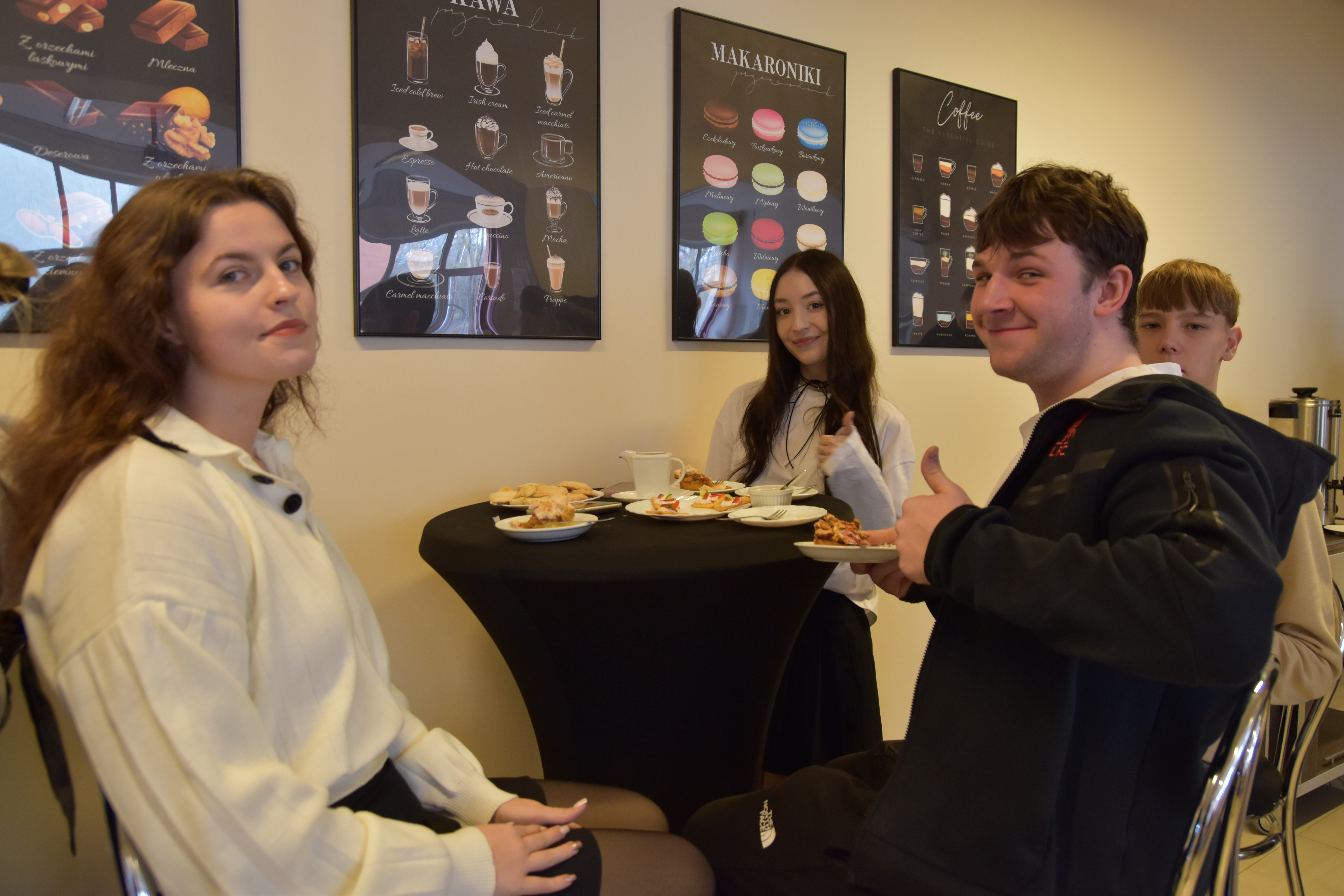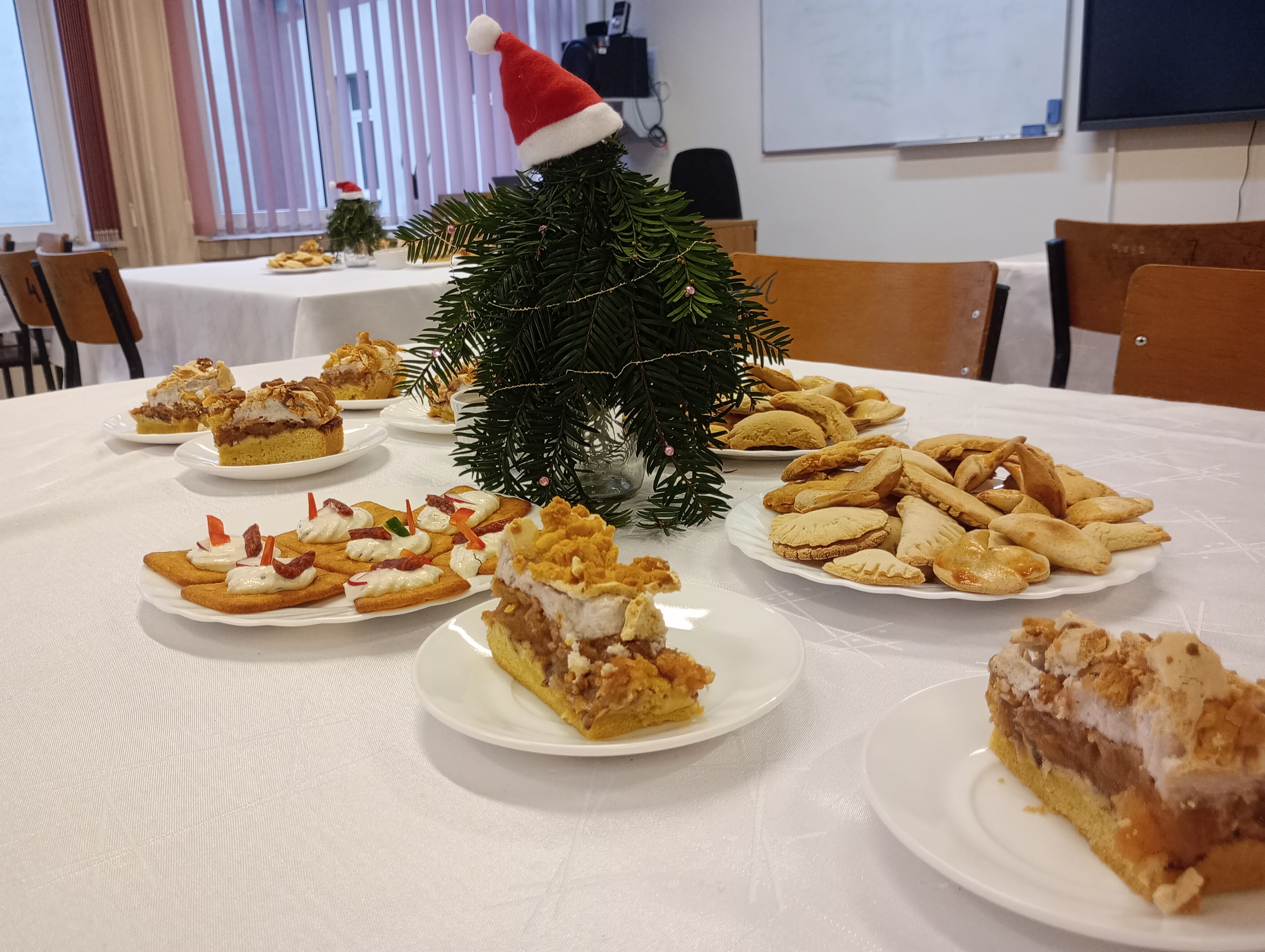 Dla uczniów, nauczycieli i pracowników szkoły przygotowane zostały pyszne smakołyki: aromatyczna szarlotka z cynamonem, ciasteczka z wróżbą, wytrawne tartinki oraz rozgrzewająca herbatka zimowa, które wprowadziły wszystkich w wyjątkowy, przedświąteczny nastrój.