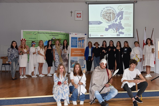 W ramach podsumowania projektu uczniowie zorganizowali dzień grecki, podczas którego przedstawili społeczności szkolnej i lokalnej prezentację zawierającą relacje z każdego dnia pobytu w Grecji. Zorganizowali również pokaz mody greckiej.