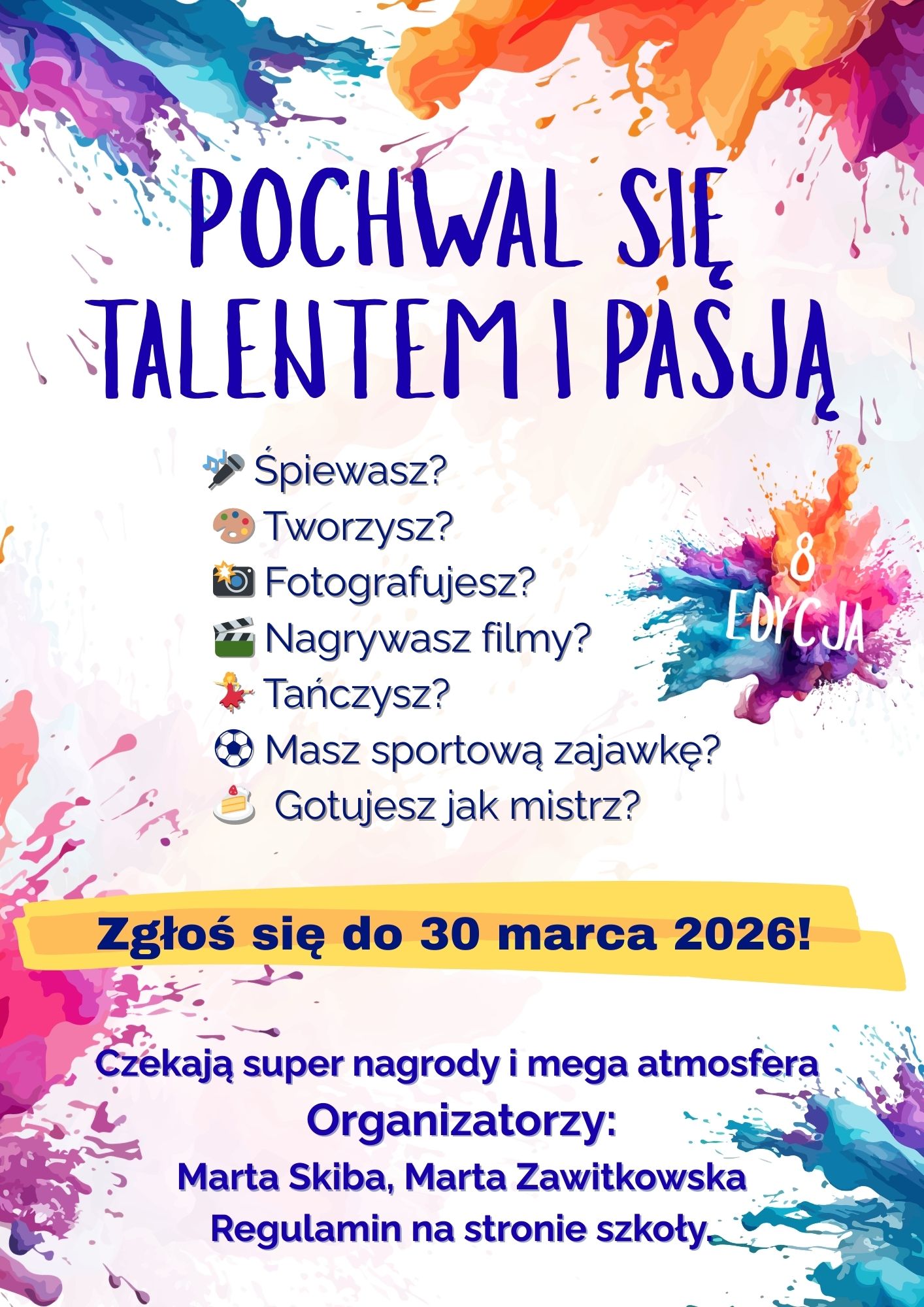 Serdecznie zachęcamy do udziału i pokazania, jak wiele talentów kryje nasza społeczność szkolna.