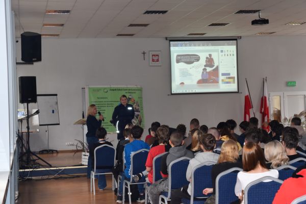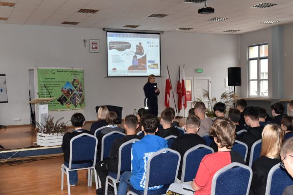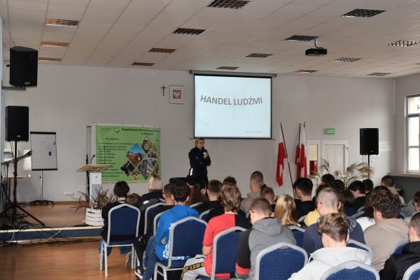 „Pełni mocy przeciw przemocy” to temat spotkania, które odbyło się 17.10.2025 r. w naszej szkole. Spotkanie prowadziła mł. asp. Elżbieta Huber – przedstawiciel Komendy Powiatowej Policji w Lubaczowie. Celem wizyty było przedstawienie zagrożeń związanych z bezpieczeństwem w internecie, cyberprzemoc oraz handel ludźmi, który uznany jest za współczesną formę niewolnictwa.