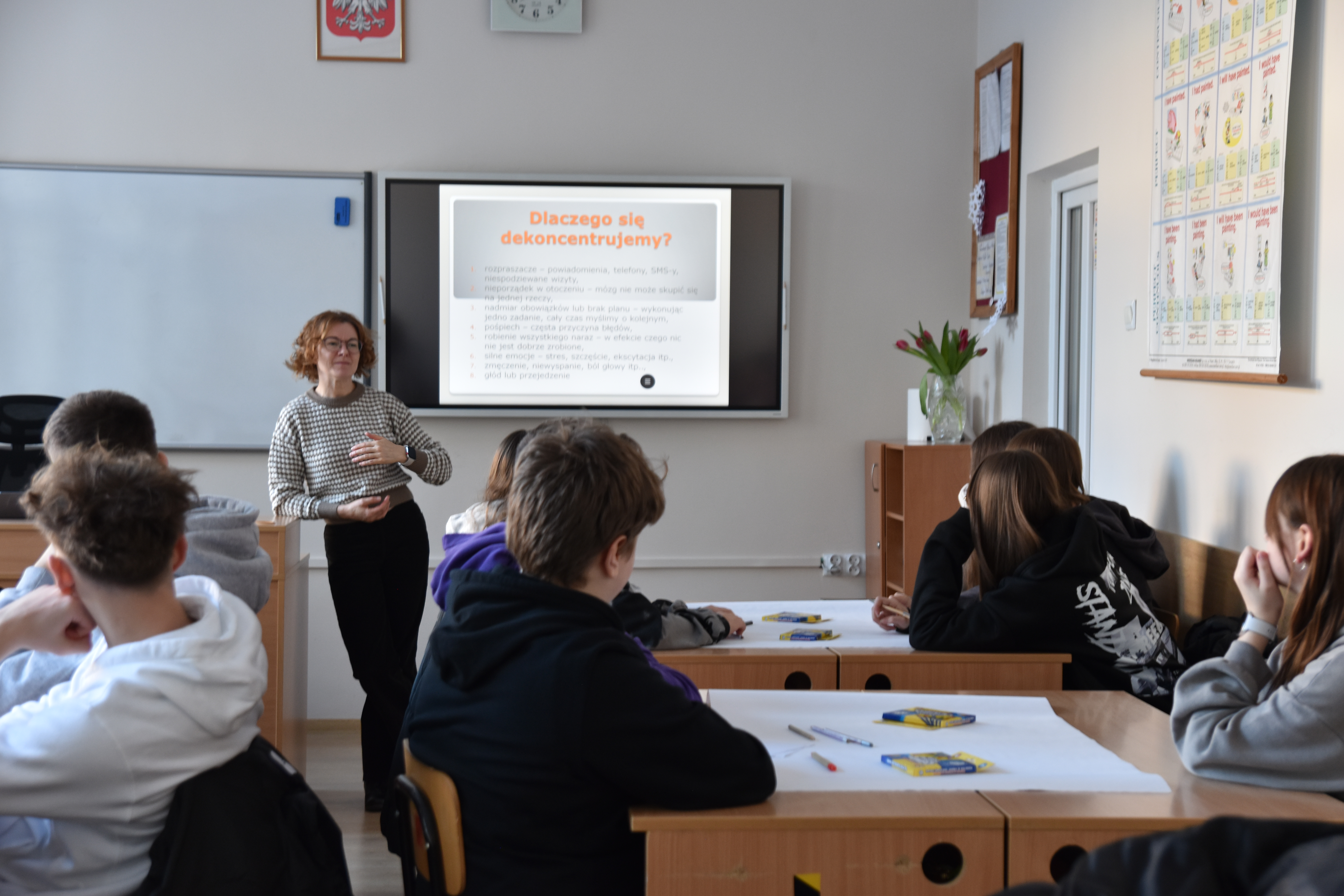 Uczniowie zapoznali się z metodami poprawiającymi koncentrację , mnemotechnikami oraz sprawdzili możliwości swojej pamięci na przykładzie uczenia się języków obcych.