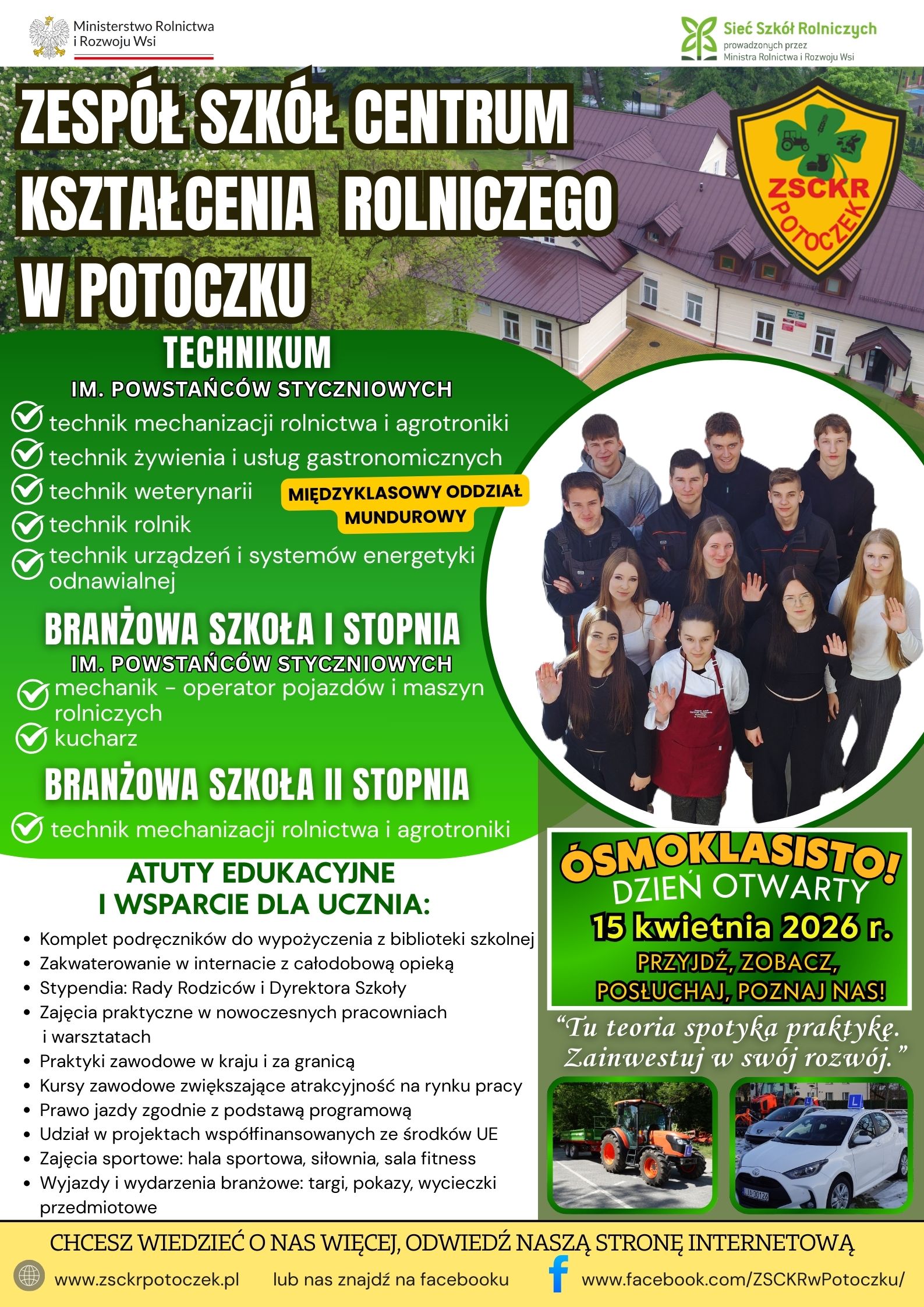 Rekrutacja 2026/2027 Oferta Edukacyjna Technikum oraz Branżowej Szkoły I Stopnia w ZSCKR w Potoczku!