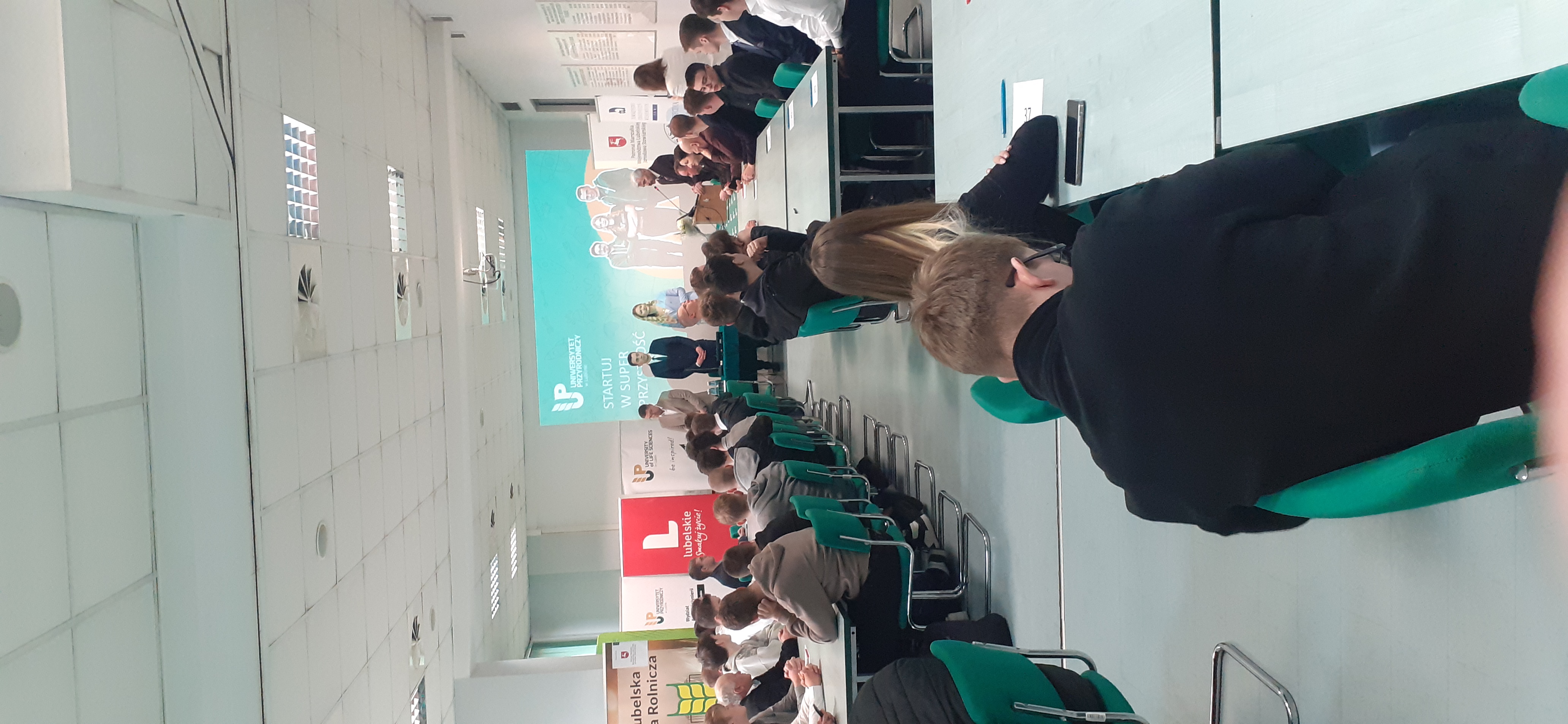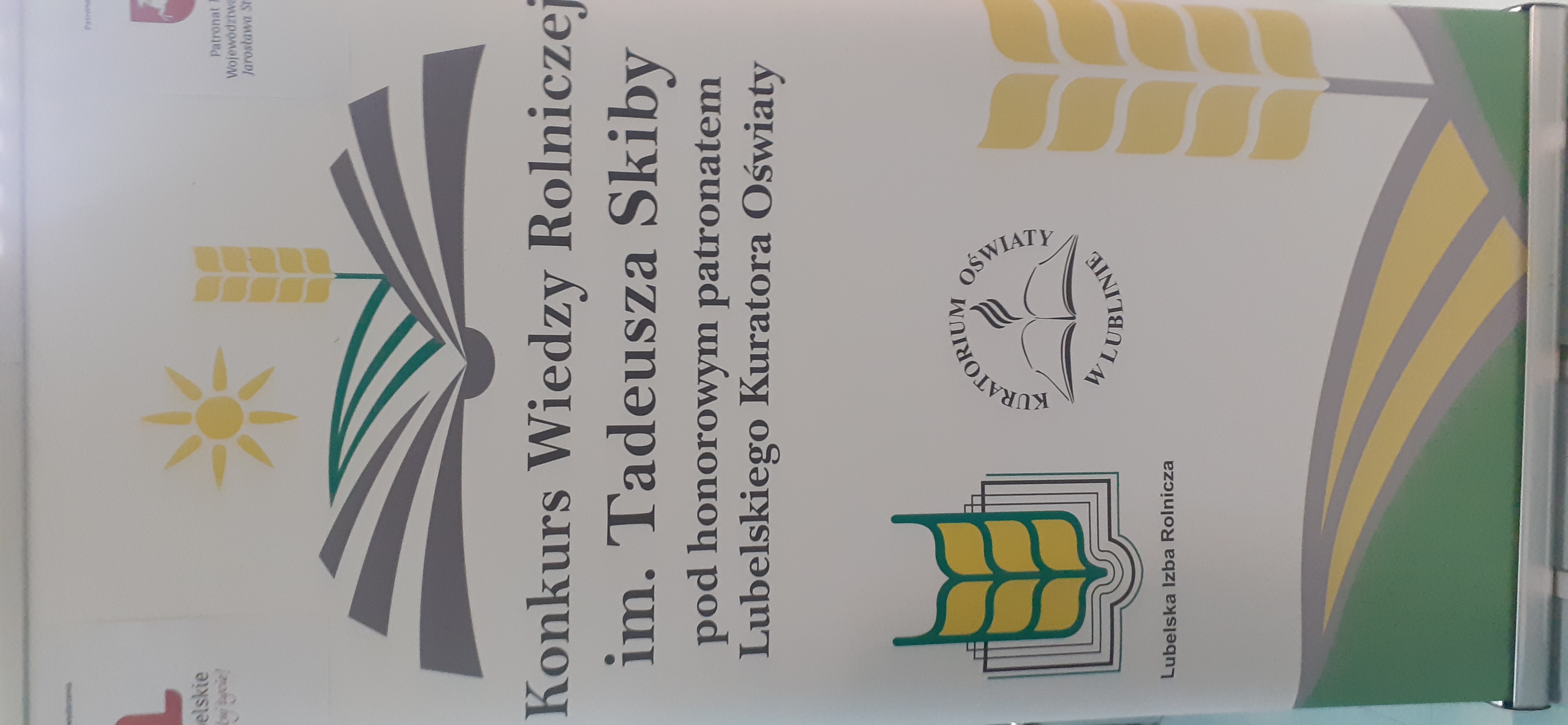 Konkurs Wiedzy Rolniczej skierowany był do uczniów szkół średnich województwa lubelskiego z rolniczymi profilami nauczania. Zakres wiedzy konkursowej obejmował produkcję roślinną, zwierzęcą, mechanizację rolnictwa, ogrodnictwa oraz działalność izb rolniczych. W tym roku do konkursu przystąpiło 13 szkół, z których każda wytypowała trzech reprezentujących uczniów. W sumie w Konkursie udział wzięło 42 uczniów. Zadaniem ich było rozwiązanie testu składającego się z 30 pytań jednokrotnego wyboru. Nasi uczniowie wykazali się bardzo dobrą wiedzą i zajęli: - III miejsce Jakub Pawusiak - IV miejsce Bis Patryk i Krupka Alan Za uzyskane efekty otrzymali atrakcyjne nagrody, przy czym Jakub Pawusiak dodatkowo nagrodę pieniężną w wysokości 1000 złotych. Fundatorami nagród byli: Towarzystwo Ubezpieczeń Wzajemnych TUW Biuro Regionalne w Lublinie, Bank Spółdzielczy w Nałęczowie, Uniwersytet Przyrodniczy w Lublinie oraz Lubelska Izba Rolnicza ze wsparciem Lubelskiego Urzędu Marszałkowskiego oraz Partnerem Wydarzenia Województwo Lubelskie „Lubelskie Smakuj Życie!”.