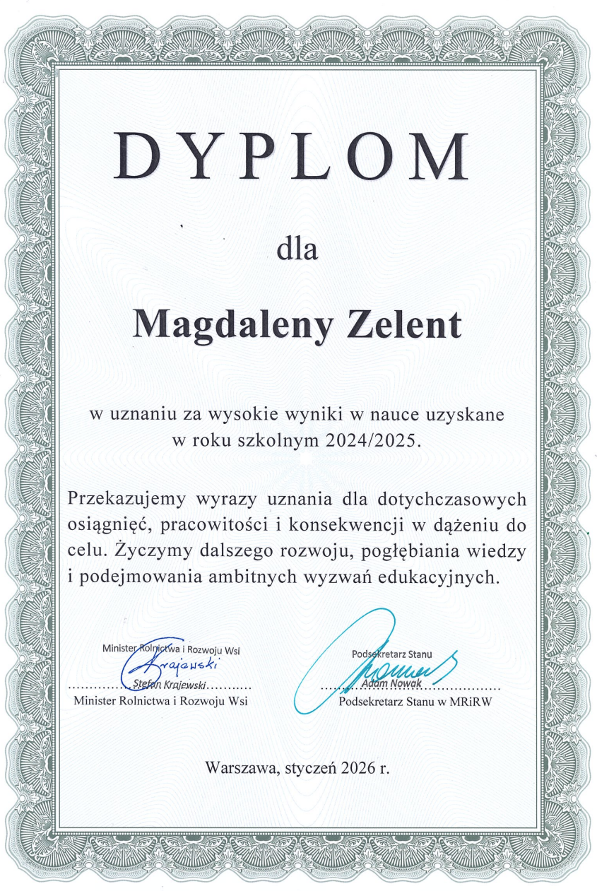 Magda Zelent stypendystka Ministra Rolnictwa i Rozwoju Wsi