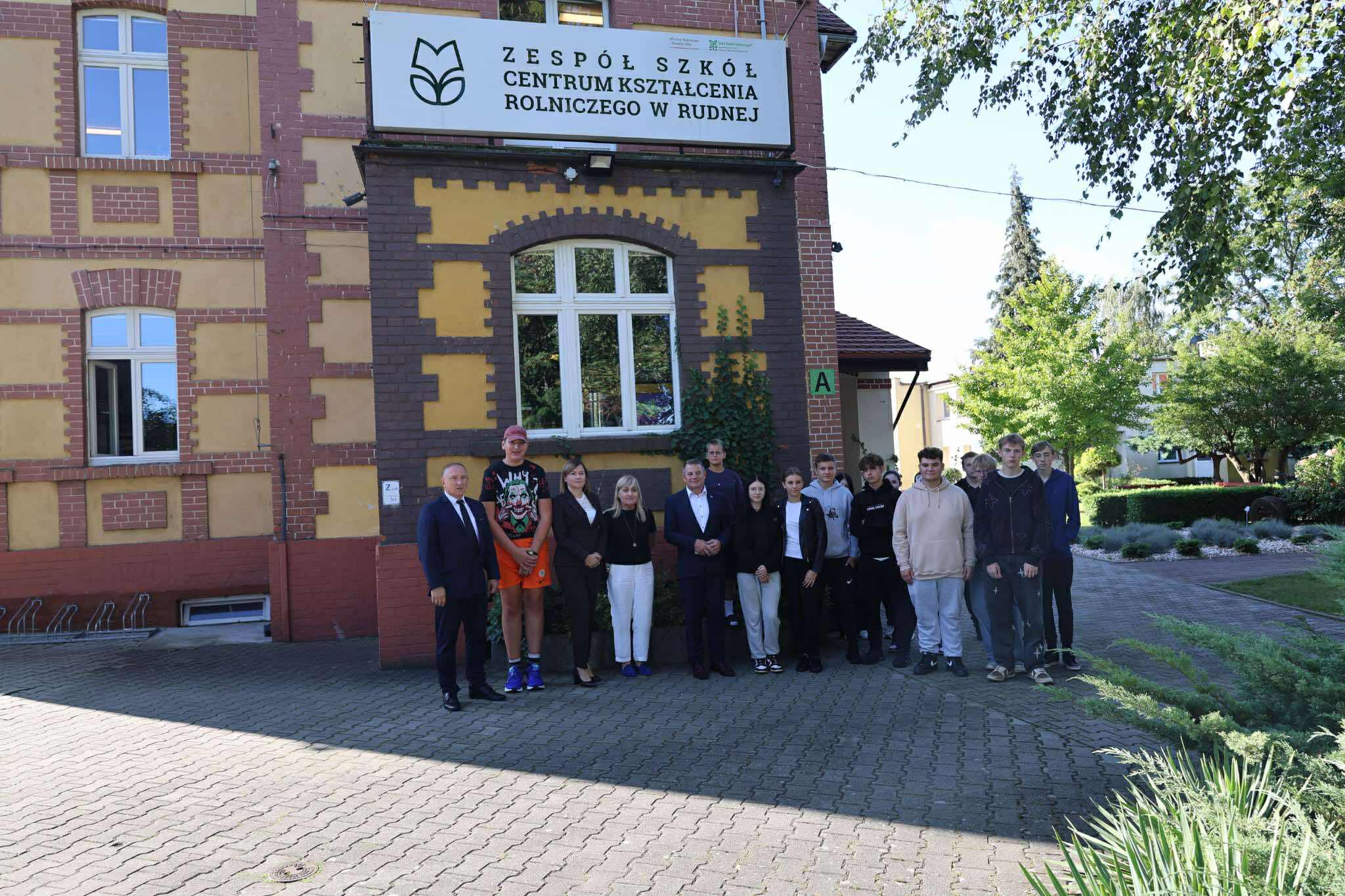 19 września 2025 roku Gmina Rudna miała przyjemność gościć wicewojewodę dolnośląskiego, pana Artura Jurkowskiego. Wizyta odbyła się na zaproszenie Wójta Gminy Rudna, pana Zbigniewa Grabowskiego i była okazją do omówienia kluczowych zagadnień związanych z rozwojem gminy, współpracą z administracją rządową oraz możliwościami pozyskiwania dodatkowych środków na realizację lokalnych inwestycji. Spotkanie było okazją do zaprezentowania bieżących działań prowadzonych przez samorząd. Wójt Gminy przedstawił wicewojewodzie najważniejsze realizowane inwestycje, takie jak termomodernizacja Szkoły Podstawowej im. Jana Pawła II czy remont basenu, który ma służyć zarówno uczniom, jak i całej społeczności lokalnej. W planach są również kolejne przedsięwzięcia infrastrukturalne, których celem jest dalsza poprawa jakości życia mieszkańców. Podczas rozmów nie zabrakło tematów związanych z modernizacją infrastruktury drogowej – szczególnie w zakresie stanu technicznego dróg powiatowych oraz planowanych działań dotyczących dróg wojewódzkich. W spotkaniu uczestniczyli również: zastępca wójta pan Roman Kuziak oraz pani Iwona Wiśniewska – dyrektor Zespołu Szkół Centrum Kształcenia Rolniczego w Rudnej. Kolejnym punktem wizyty było odwiedzenie Zespołu Szkół Centrum Kształcenia Rolniczego w Rudnej – placówki o unikalnym profilu edukacyjnym, prowadzonej przez Ministra Rolnictwa i Rozwoju Wsi. To jedna z nielicznych szkół ponadpodstawowych funkcjonujących na terenie wiejskiej gminy, co czyni ją prawdziwym powodem do dumy. Wicewojewoda zapoznał się z zapleczem dydaktycznym szkoły oraz planami jej rozbudowy i dalszego rozwoju. Placówka pełni istotną rolę nie tylko edukacyjną, ale również społeczną i gospodarczą – przygotowując młodzież do pracy w sektorze rolniczym. Podczas wizyty nie mogło zabraknąć akcentu turystycznego. W miejscowości Wysokie wicewojewoda odwiedził Gospodarstwo Enoturystyczne "Łemkowska Dolina", prowadzone przez pana Ryszarda Budzińskiego. To miejsce, które w unikalny sposób łączy agroturystykę z lokalnym winiarstwem, oferując nie tylko wypoczynek w pięknych okolicznościach przyrody, ale i możliwość poznania kultury oraz tradycji regionu. „Łemkowska Dolina" staje się coraz bardziej rozpoznawalną wizytówką naszej gminy, przyciągając turystów z całego województwa i spoza jego granic.