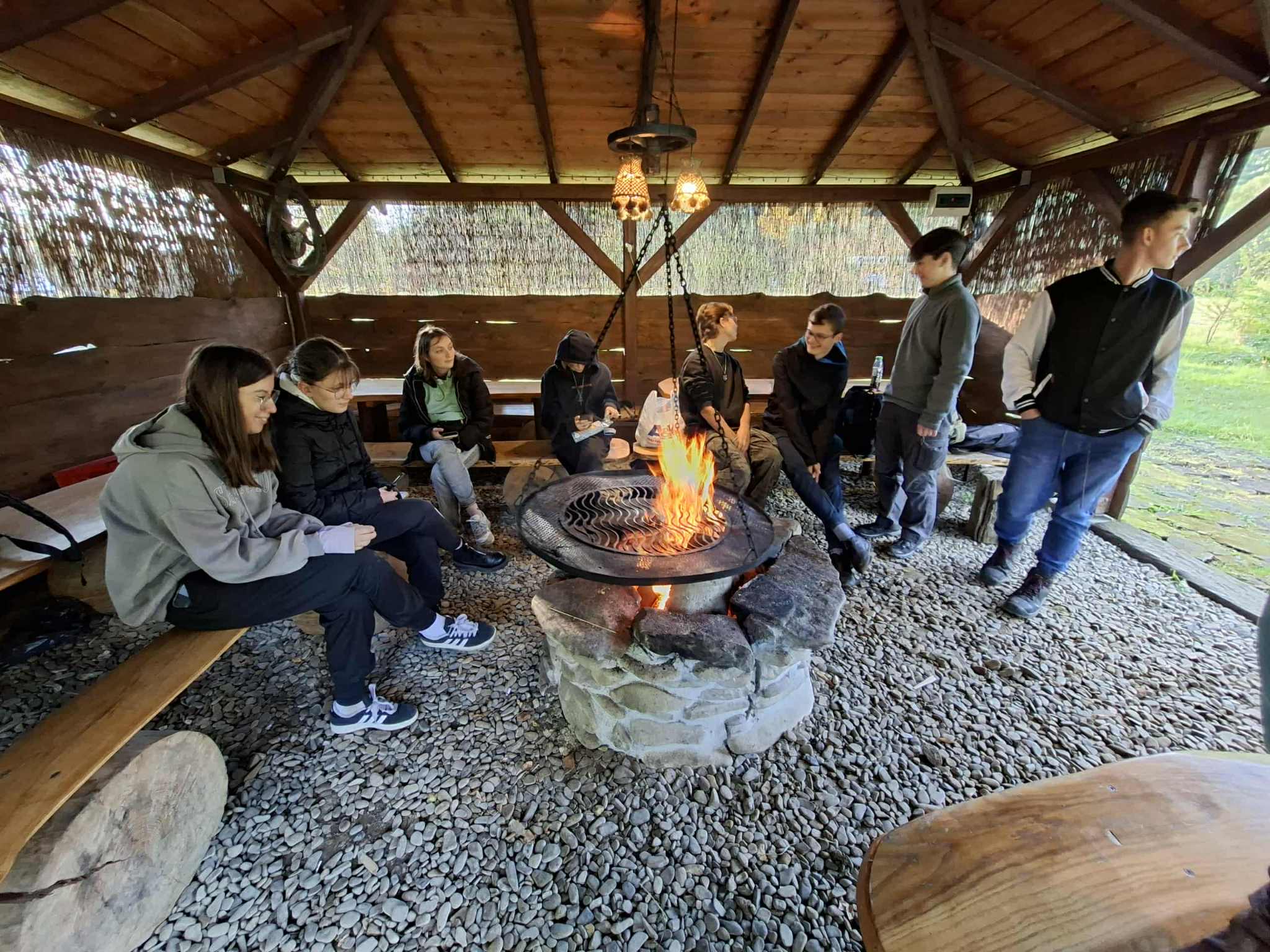 Po zdobyciu szczytu odbyło się integracyjne ognisko z pieczeniem kiełbasek i ziemniaków, które sprzyjało wspólnej zabawie i rozmowom.