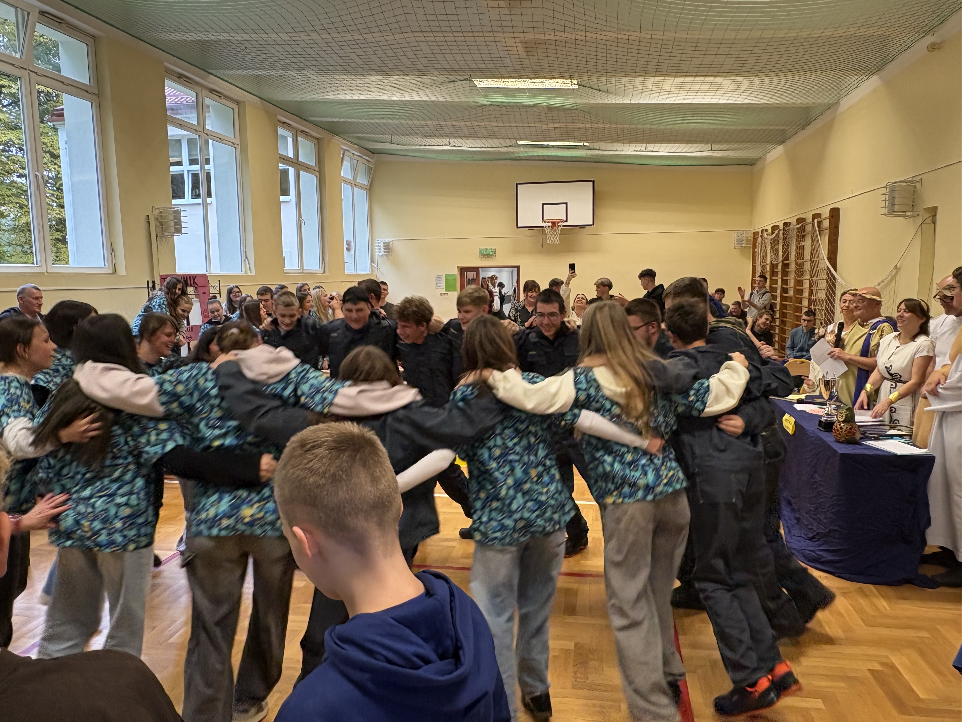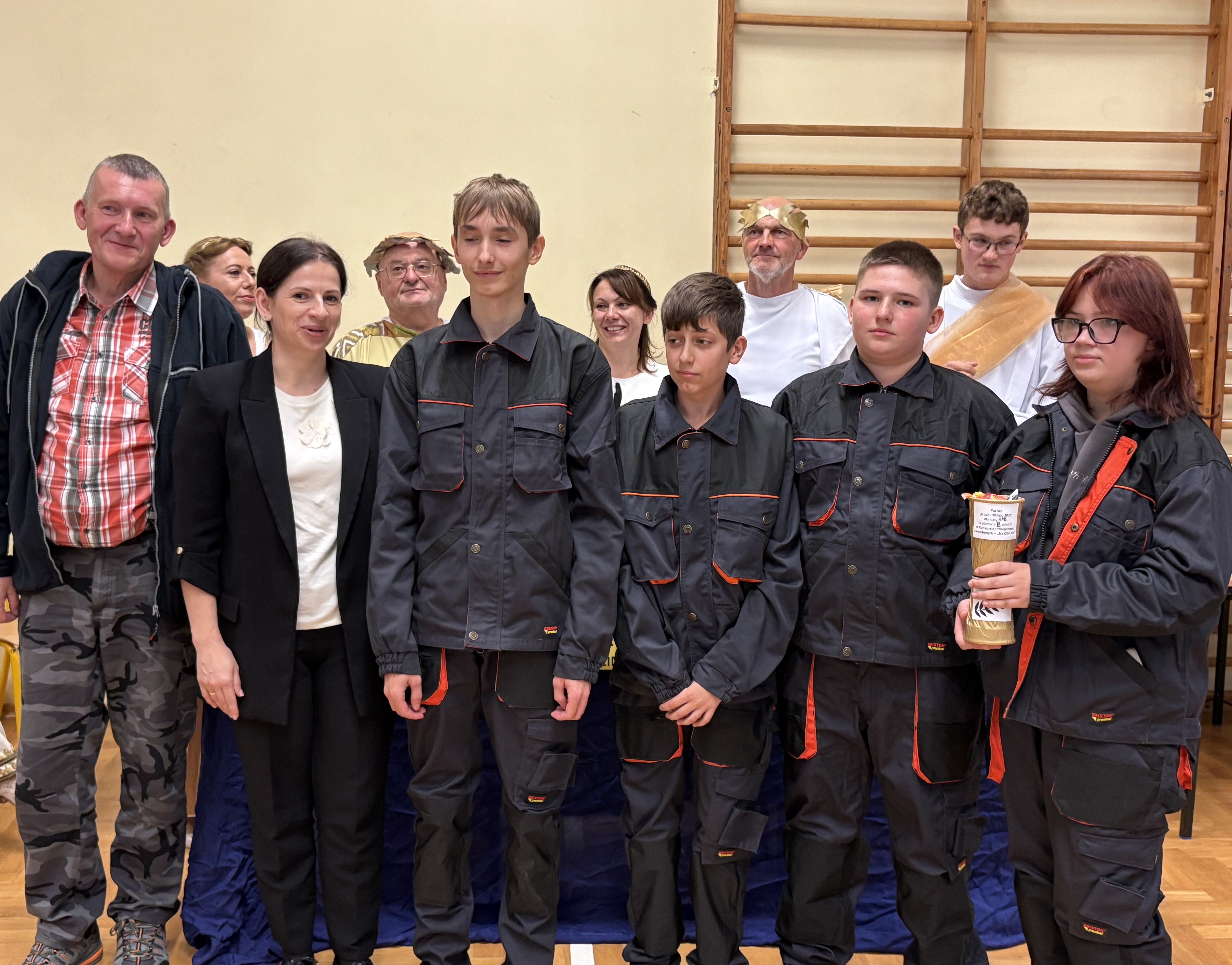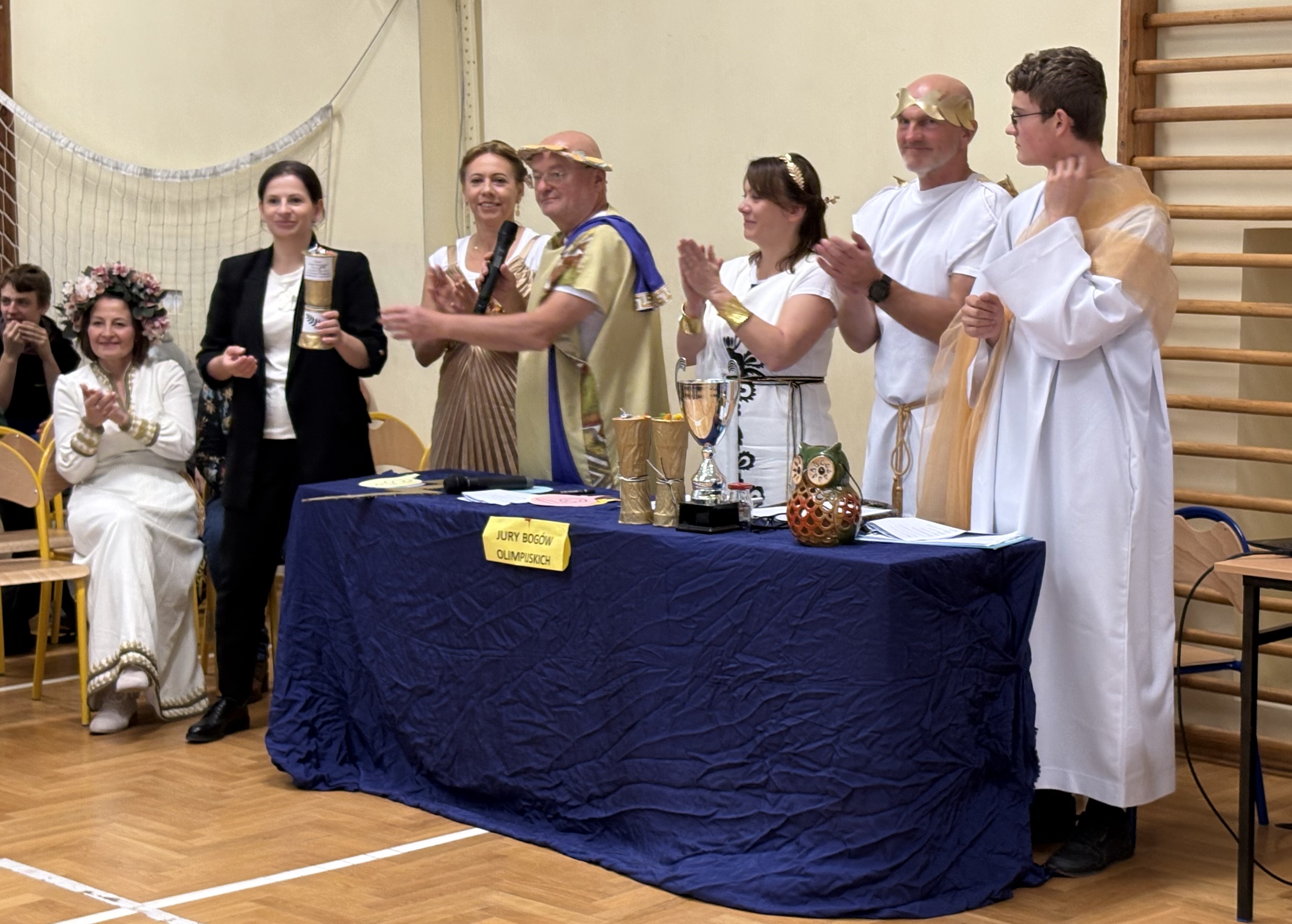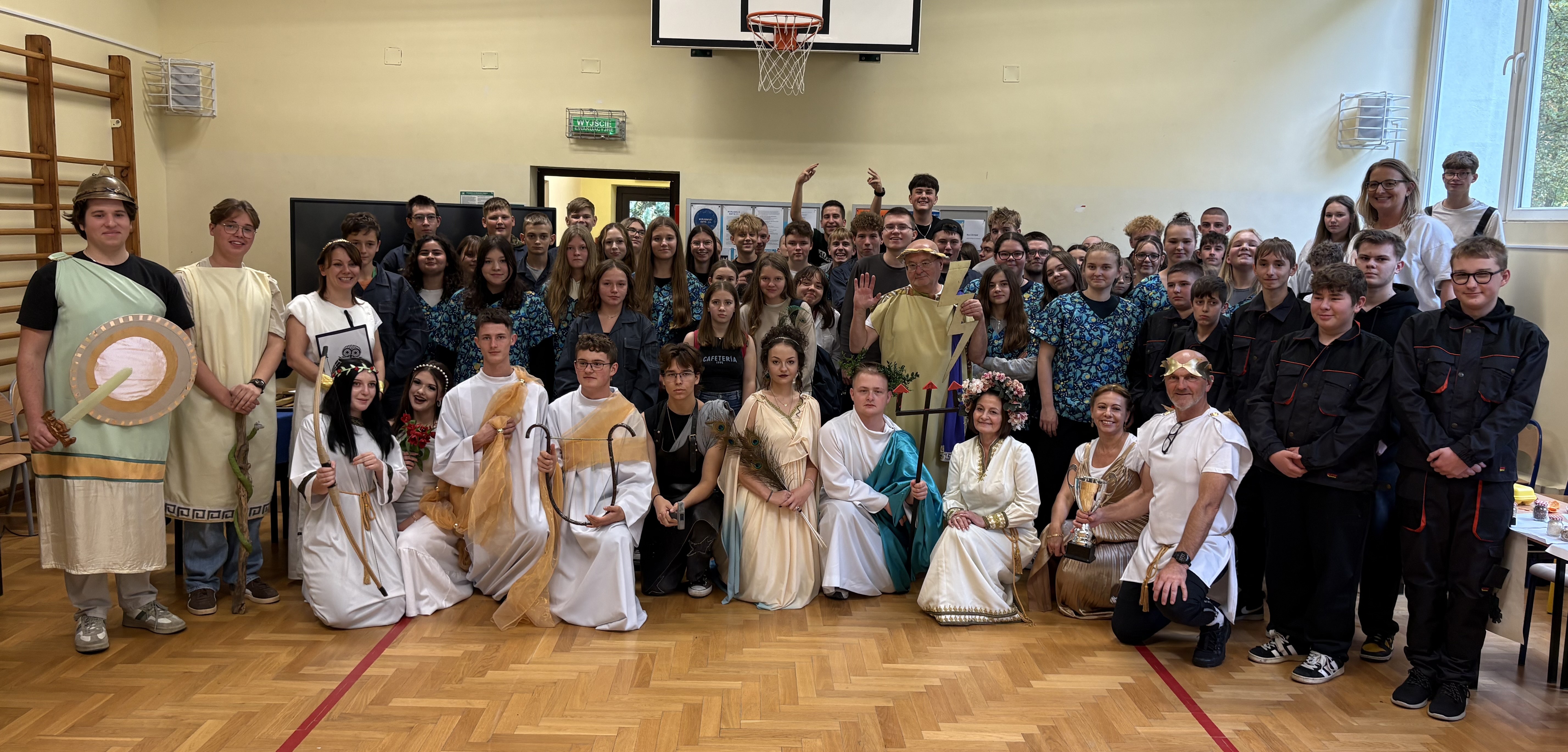 17 października – finałowy dzień obchodów – przeniósł nas w świat starożytnej Grecji. W sali gimnastycznej odbył się konkurs integracyjny klas I „Na Olimpie”, inspirowany mitologią i kulturą antyczną. Wydarzenie zapowiadało nasz kolejny projekt w ramach programu Erasmus+, który będzie realizowany w Grecji. Uczniowie i nauczyciele wcielili się w postaci z mitologii greckiej, prezentując dopracowane kostiumy i kreatywne zadania zawodowe powiązane z kierunkami kształcenia poszczególnych klas. Jury oceniało pomysłowość, wykonanie i zaangażowanie.