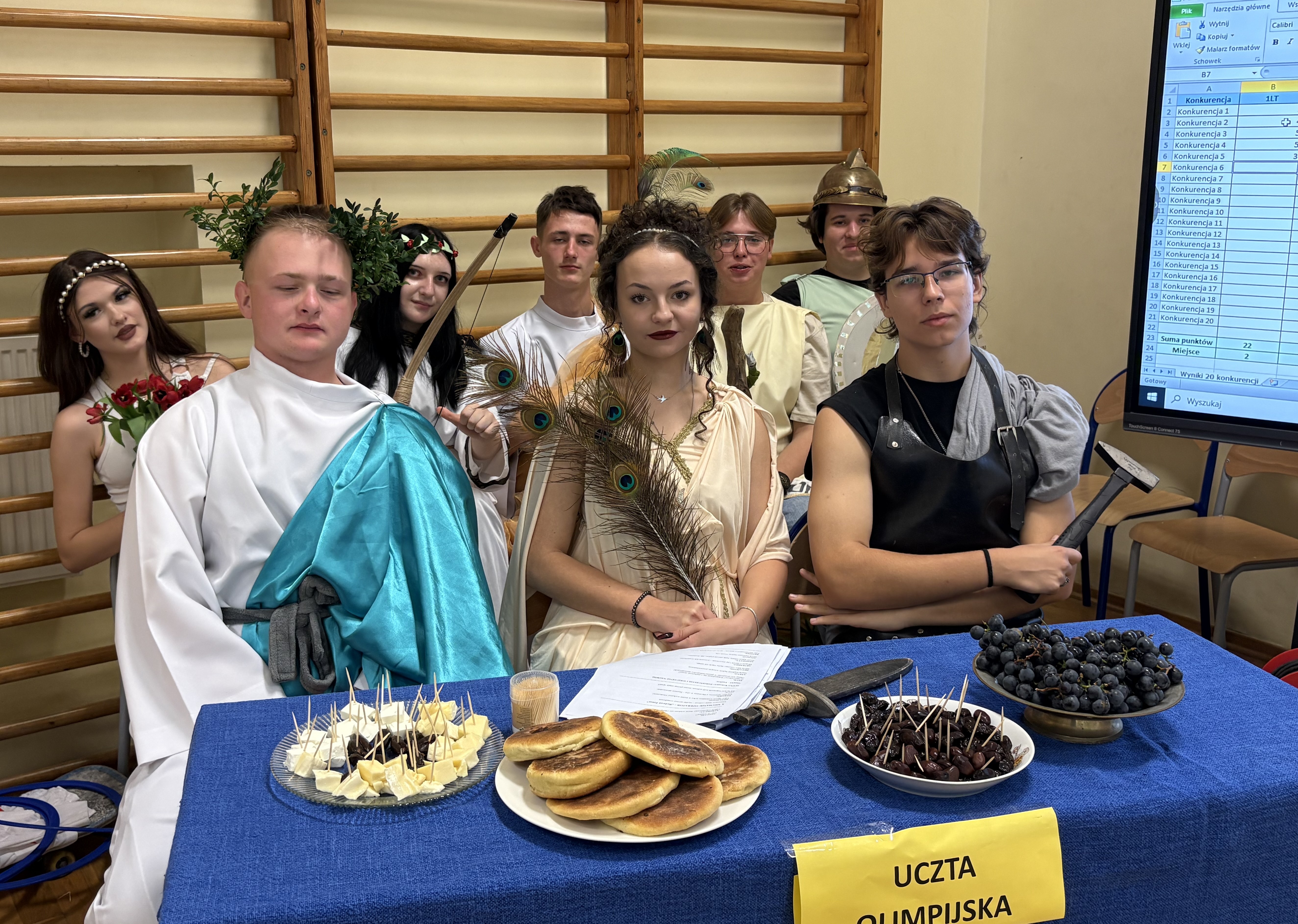 Nie zabrakło też atrakcji kulinarnych – można było spróbować dań inspirowanych kuchnią grecką – oraz aktywności ruchowych, takich jak wyścigi rydwanów czy zabawy integracyjne, które zbliżyły pierwszoklasistów i stworzyły okazję do wspólnej zabawy.