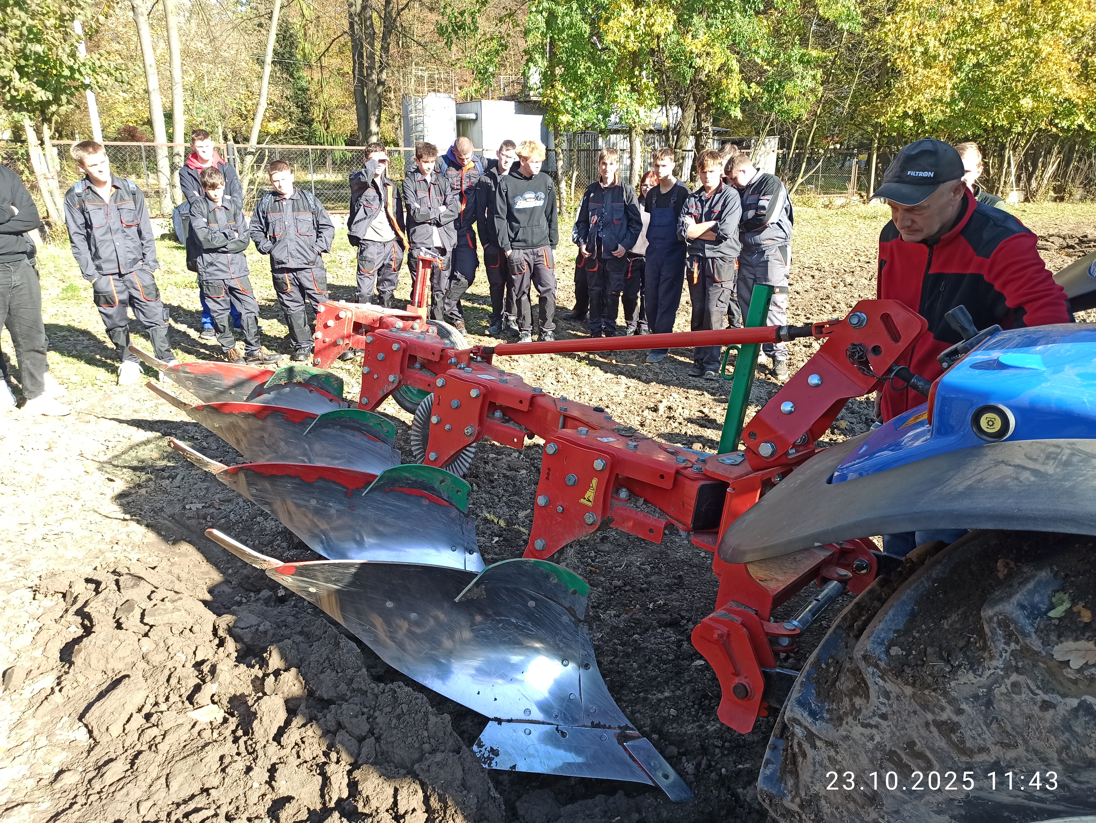 Podczas lekcji otwartej zaprezentowano kolejne etapy przygotowania pługa do orki siewnej – od sprawdzenia stanu technicznego maszyny, poprzez ustawienie parametrów roboczych, aż po właściwe wykonanie orki. Nauczyciel szczegółowo omówił zasady prawidłowego przygotowania gleby pod siew, zgodnie z dobrą praktyką rolniczą.