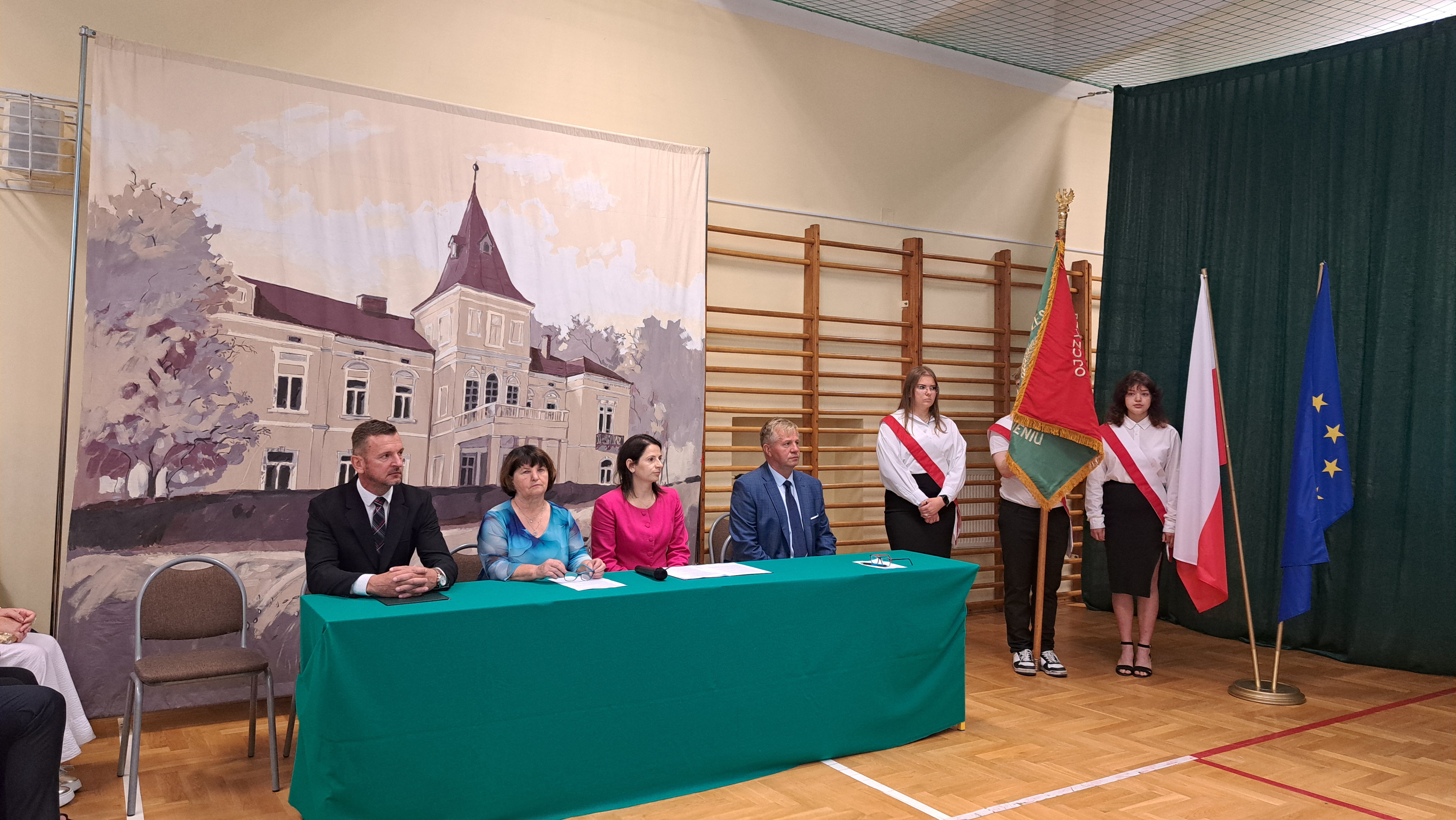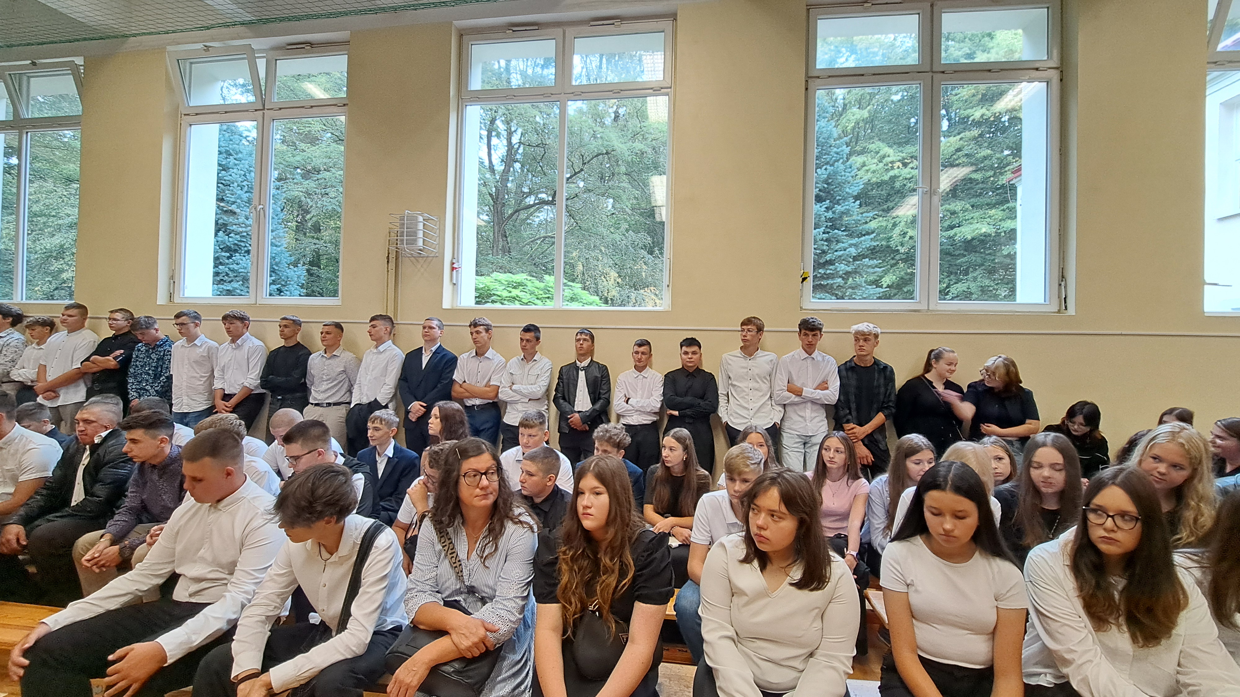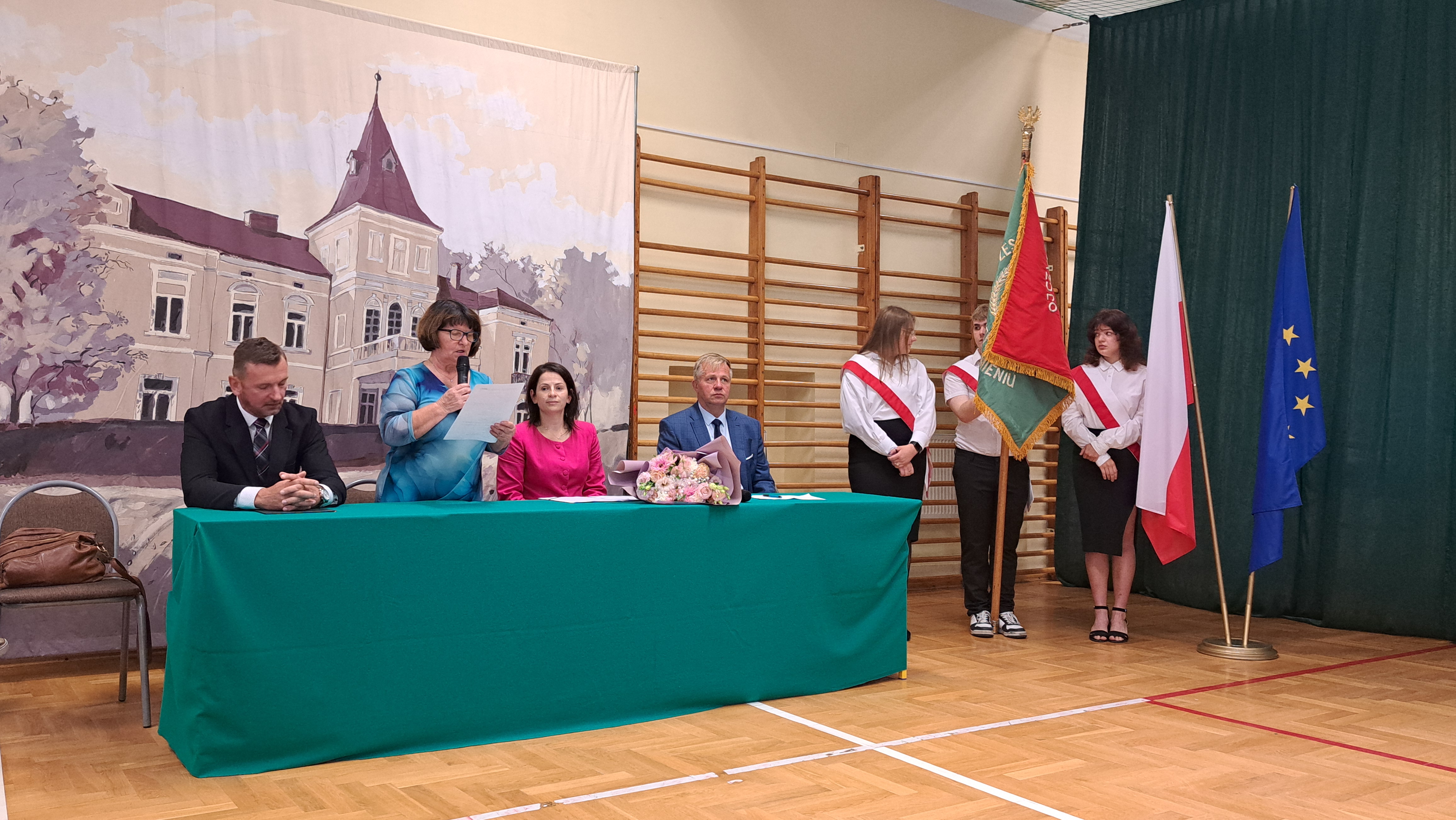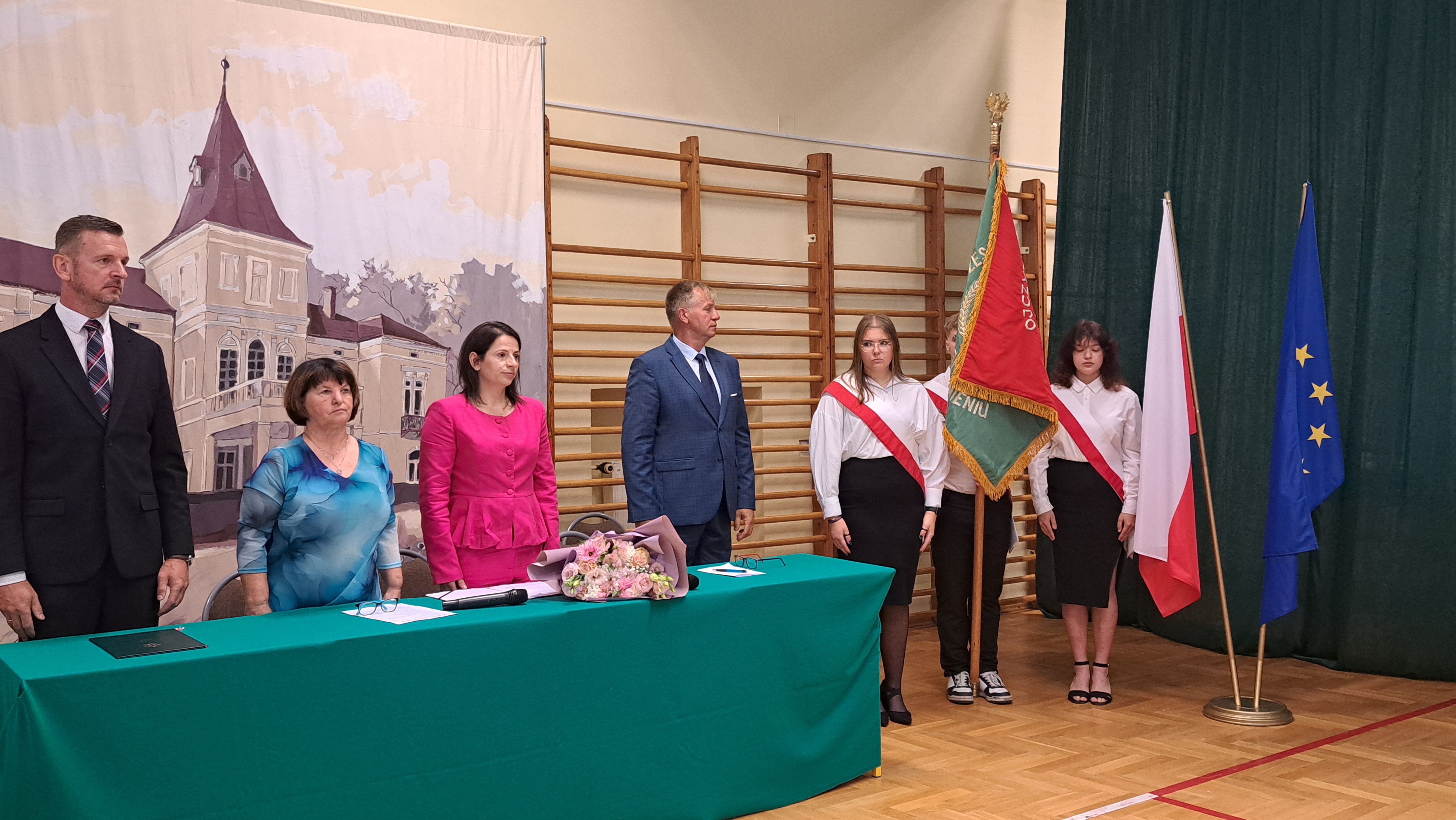 Pani dyrektor przypomniała także o ważnej rocznicy — 86. rocznicy wybuchu II wojny światowej. Oddała hołd wszystkim, którzy poświęcili życie w walce o wolność Ojczyzny. W kolejnych słowach przedstawiła nauczycieli, którzy będą prowadzili zajęcia w nowym roku szkolnym, a także wychowawców klas pierwszych, podkreślając ich szczególną rolę w procesie adaptacji nowych uczniów w szkolnej społeczności.