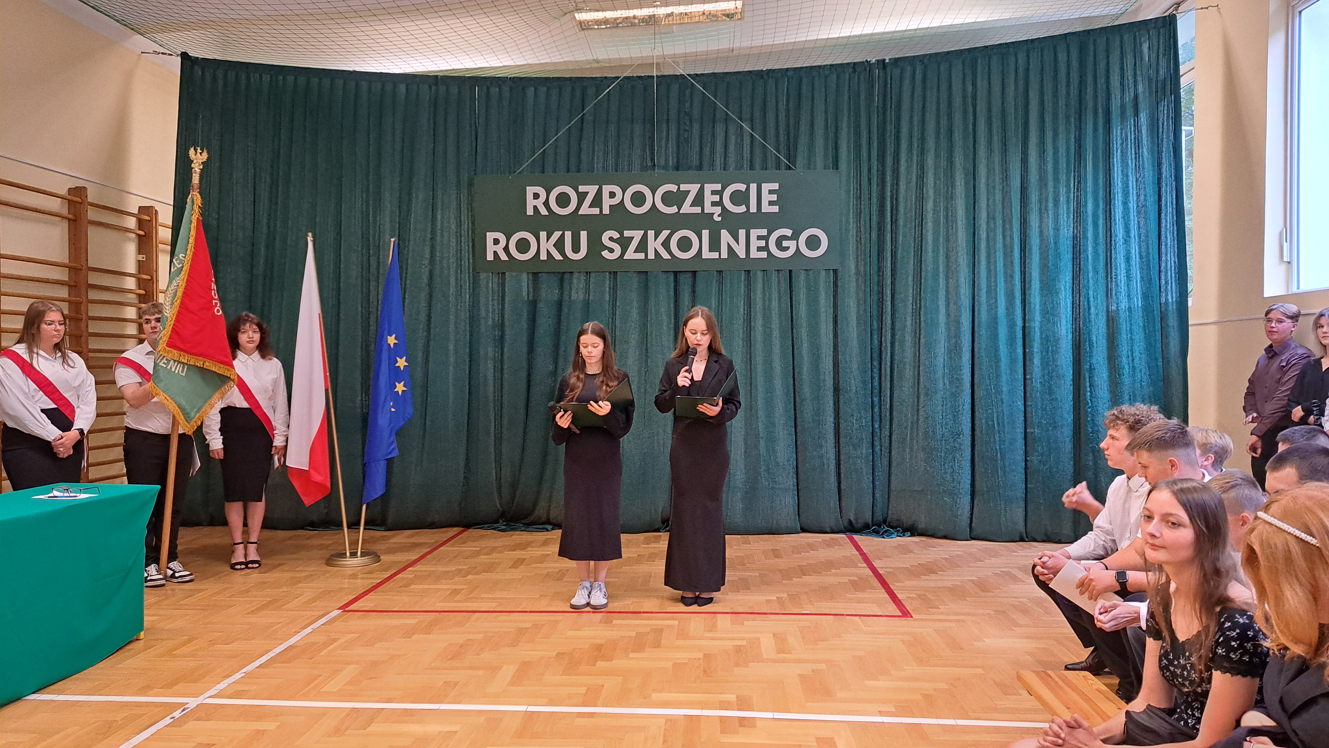 Uroczystość rozpoczęli przedstawiciele samorządu uczniowskiego, którzy w imieniu całej społeczności szkolnej serdecznie powitali nową panią dyrektor — Sabinę Sęk. Następnie to właśnie pani dyrektor poprowadziła dalszą część spotkania.
