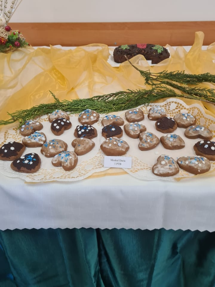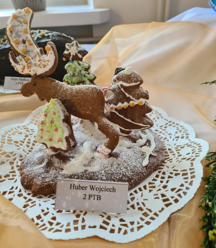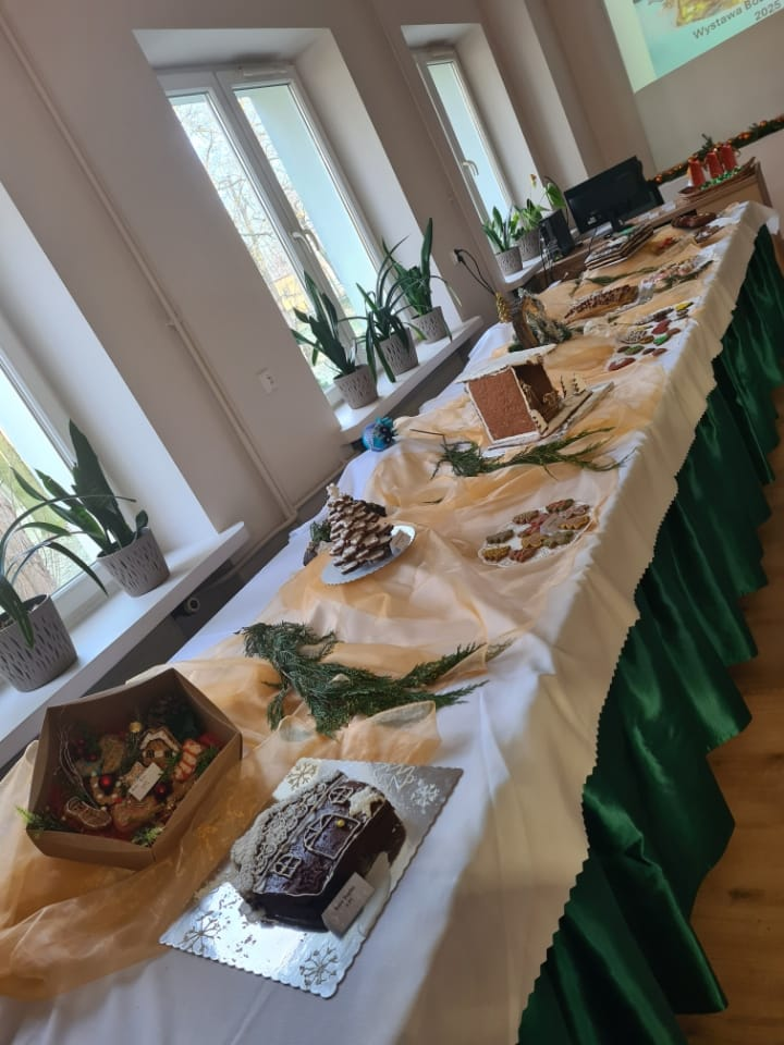 Na wystawie zaprezentowano 39 prac, w tym szopki z ciasta piernikowego, pierniki i pierniczki o zróżnicowanych kształtach, choinki oraz inne dekoracje bożonarodzeniowe. Uczniowie wykazali się dobrą znajomością technik przygotowania ciasta piernikowego, lukru oraz polewy czekoladowej, a także dbałością o estetykę wykonania.