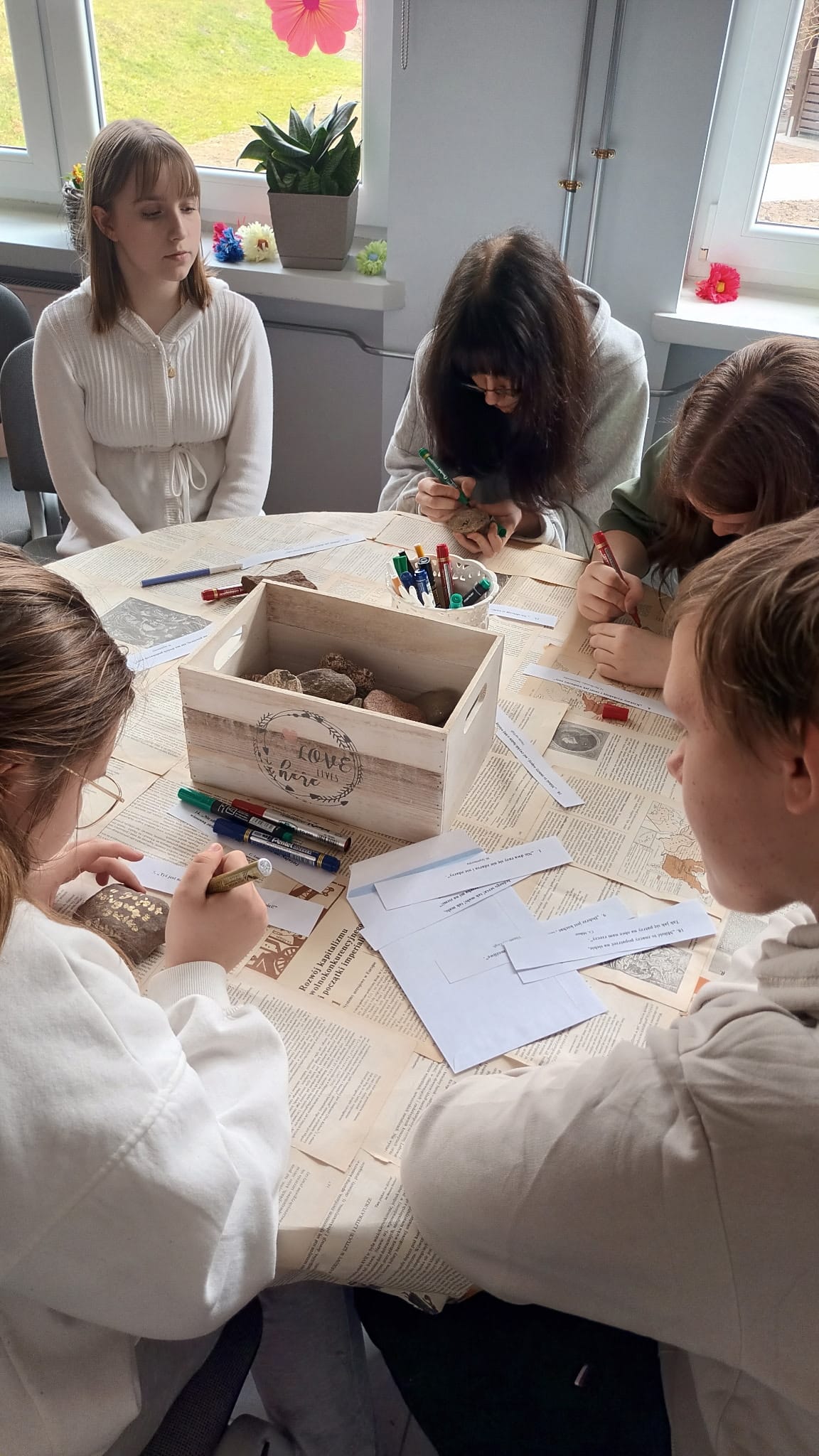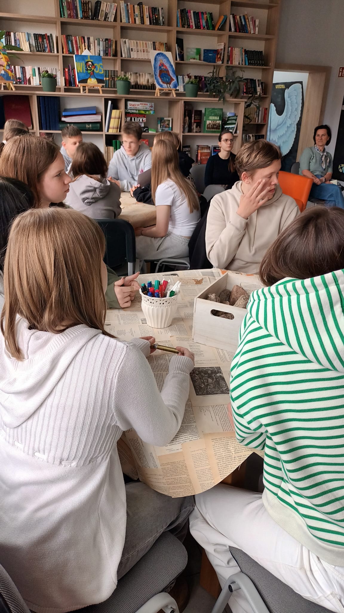 Po części artystycznej odbyły się warsztaty „Poetyckie kamyczki”, w czasie których uczniowie mogli wykazać się kreatywnością.
