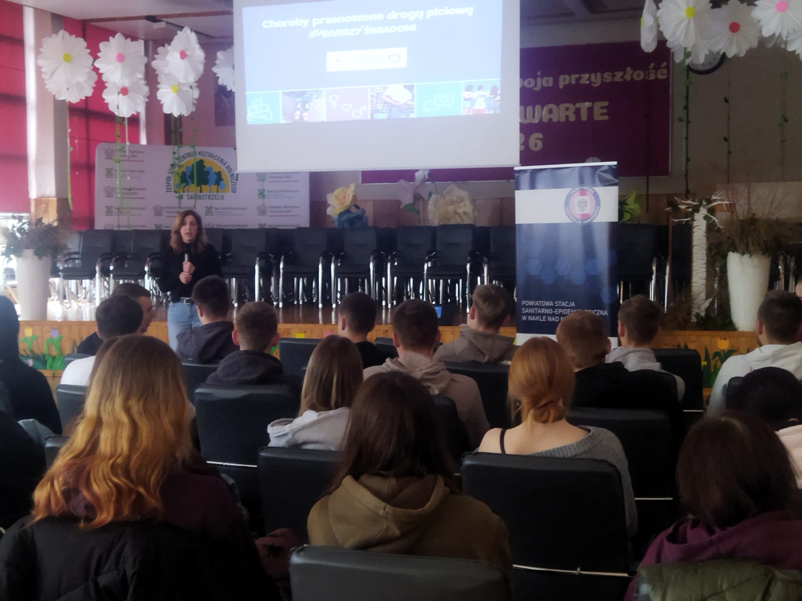 Program został zrealizowany we współpracy z Powiatową Stacją Sanitarno-Epidemiologiczną w Nakle nad Notecią. Spotkanie poprowadziła pani Patrycja Machoń, która w przystępny i merytoryczny sposób przybliżyła młodzieży trudną, ale niezwykle istotną tematykę chorób przenoszonych drogą płciową (STI).