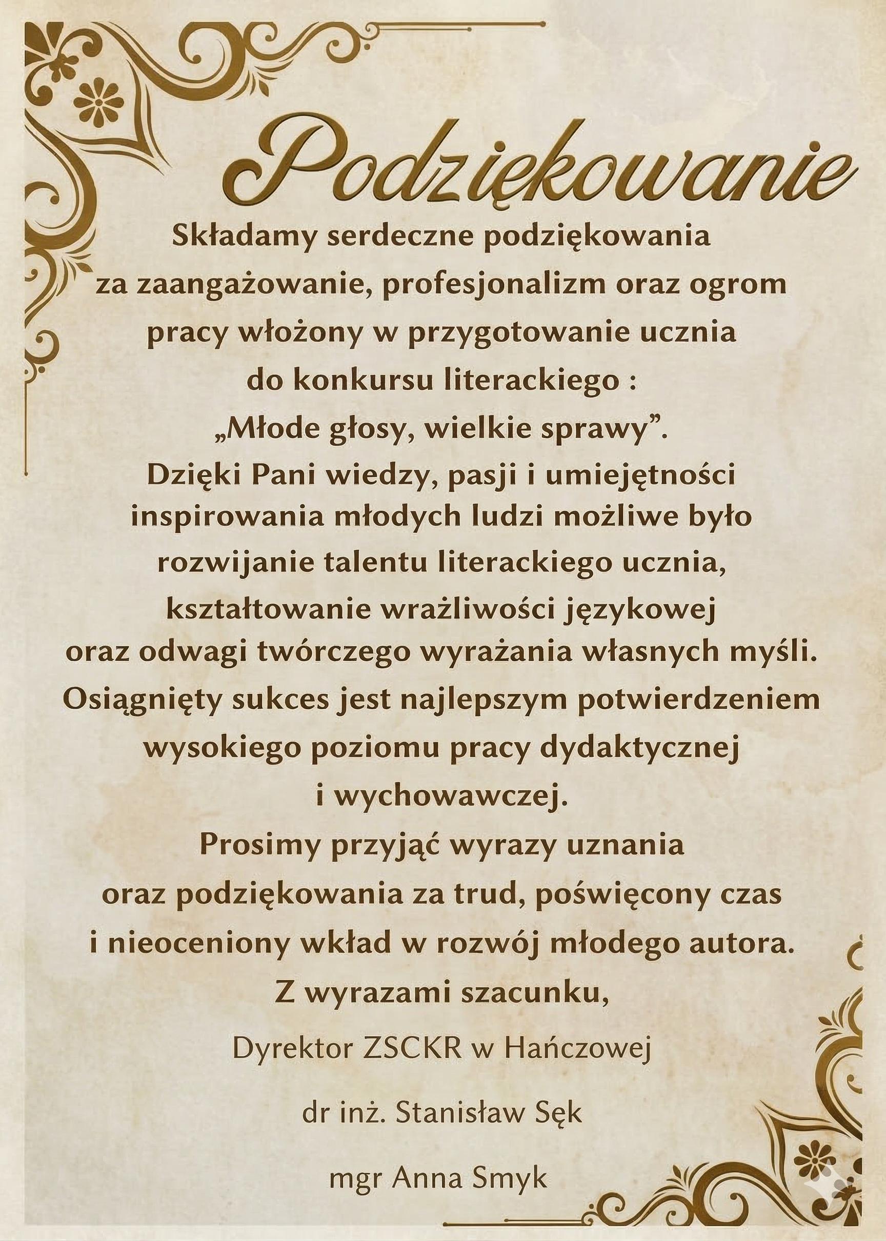 Serdecznie gratulujemy Roksanie sukcesu i życzymy kolejnych wybitnych osiągnięć w rozwijaniu literackiej pasji!