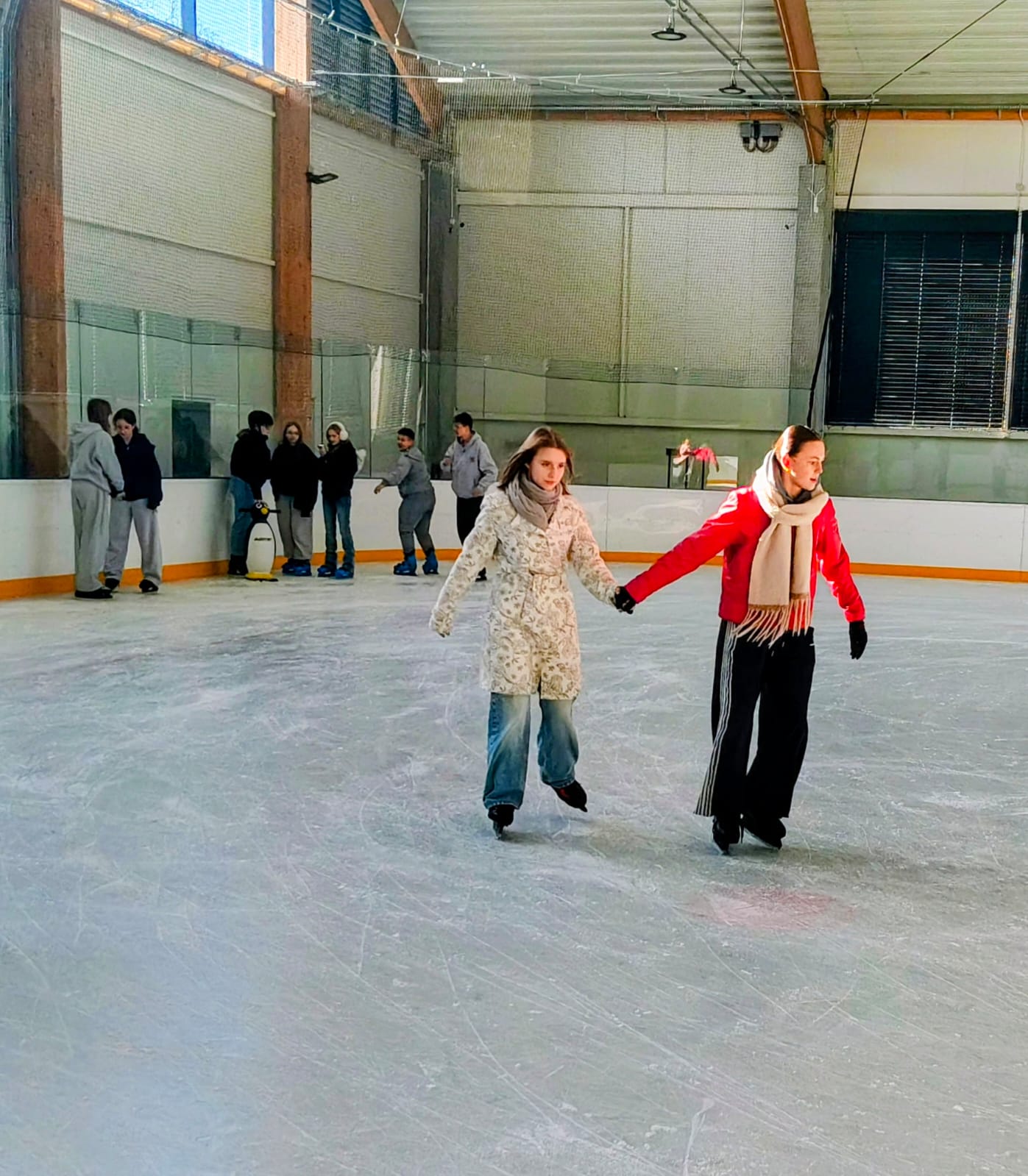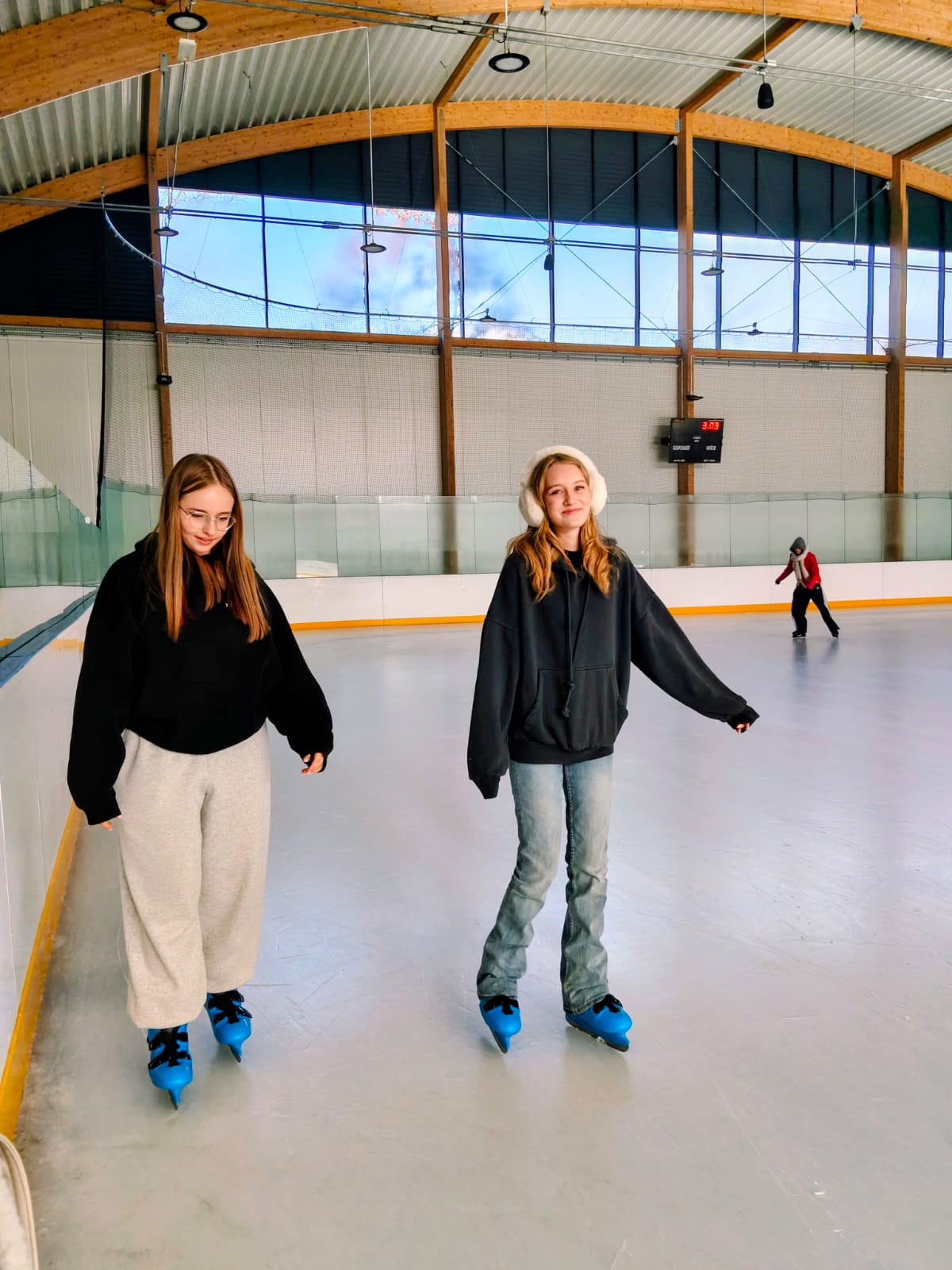 Dla wielu osób była to pierwsza próba jazdy na łyżwach, dlatego nie zabrakło emocji, śmiechu i wzajemnej pomocy. Pierwsze, niepewne kroki szybko zamieniały się w coraz odważniejsze przejazdy po tafli lodu. Uczniowie motywowali się nawzajem, podawali sobie ręce przy upadkach i razem cieszyli się z każdego małego sukcesu. Integracja w praktyce – poprzez ruch, zabawę i współpracę.