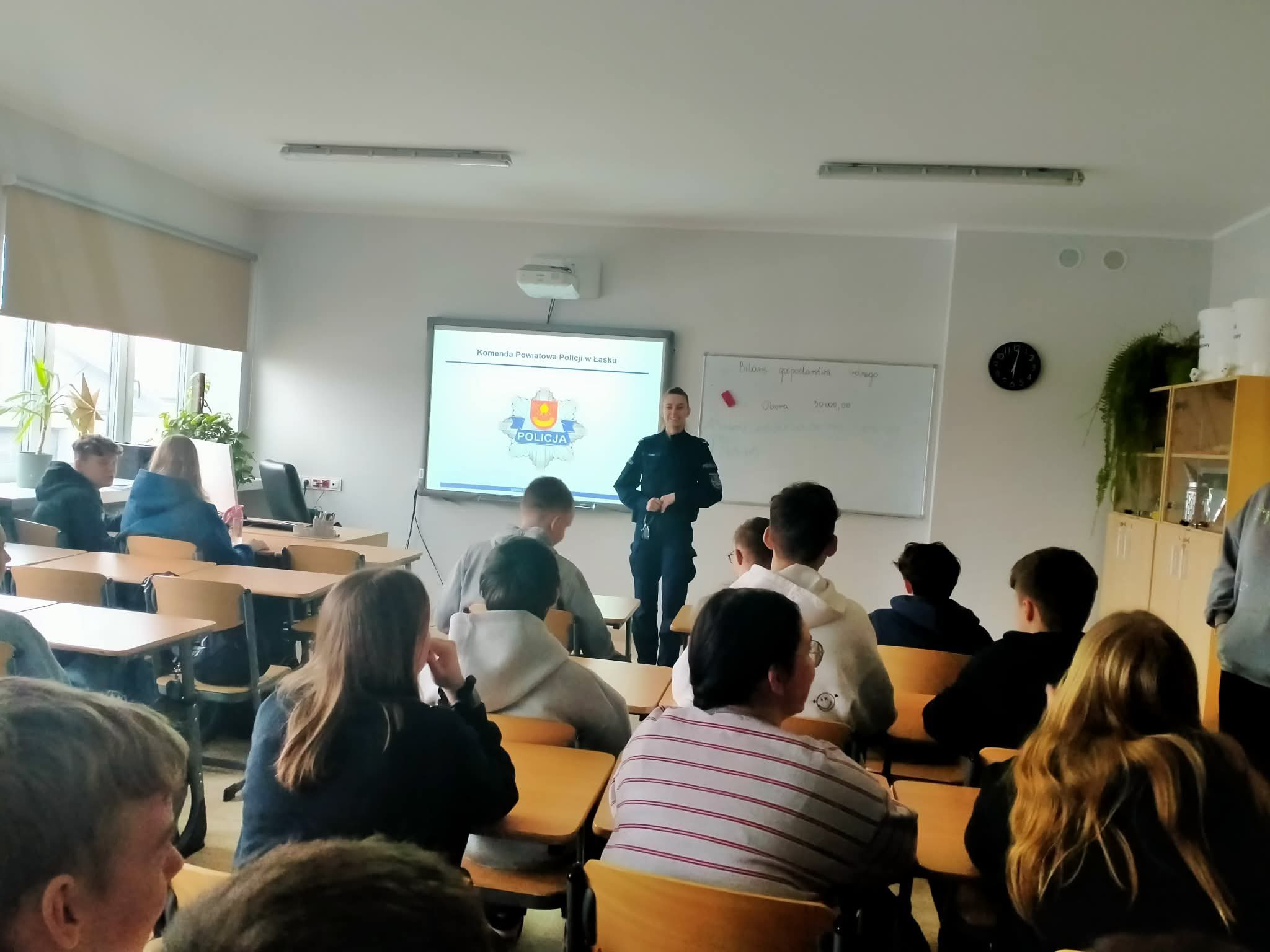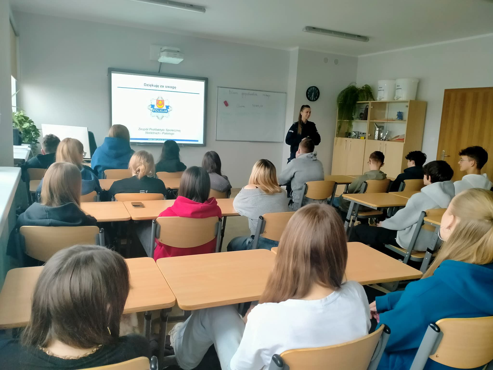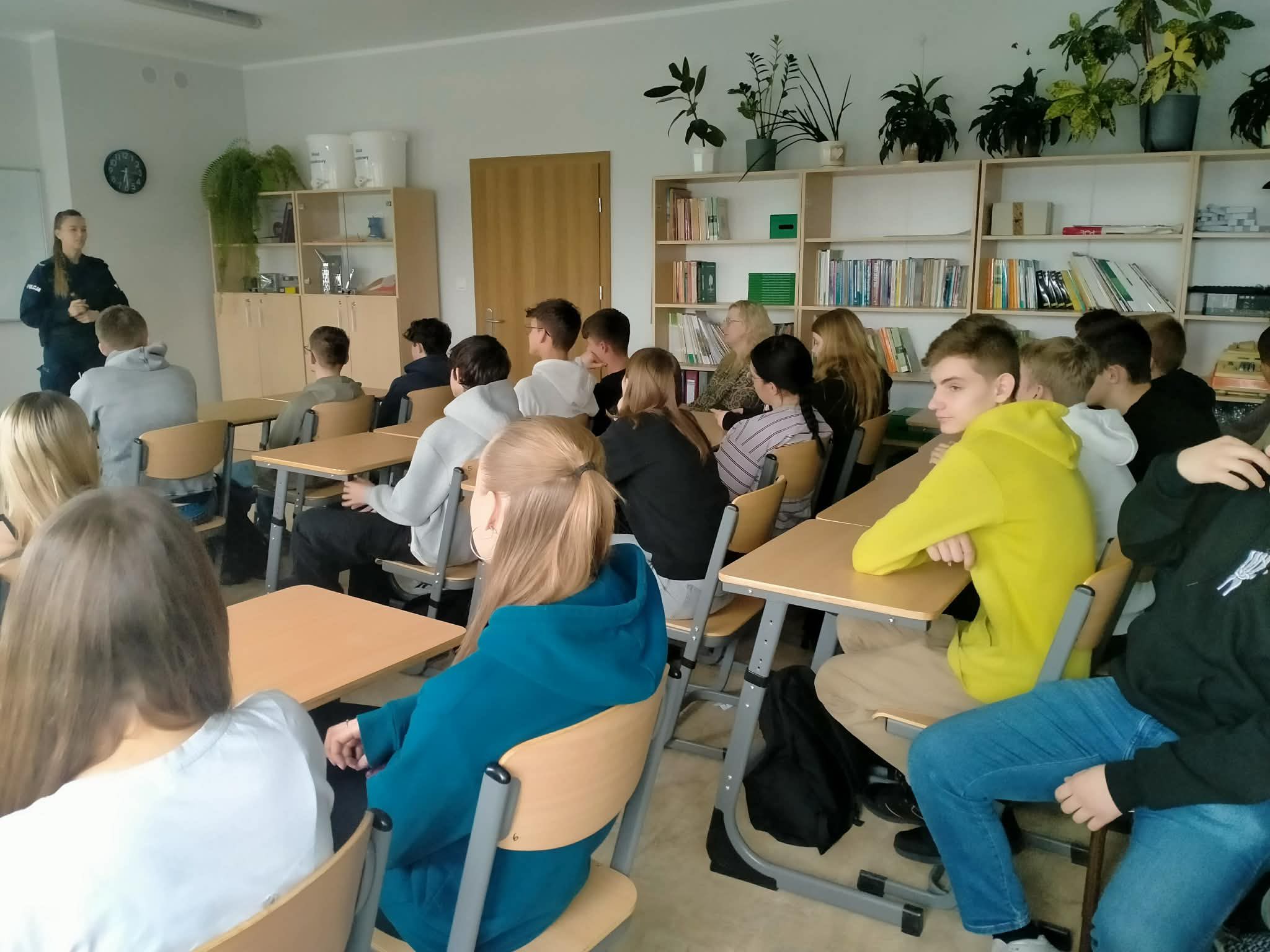W dniu dzisiejszym w naszej szkole odbyła się pogadanka profilaktyczna przeprowadzona przez panią sierżant Sylwię Kowalczyk. W spotkaniu uczestniczyli uczniowie klas pierwszych.