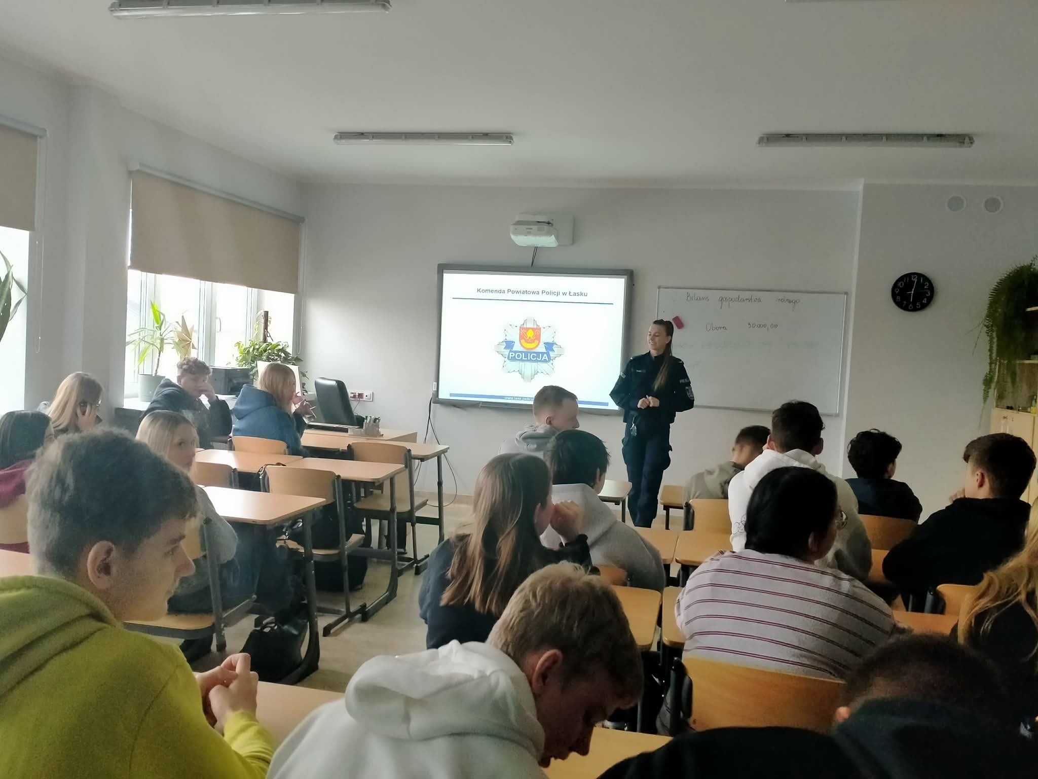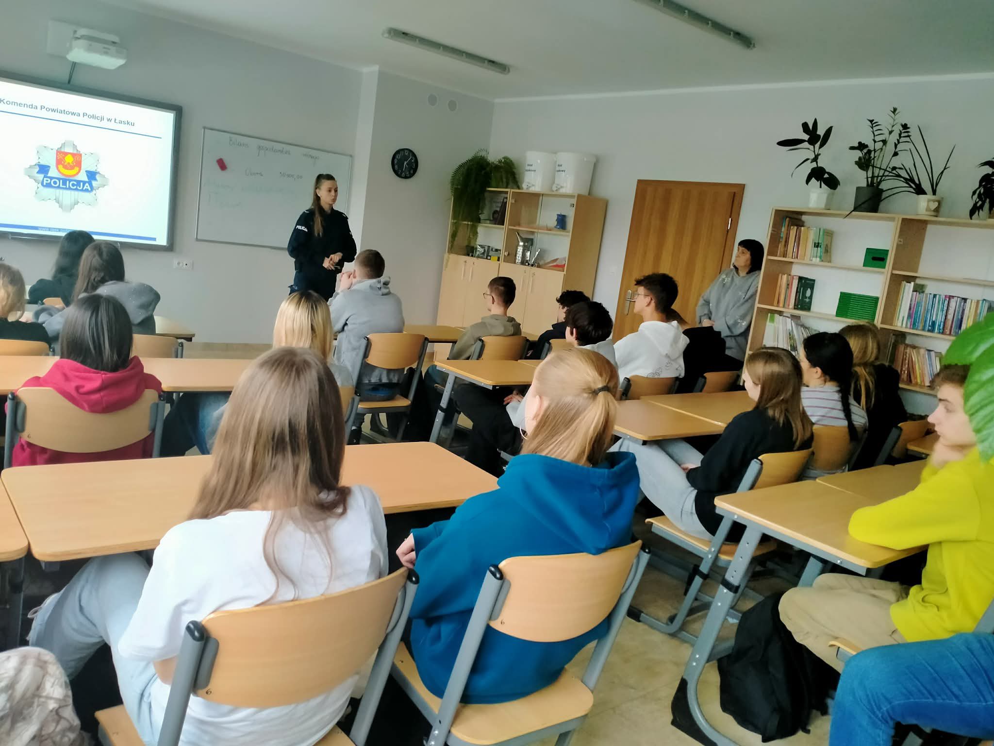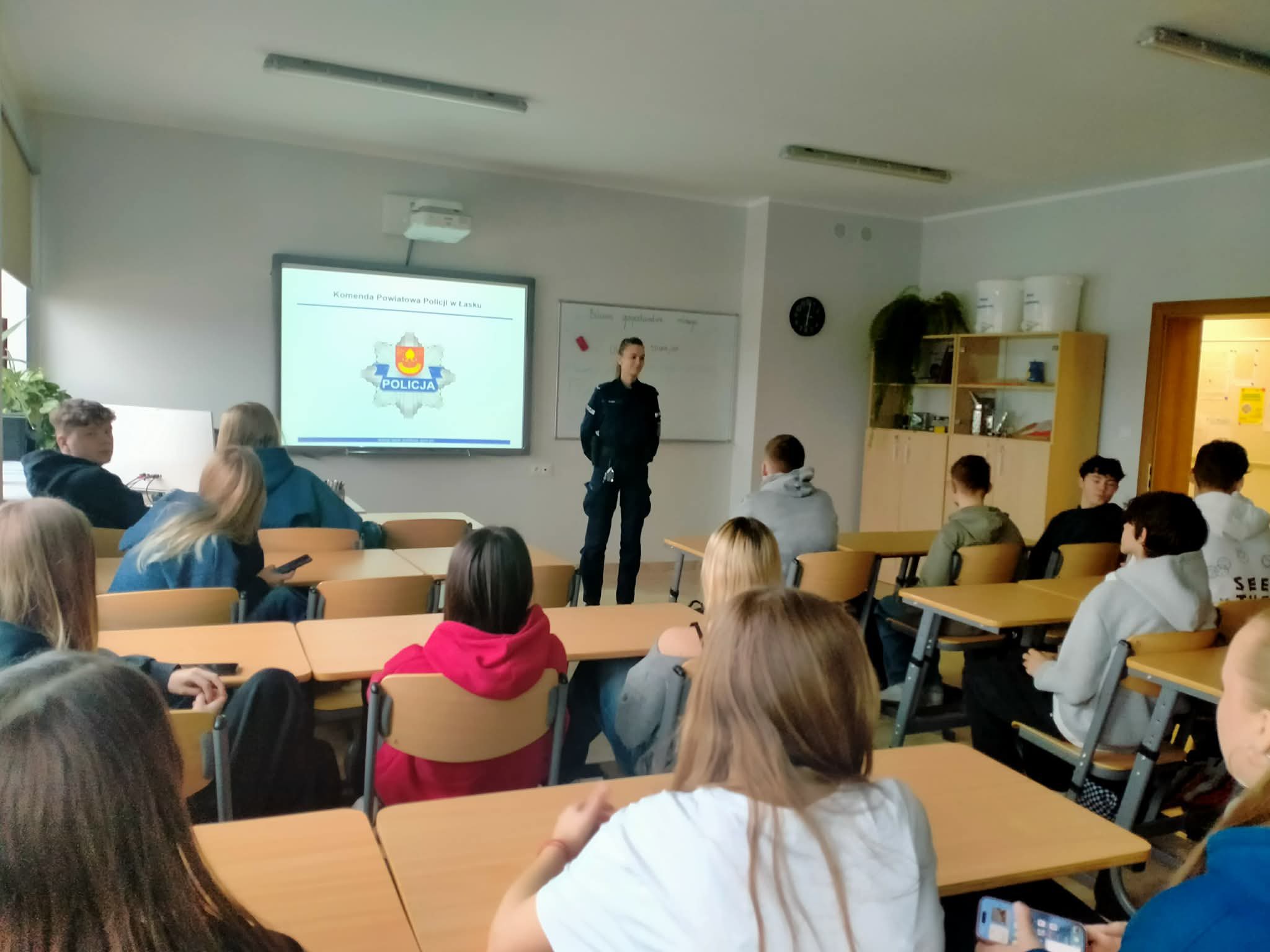 W dniu dzisiejszym w naszej szkole odbyła się pogadanka profilaktyczna przeprowadzona przez panią sierżant Sylwię Kowalczyk. W spotkaniu uczestniczyli uczniowie klas pierwszych.