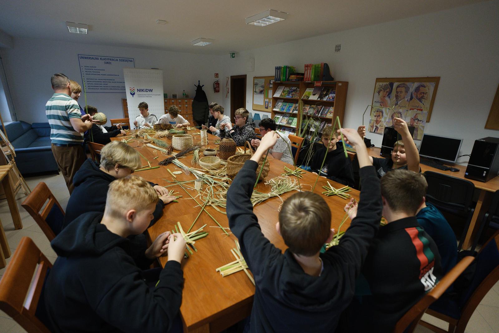 Podczas zajęć uczniowie poznali techniki wyplatania koszyków i ozdób z naturalnych materiałów: oczeretu jeziornego, situ, tataraku, pałki wodnej i traw. Każda praca była wyjątkowa – inspirowana naturą i kreatywnością uczestników.