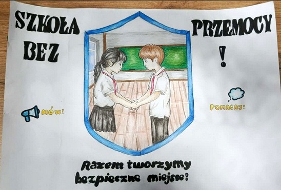 Pedagog szkolny zorganizował także konkurs plastyczny dotyczący zapobiegania przemocy w szkole. Spośród zgłoszonych prac jury w składzie: Sylwia Buraczewska, Aneta Kisiel oraz Aleksandra Durtan wyłoniło zwycięzcę.