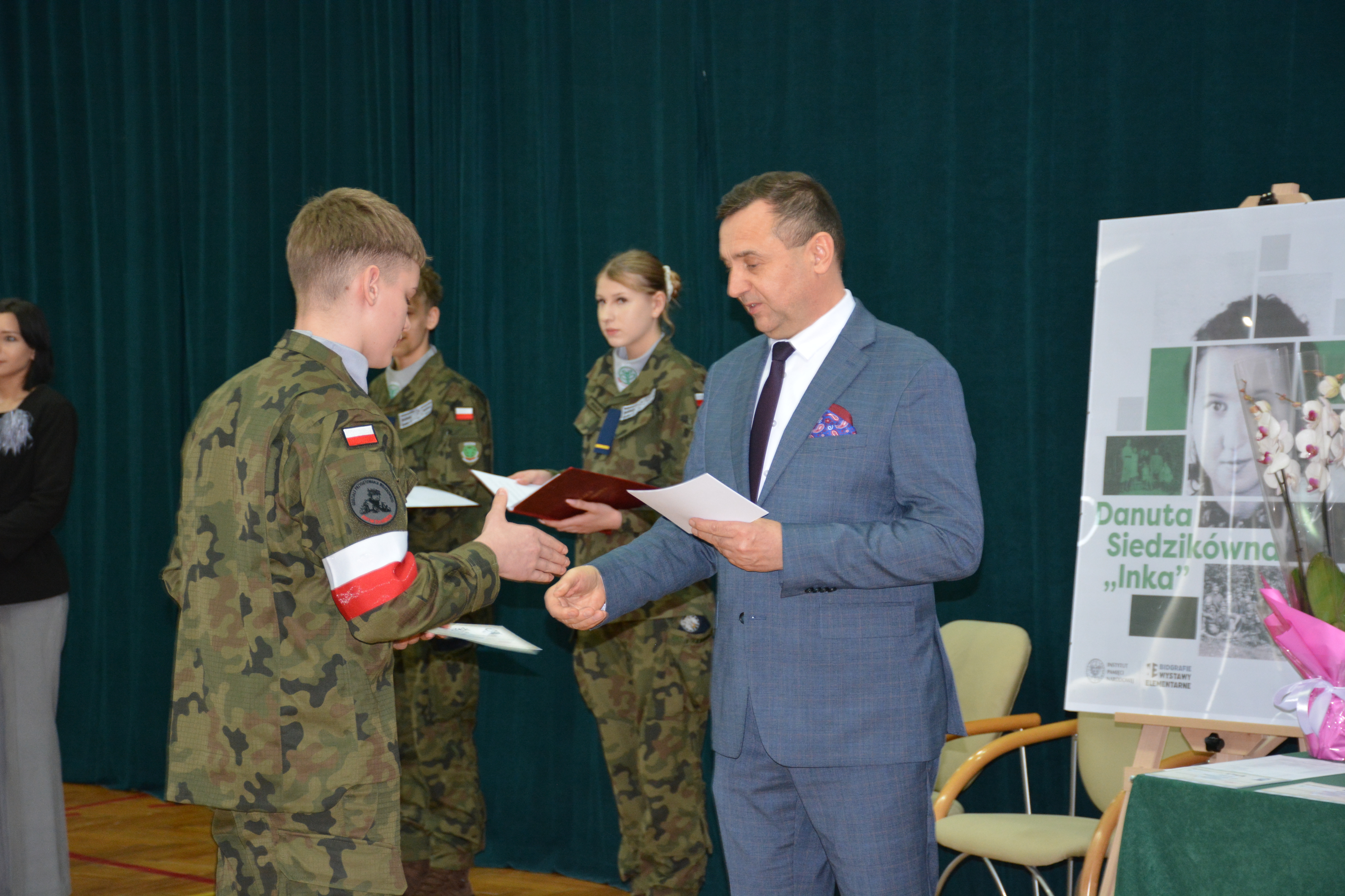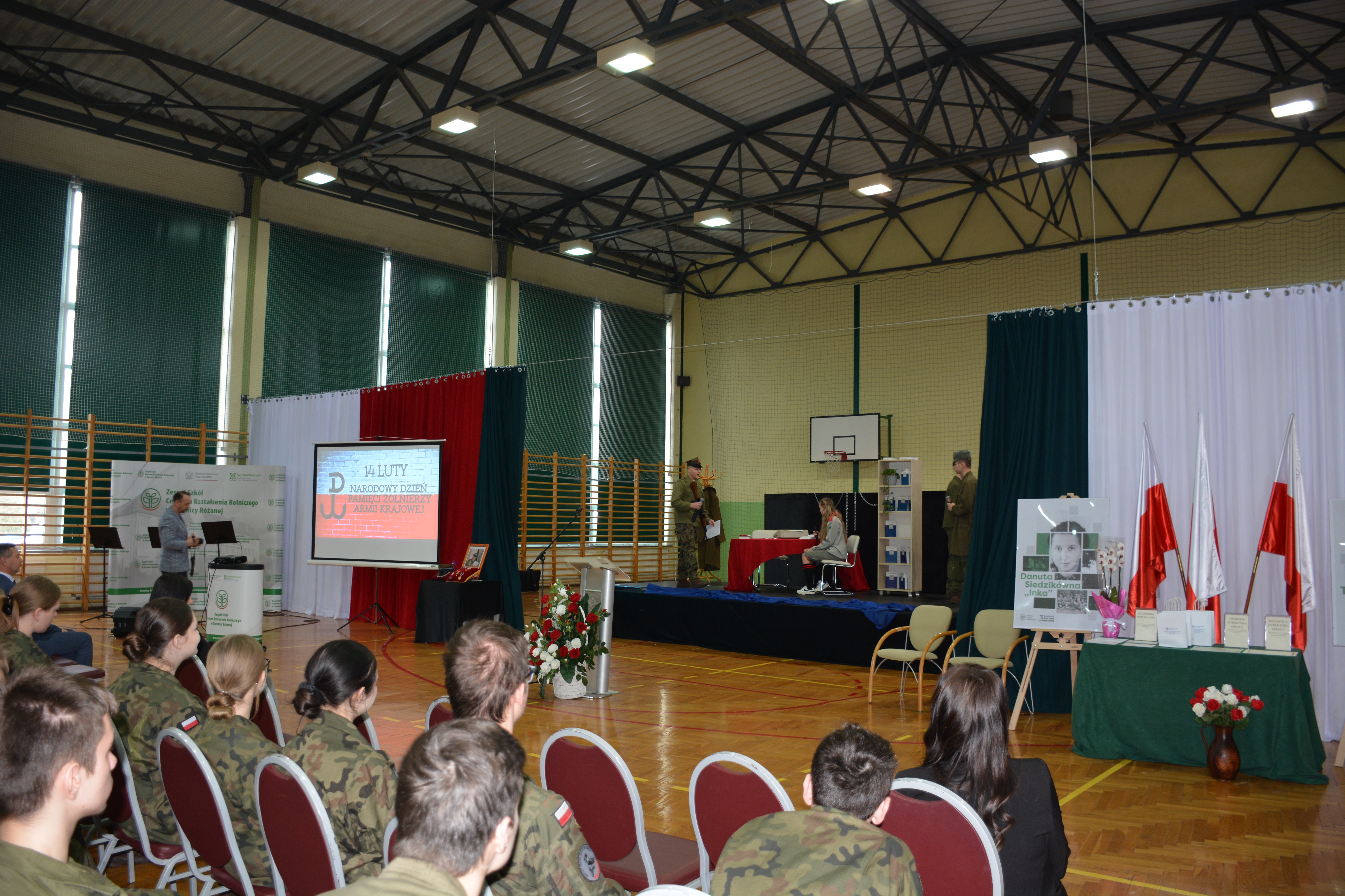Następnie uczniowie Zespołu Szkół Centrum Kształcenia Rolniczego w Siennicy Różanej, przygotowani przez Panią Agnieszkę Rosochacką i Pana pułkownika Sławomira Kułagę, zaprezentowali montaż słowno-muzyczny poświęcony żołnierzom podziemia niepodległościowego. Głównym bohaterem przedstawienia była Danuta Siedzikówna, ps. „Inka” (1928–1946), sanitariuszka i łączniczka 5. Wileńskiej Brygady AK.