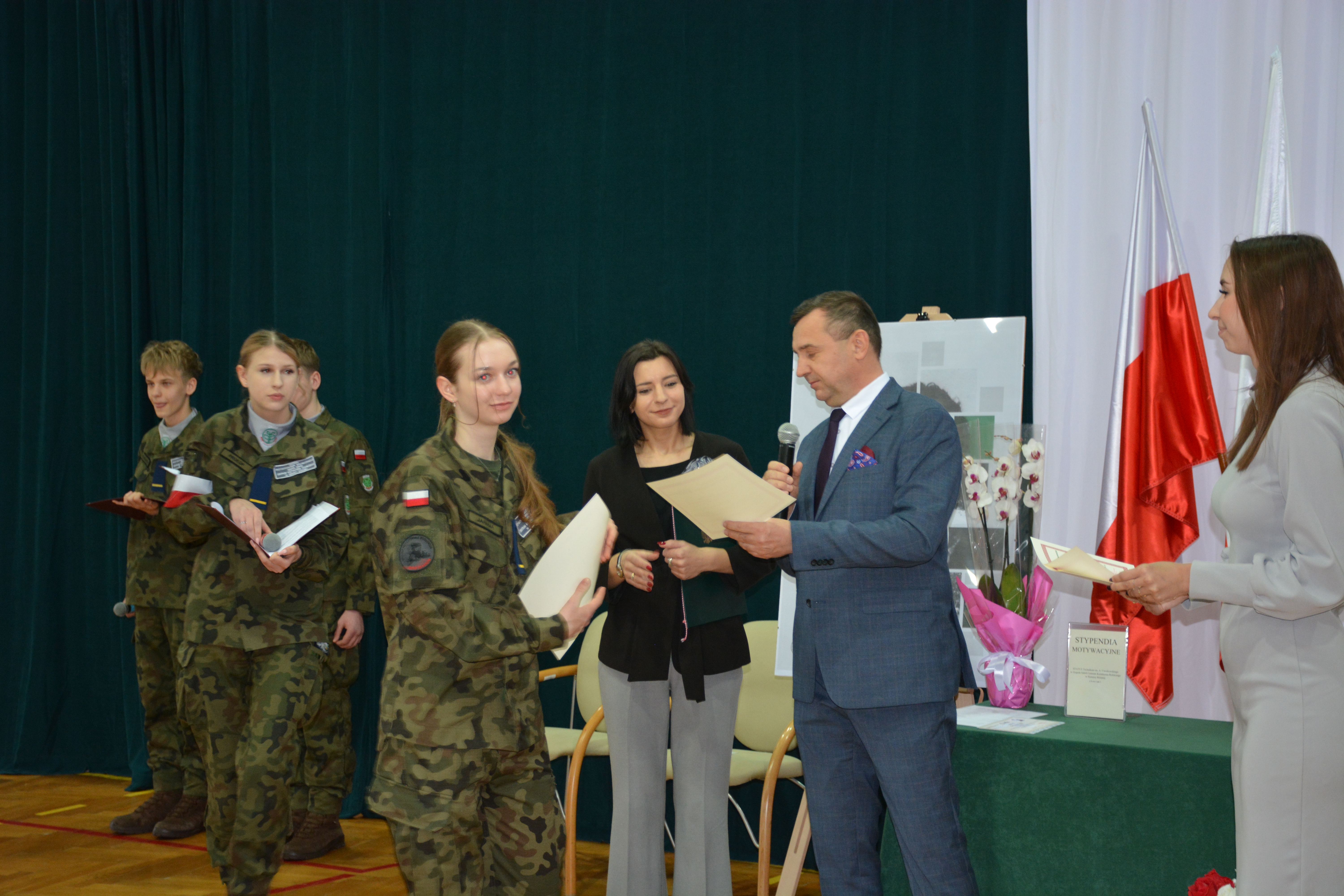 Na koniec spotkania Dyrektor Zespołu Szkół Centrum Kształcenia Rolniczego w Siennicy Różanej Pan Mirosław Jurkowski wraz z Panią Dyrektor Justyną Klejna publicznie nagrodzili najlepszych uczniów, wręczając stypendia motywacyjne, nagrody i pochwały dyrektora szkoły.