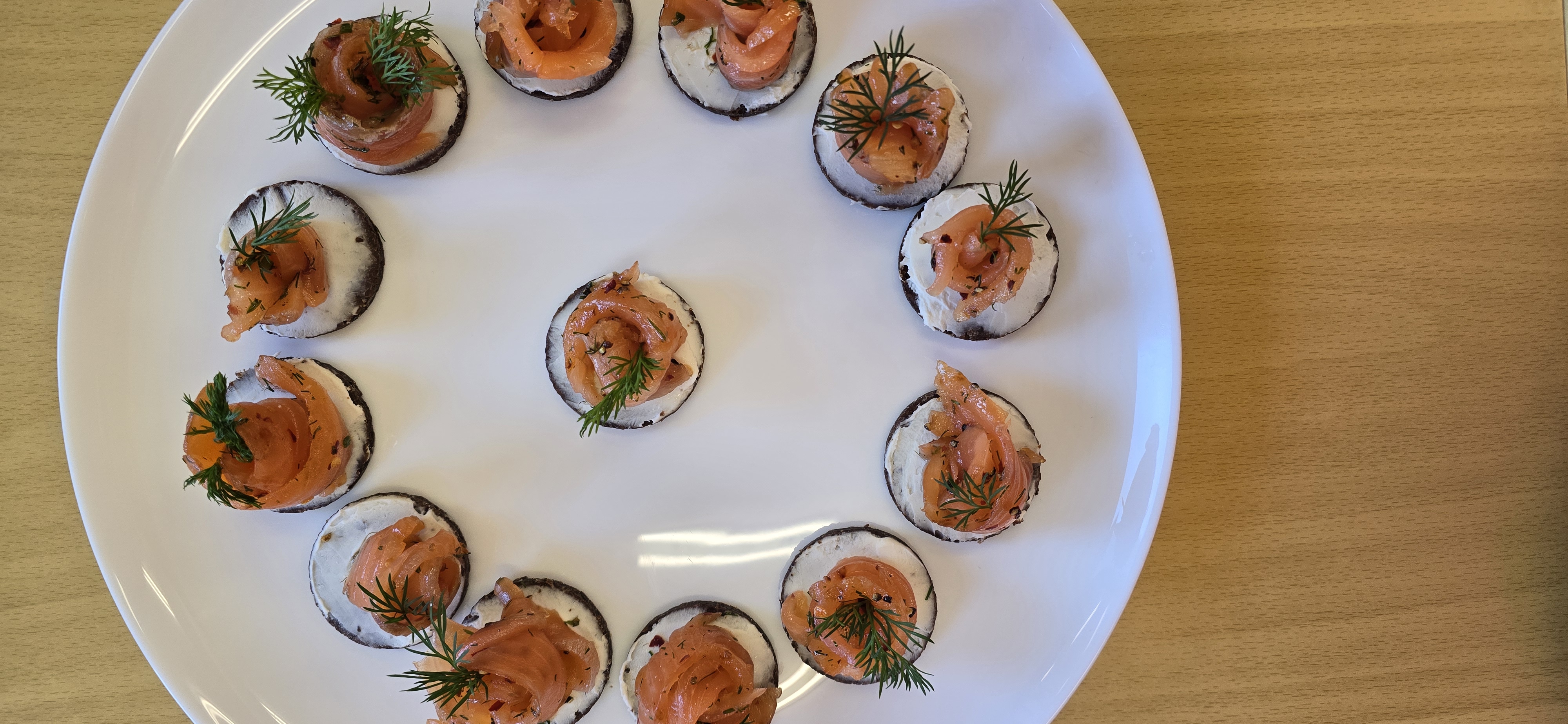 z oliwek, oliwę pietruszkową, tatar z marynowanego łososia oraz roladki paprykowe.
