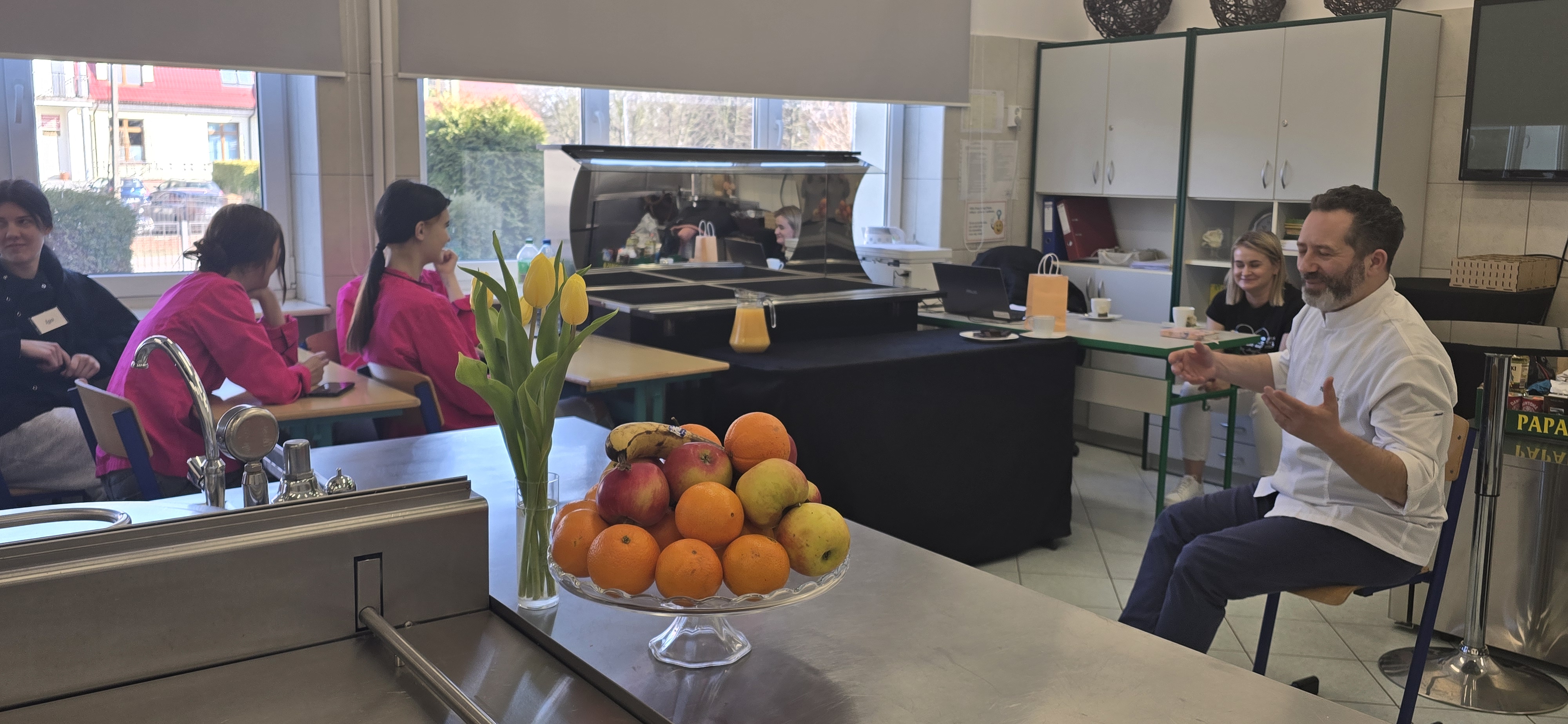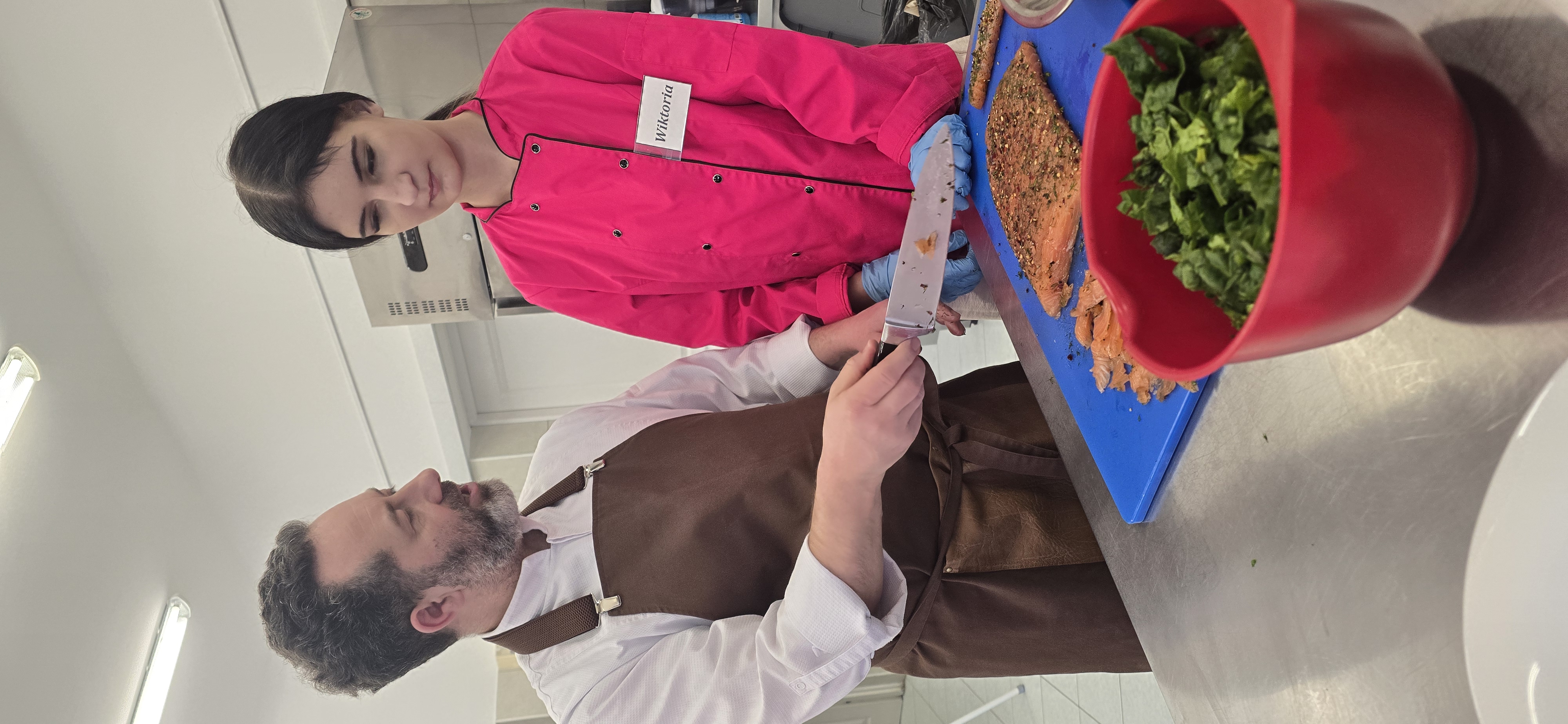 Zajęcia poprowadził doświadczony szef kuchni Piotr Huszcz, pracujący w zawodzie od 2001 roku, prowadzący liczne szkolenia, warsztaty oraz pokazy gastronomiczne. Mistrz kuchni w ciekawy, dynamiczny i inspirujący sposób dzielił się swoją wiedzą oraz pasją do gotowania.