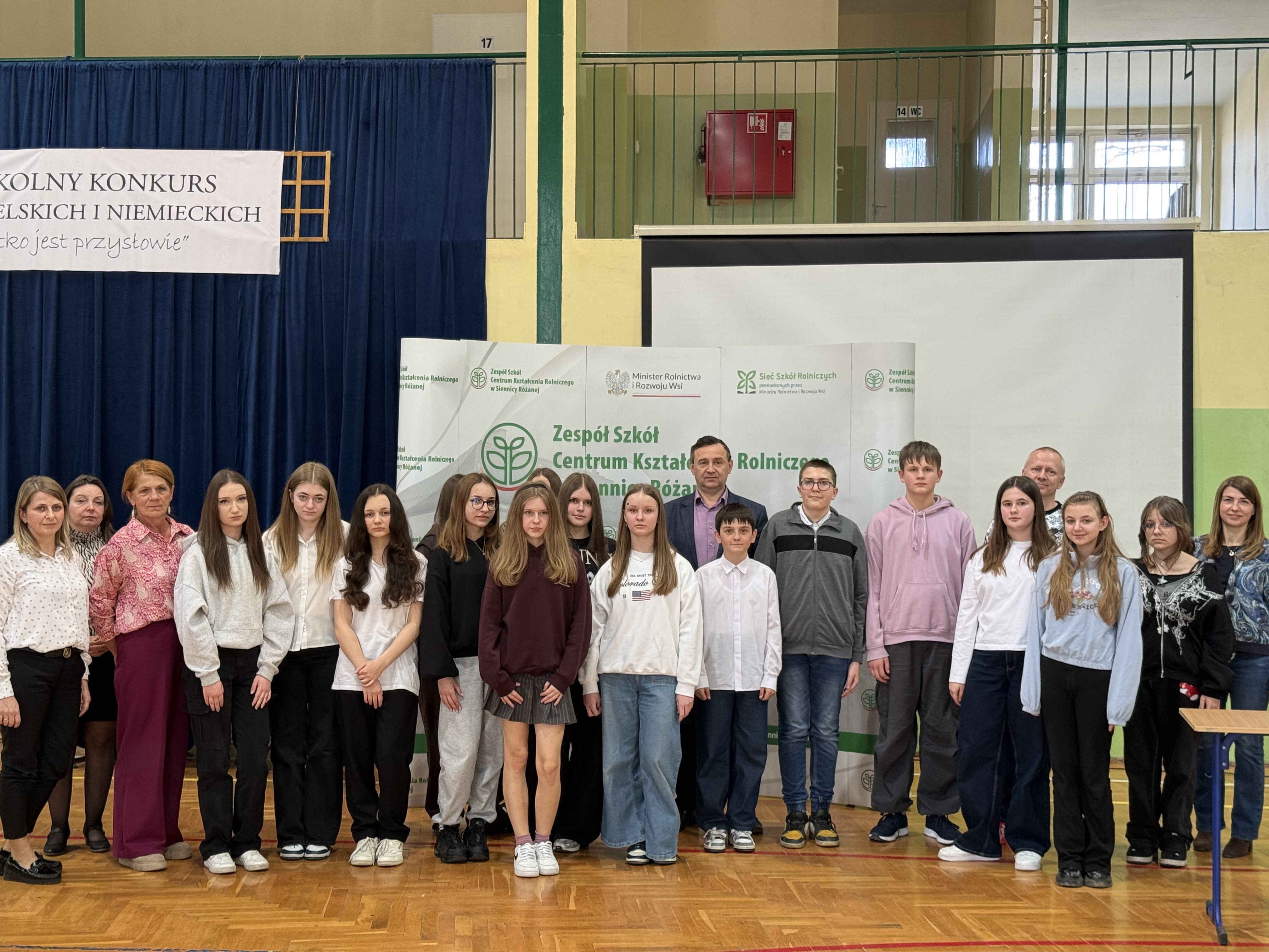 W dniu 10 marca 2026 roku w Zespole Szkół Centrum Kształcenia Rolniczego w Siennicy Różanej odbyła się III edycja Konkursu Przysłów Angielskich i Niemieckich. Wydarzenie uroczyście otworzył dyrektor szkoły, Pan Mirosław Jurkowski, który powitał przybyłych gości oraz życzył