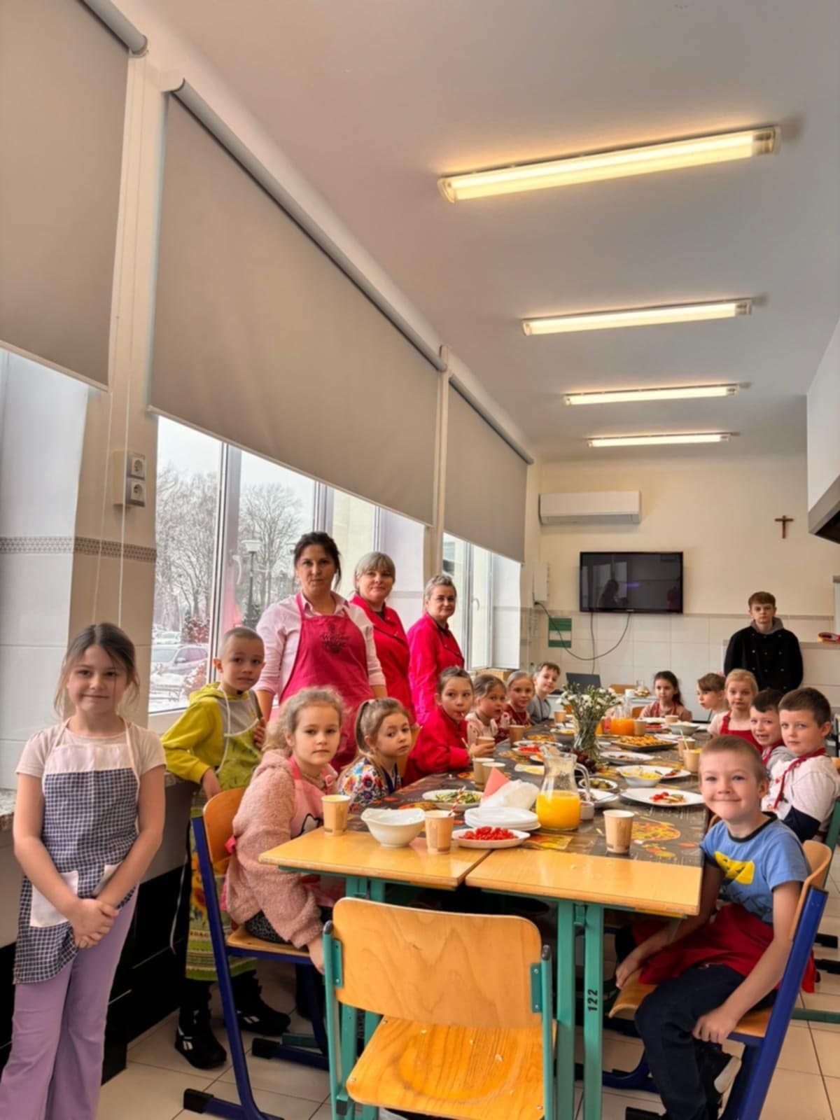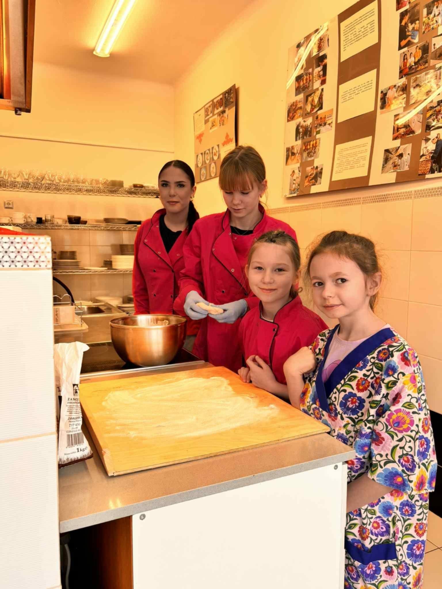 Dziękujemy wszystkim uczestnikom za ogromne zaangażowanie i wspólnie spędzony czas. Mamy nadzieję, że zdobyte umiejętności i kulinarne inspiracje będą towarzyszyć najmłodszym każdego dnia, zachęcając do wybierania zdrowych i smacznych produktów. Szczególne podziękowania kierujemy do uczniów klasy 2 BTP oraz 2 PTB, kształcących się w zawodzie technik żywienia i usług gastronomicznych, za profesjonalne przygotowanie i przeprowadzenie warsztatów kulinarnych. Dziękujemy za troskliwą opiekę nad młodszymi uczestnikami – Wasza pasja, życzliwość i umiejętności sprawiły, że to spotkanie było nie tylko smaczną przygodą, ale także piękną lekcją współpracy i dzielenia się wiedzą.