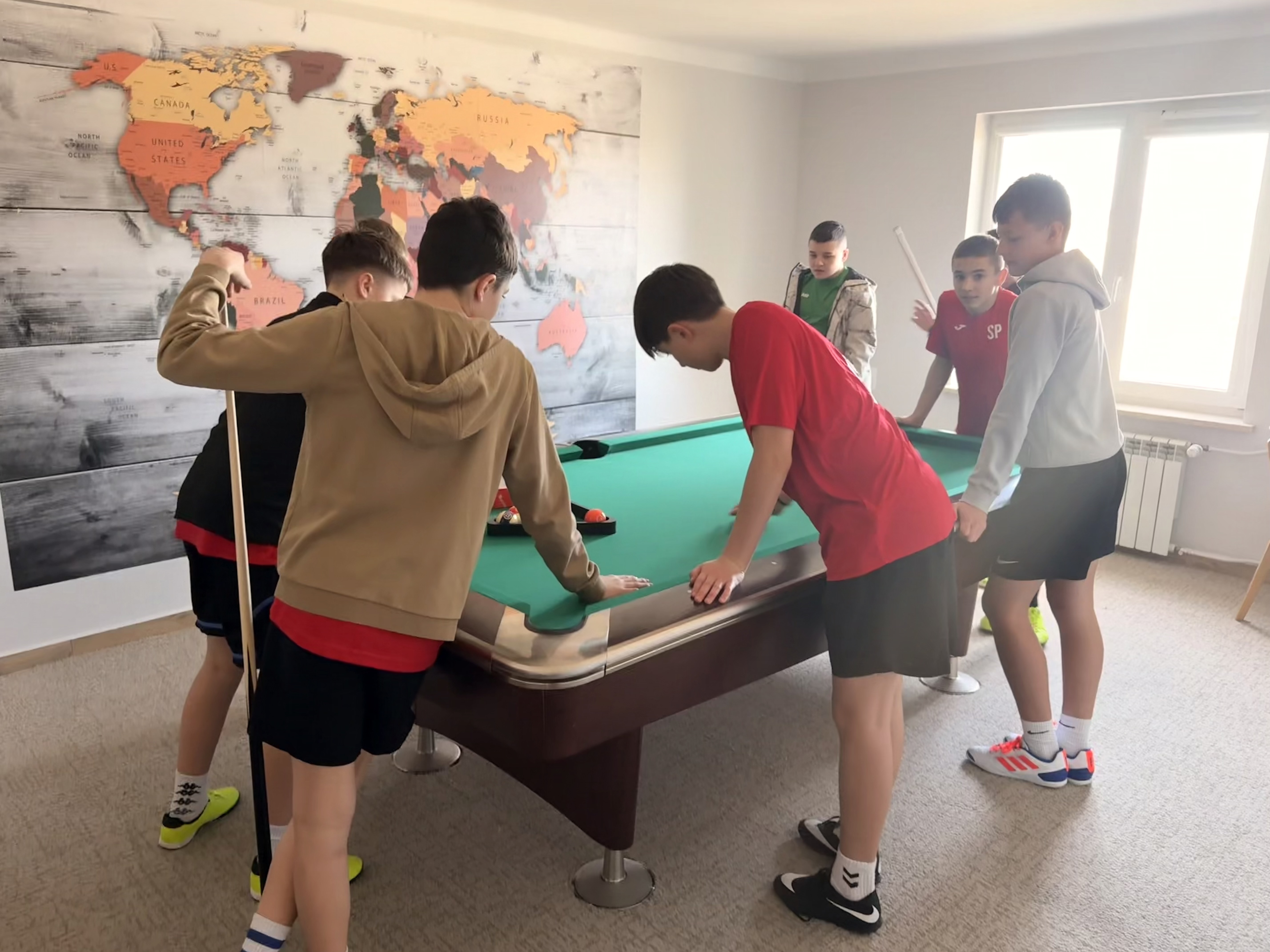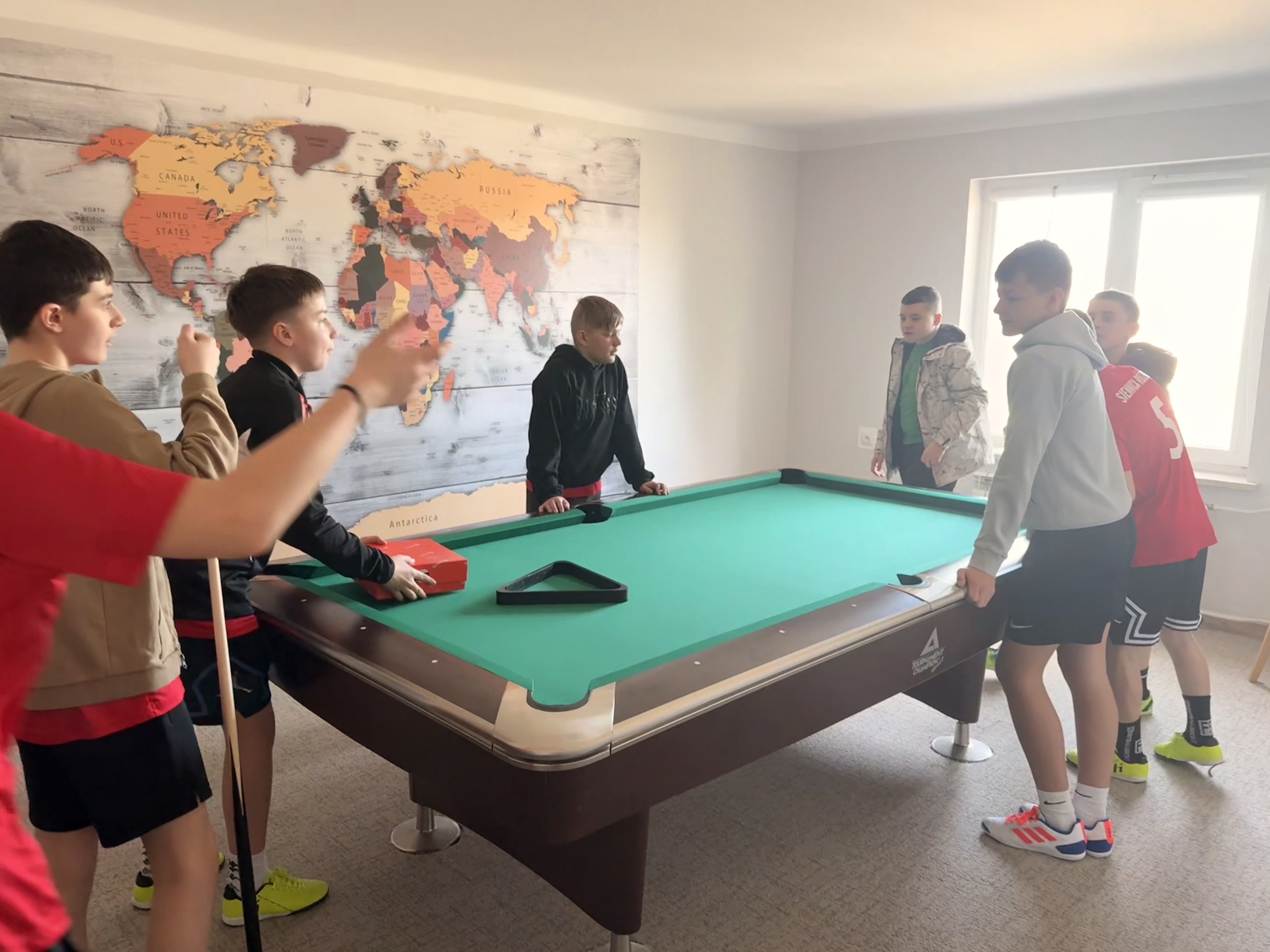 z zainteresowaniem oglądali pomieszczenia internatu, a także mieli możliwość spędzenia czasu w świetlicy, gdzie m.in. zagrali w bilard.