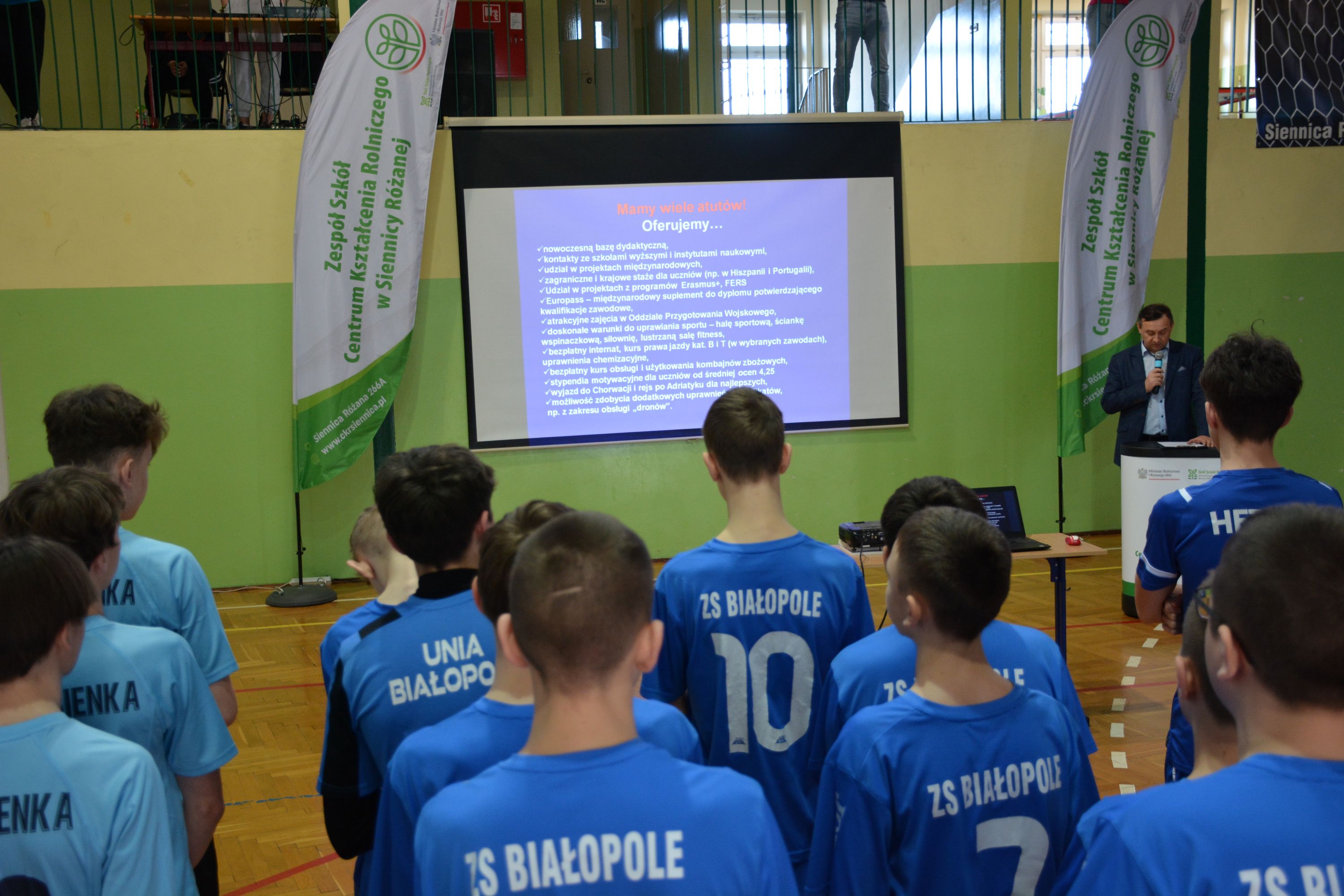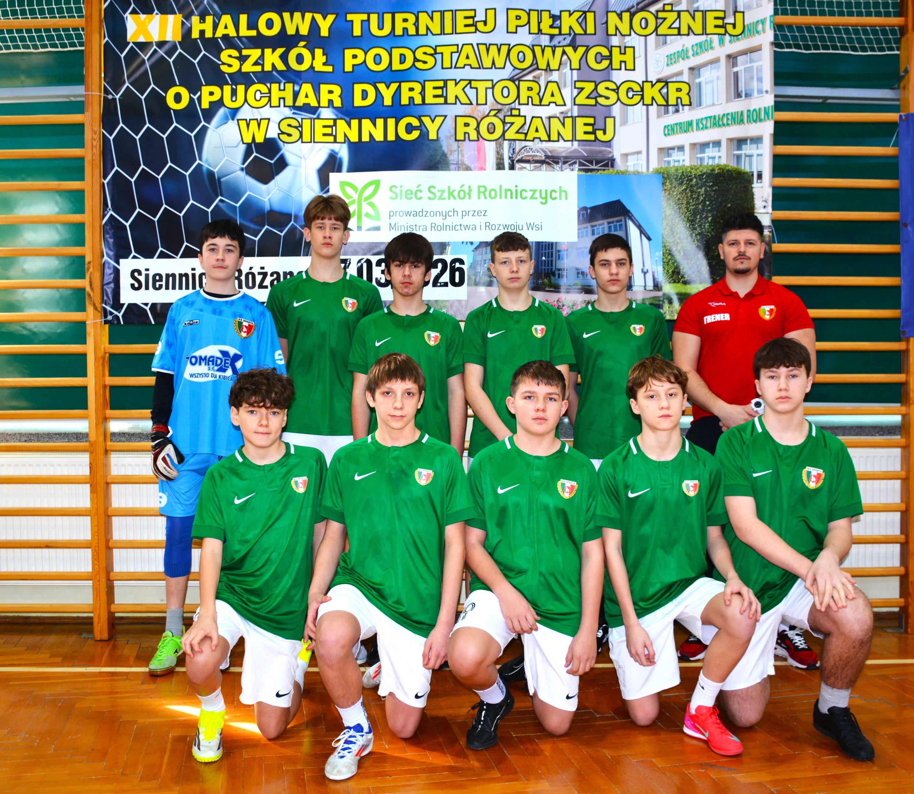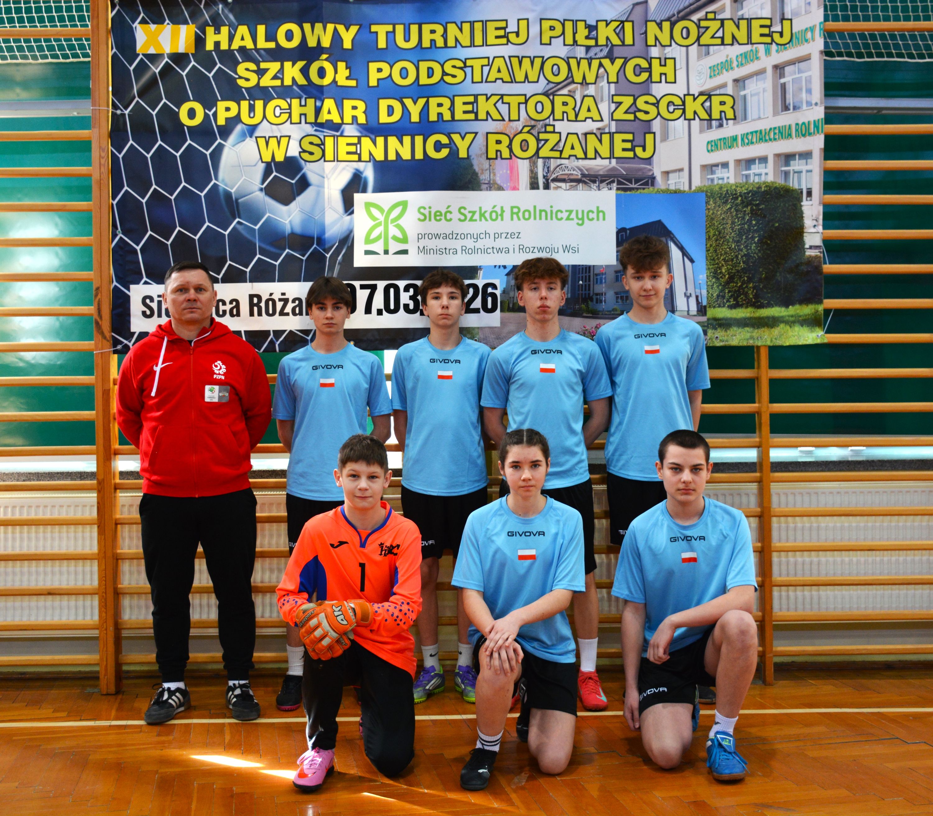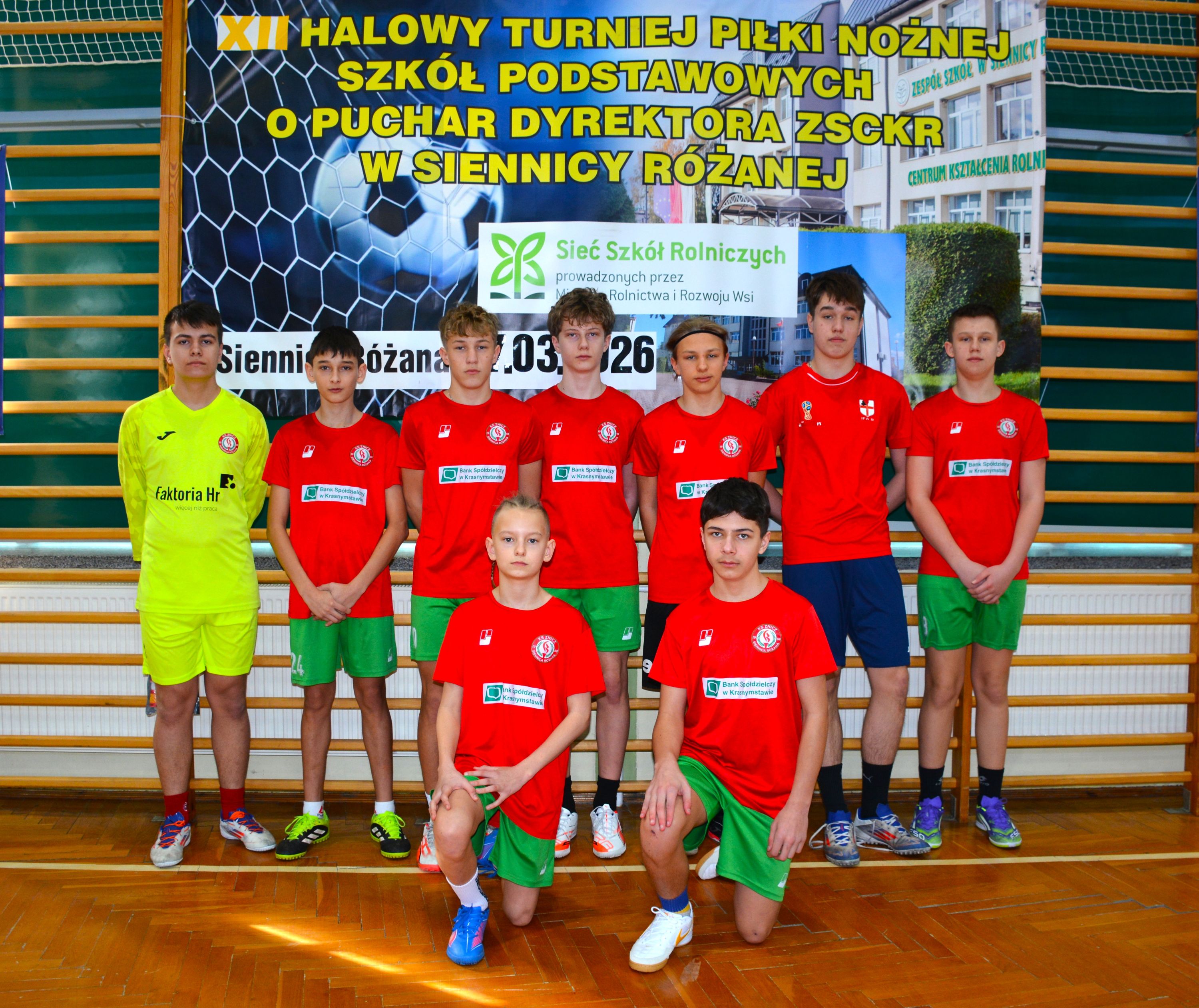 7 marca 2026 roku odbyła się XII edycja Halowego Turnieju Piłki Nożnej Szkół Podstawowych o Puchar Dyrektora Zespołu Szkół Centrum Kształcenia Rolniczego w Siennicy Różanej. W tym roku w rozgrywkach wzięło udział - blisko stu młodych piłkarzy z dziewięciu szkół z powiatów krasnostawskiego, chełmskiego i zamojskiego. W rozgrywkach wzięły udział drużyny z Białopola, Dubienki, Izbicy, Siennicy Różanej (dwie drużyny), Żółkiewki, Wojsławic, Starego Zamościa i Rejowca Fabrycznego. Uroczystego otwarcia turnieju dokonali dyrektor Mirosław Jurkowski oraz wicedyrektor Justyna Klejna, życząc uczestnikom udanej sportowej rywalizacji oraz miłych wrażeń z pobytu w naszej szkole. Przed zawodami ppłk rezerwy Sławomir Kułaga przedstawił młodzieży prezentację multimedialną przedstawiająca ofertę naszej szkoły.